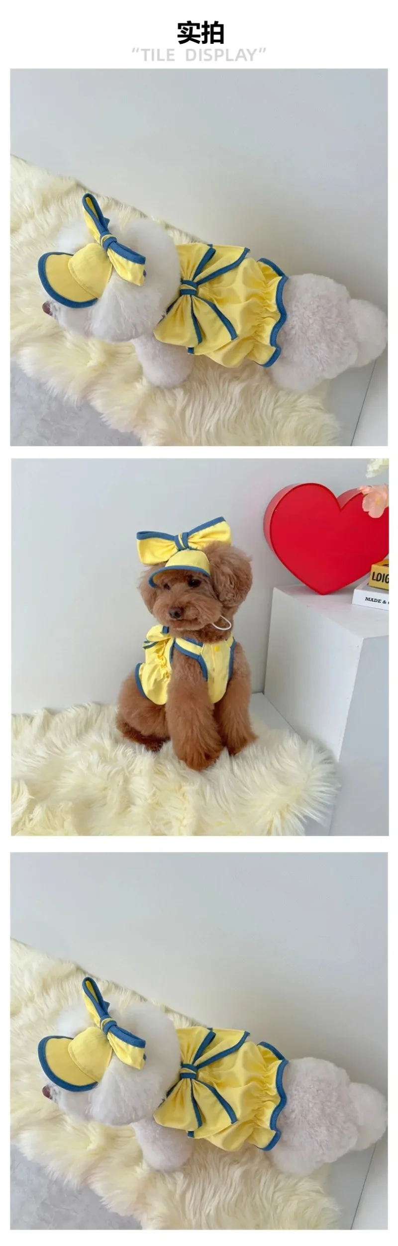 Vestido amarillo para mascotas, ropa de verano para perros, Teddy para gatos, ropa pequeña y fresca, camiseta sin mangas a la moda, sombrero para perros pequeños, falda para cachorros