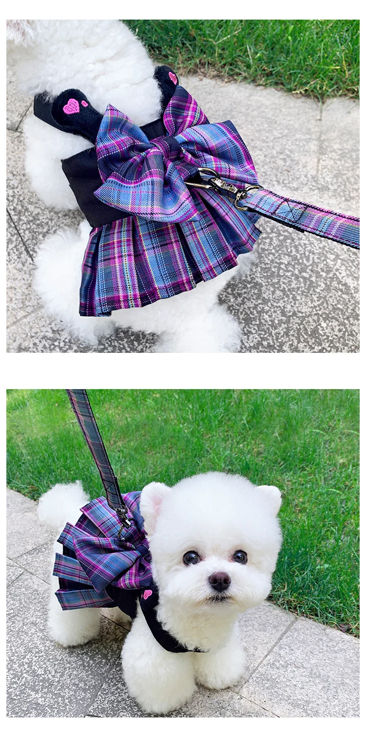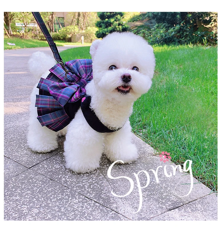 Ropa para perros y gatos, vestido de verano y primavera para perros con arnés y Correa, falda bonita de Bichón para perros pequeños, vestidos de lujo para cachorros