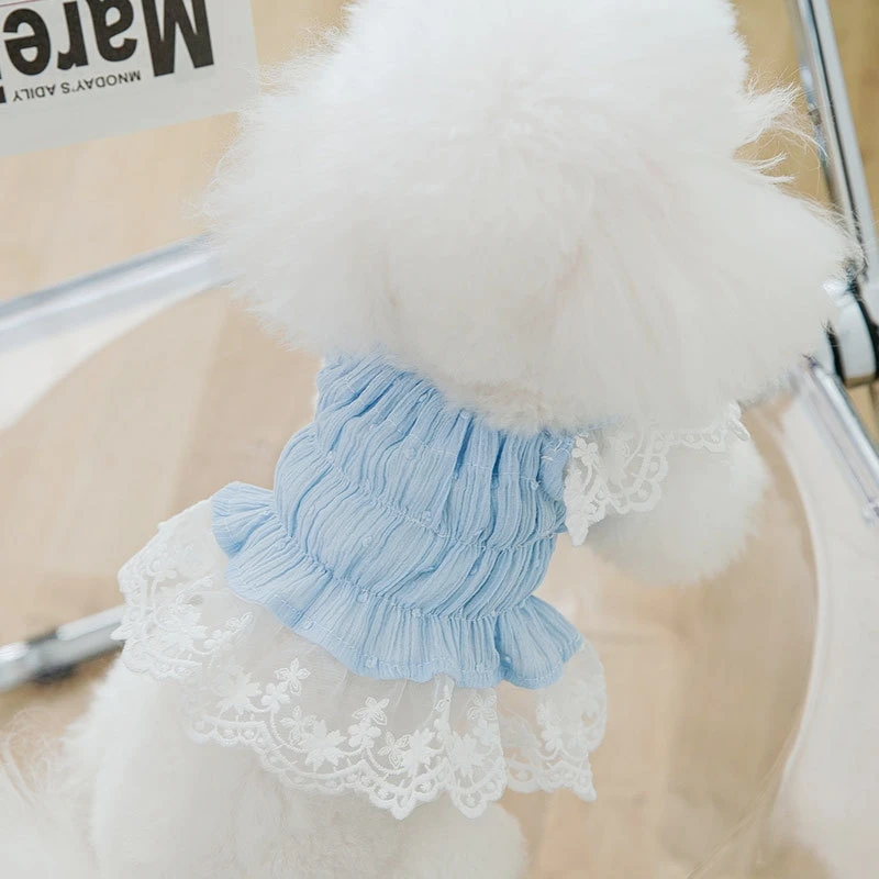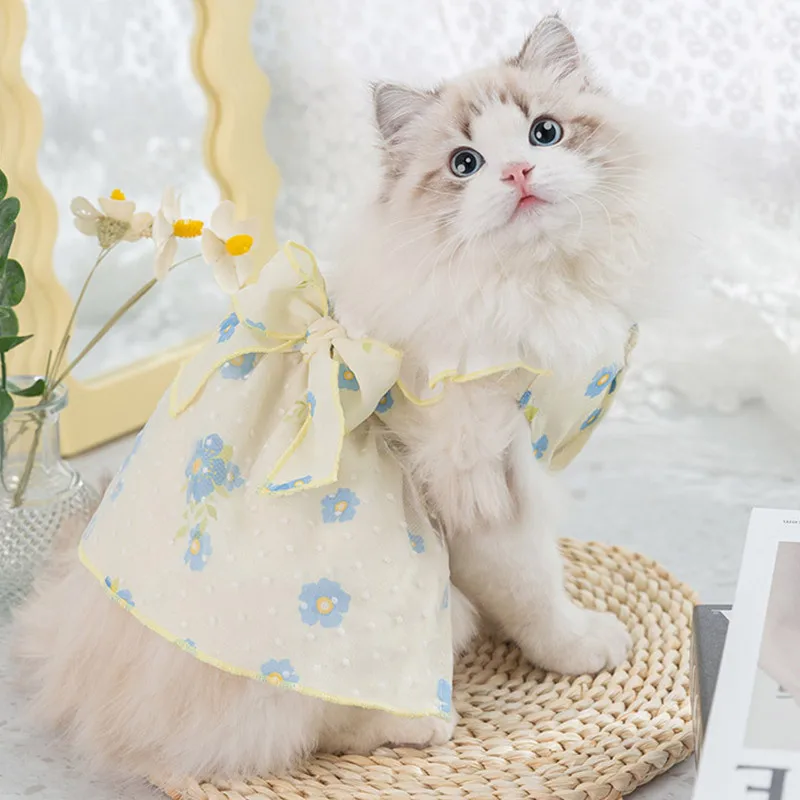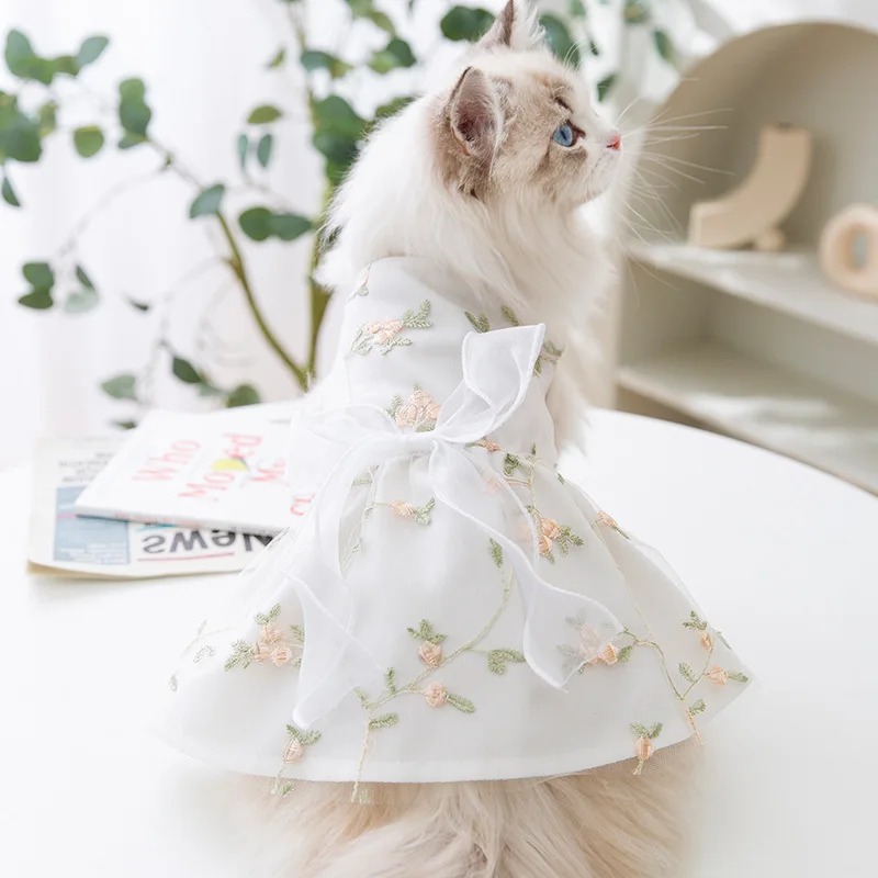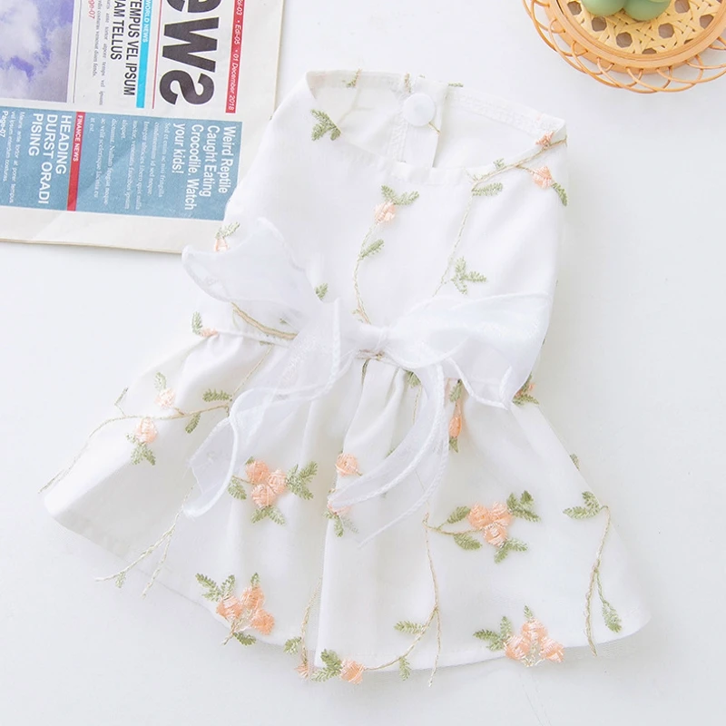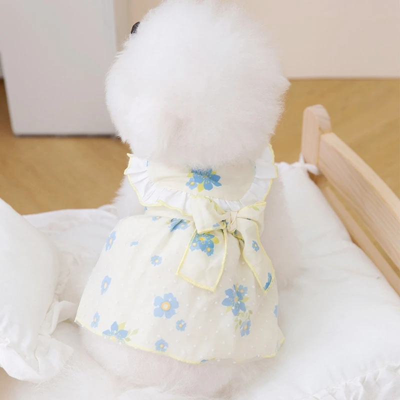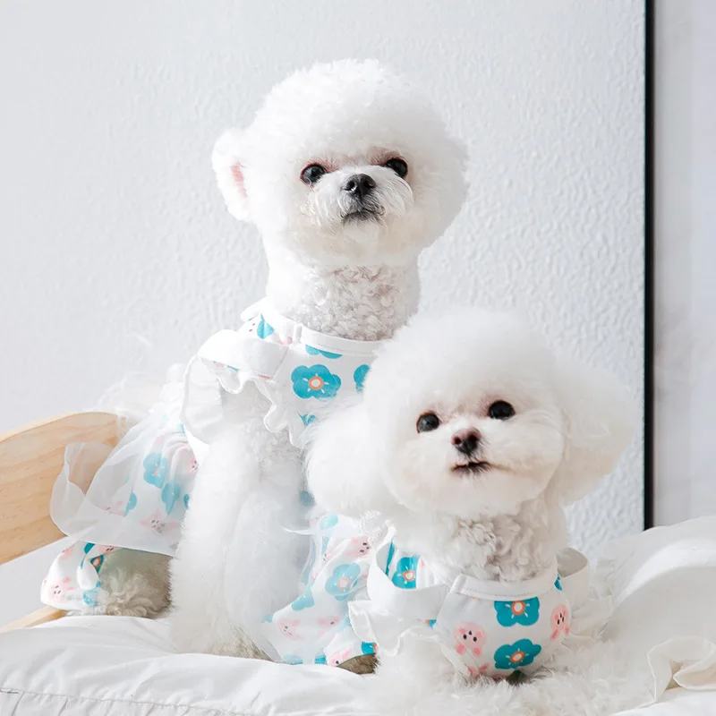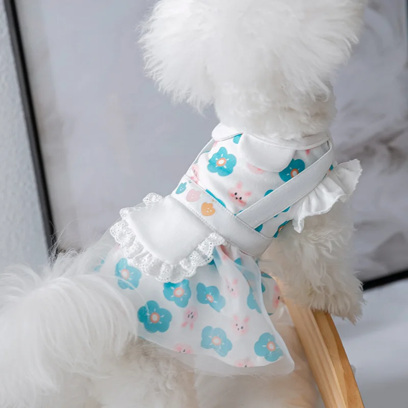 Vestido bonito de verano para perro, vestido Floral de malla para perro, gatito, cachorro, falda para mascota, ropa para perro, vestido de princesa con lazo de encaje, ropa de Chihuahua