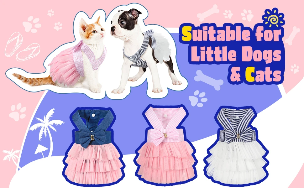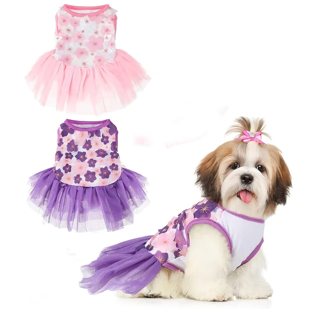 Vestido bonito para perro y niña, falda de tul de encaje de princesa con lazo, vestido tutú con volantes para perros pequeños, gatos, Chihuahua York, ropa de verano para cachorros