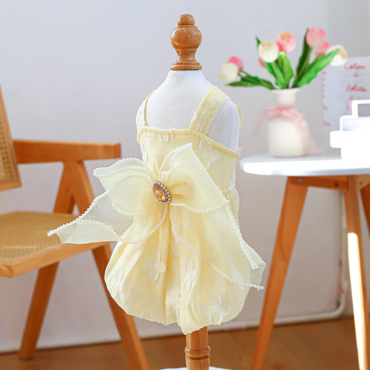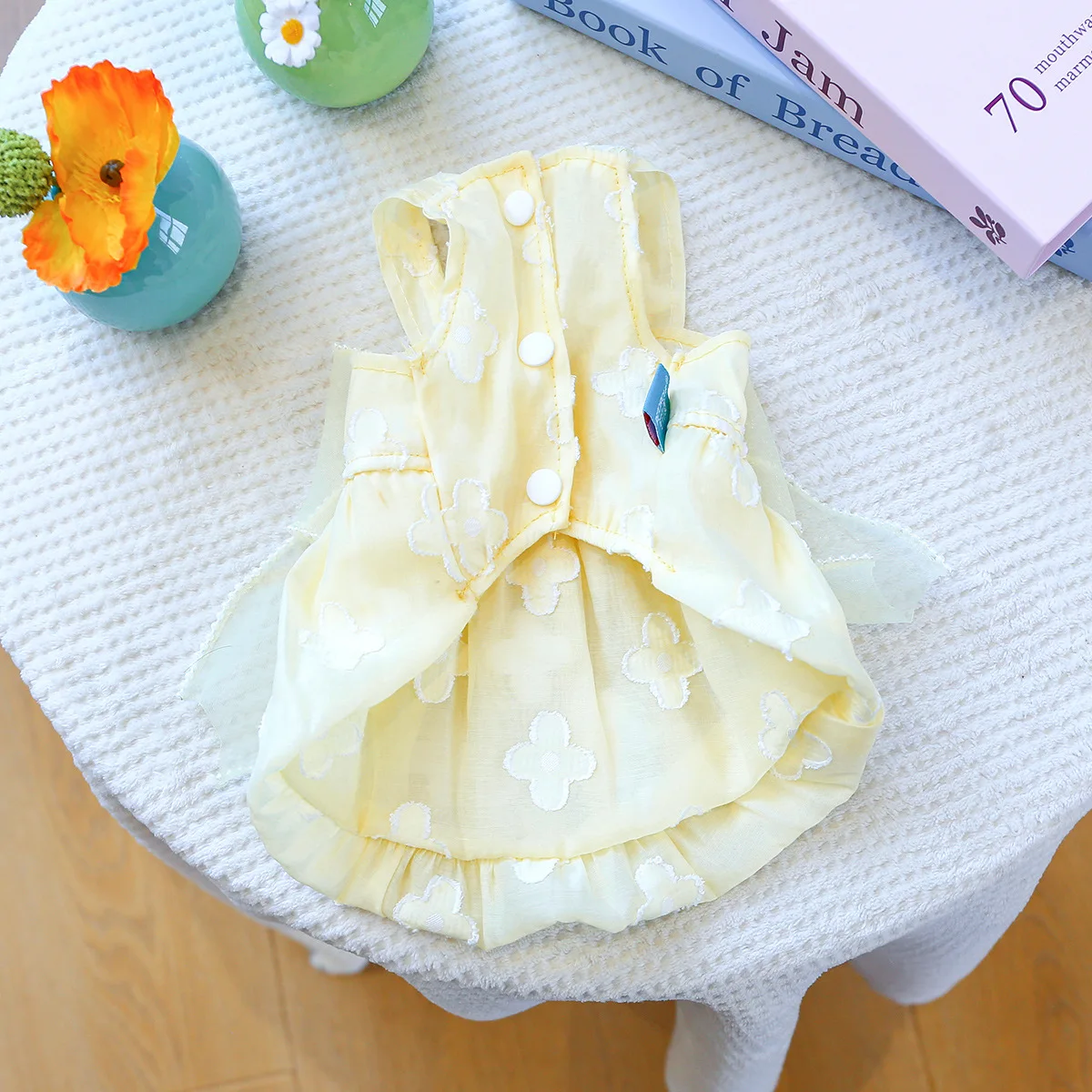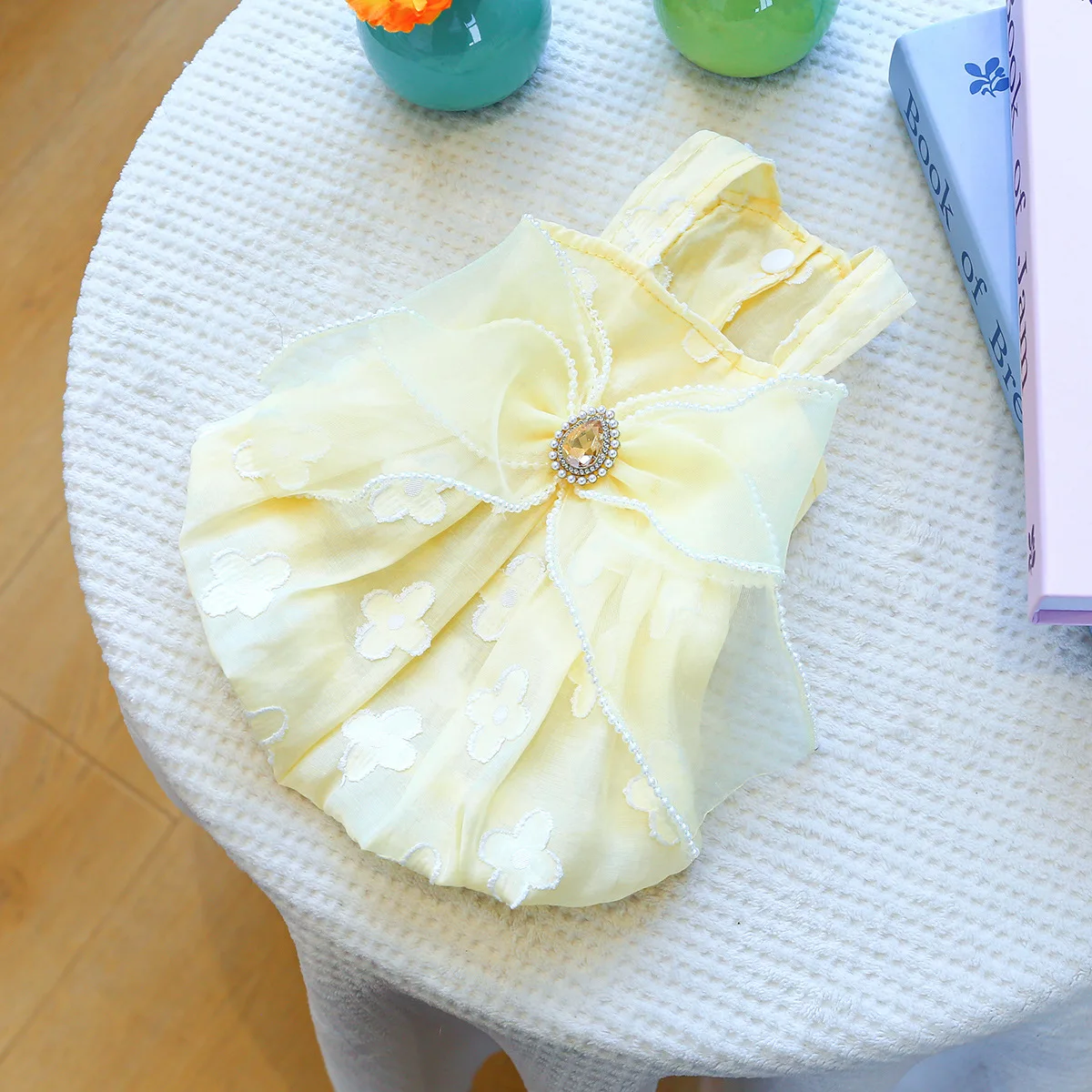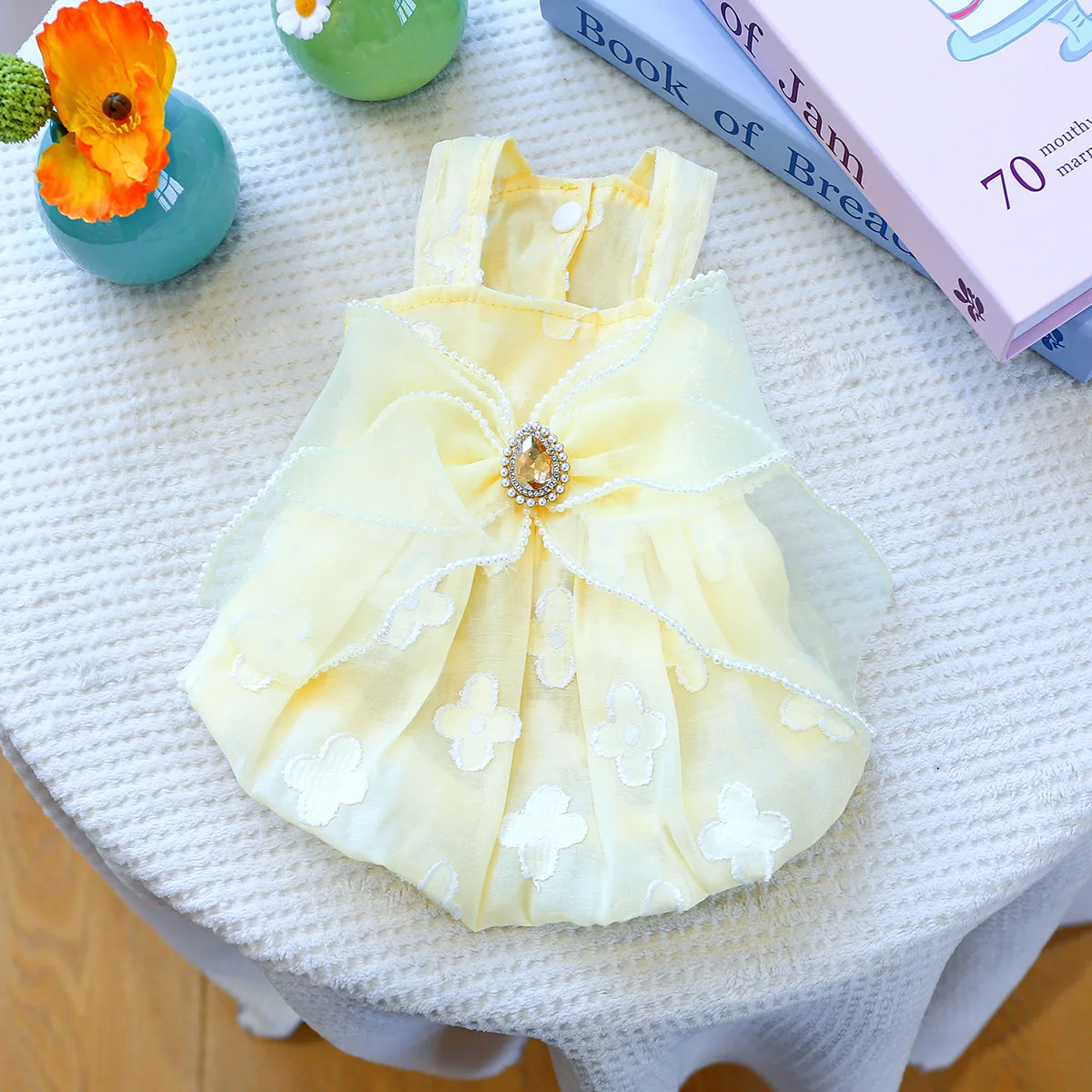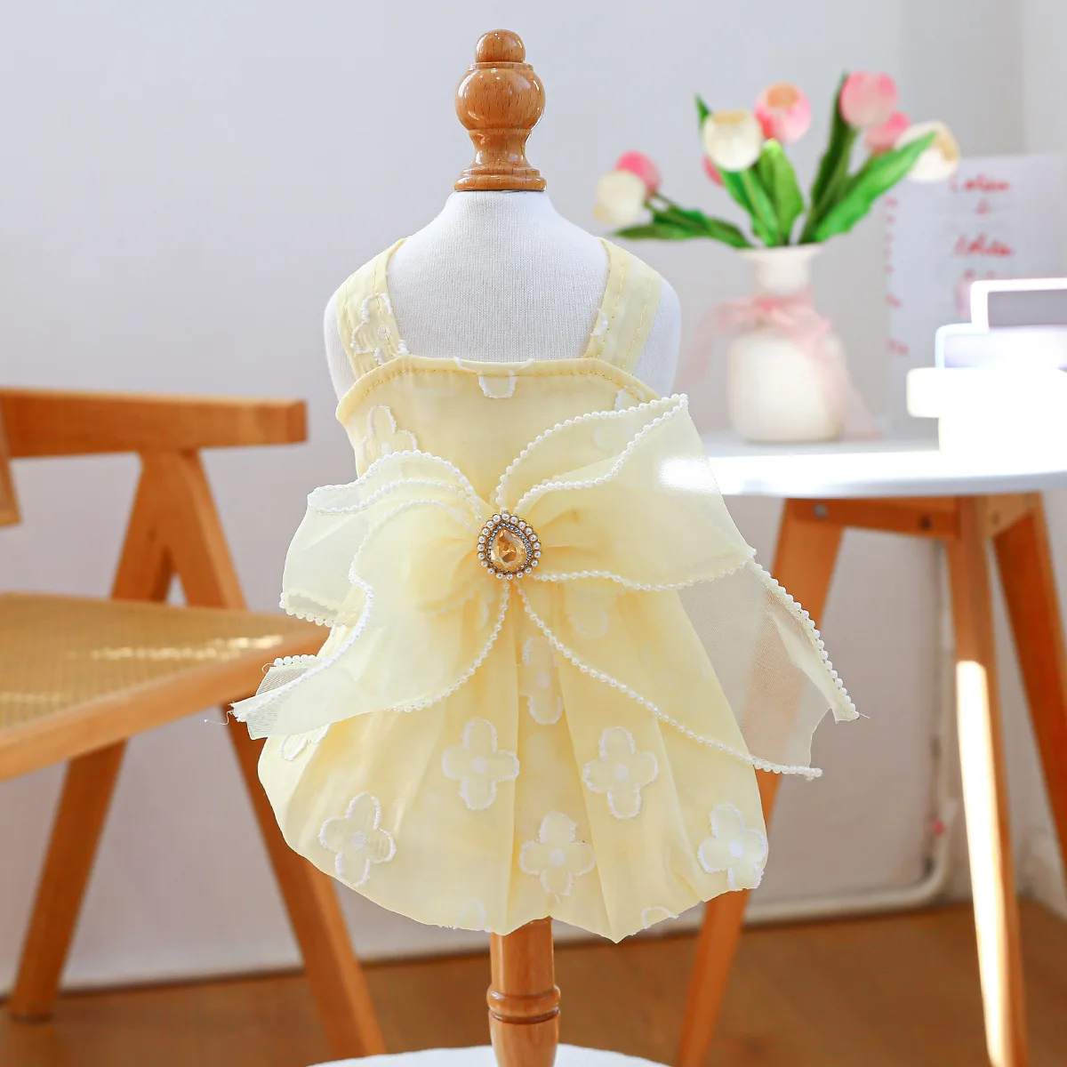 Vestido bordado de flores para mascotas, ropa para perros, vestido amarillo bonito para pastel, vestidos para perros pequeños, ropa para cachorros, primavera y verano