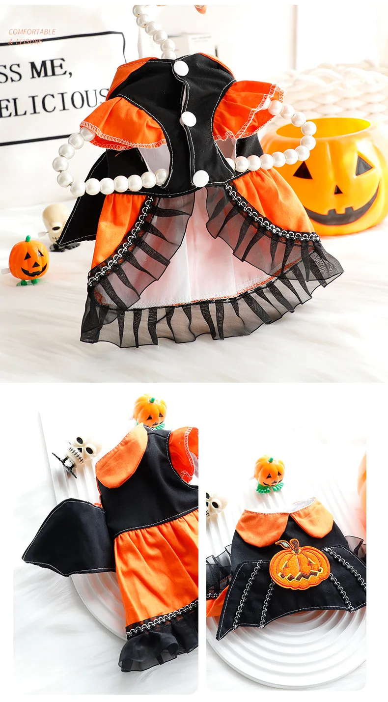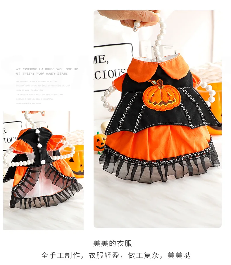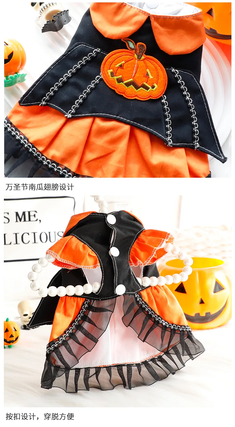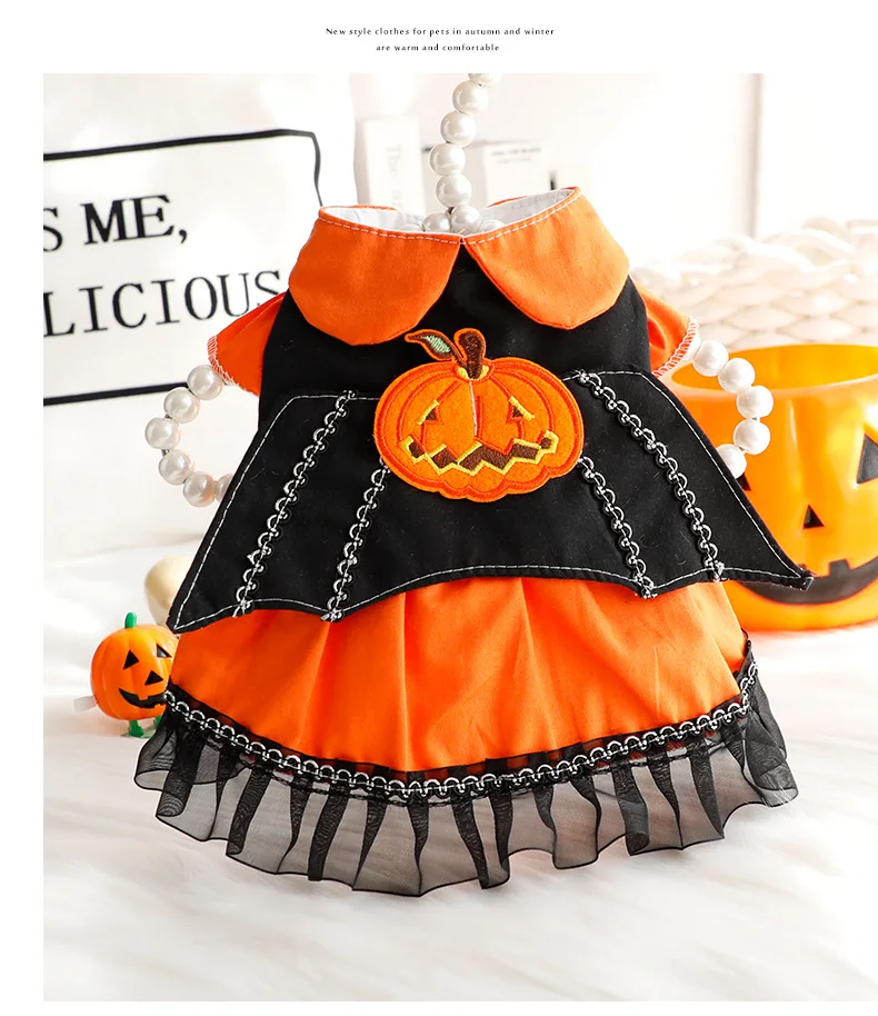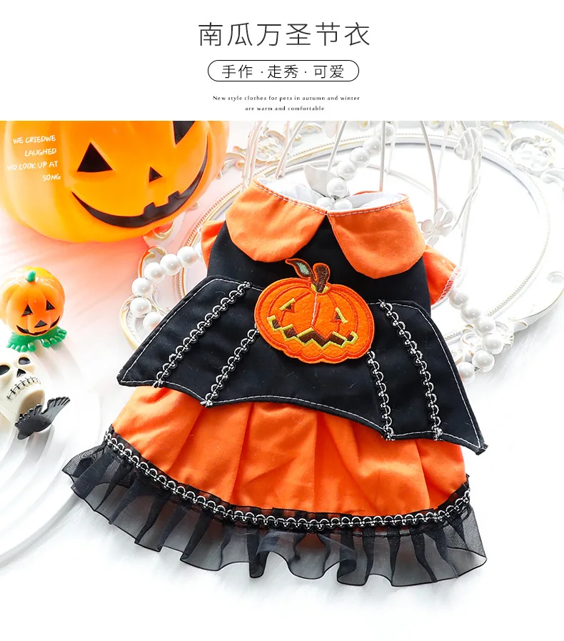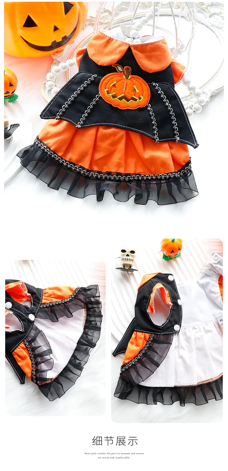 Vestido de calabaza para mascotas, vestido de princesa para gatos, vestido de sirvienta para Halloween, vestidos para perros pequeños, ropa de Navidad para cachorros, primavera y otoño