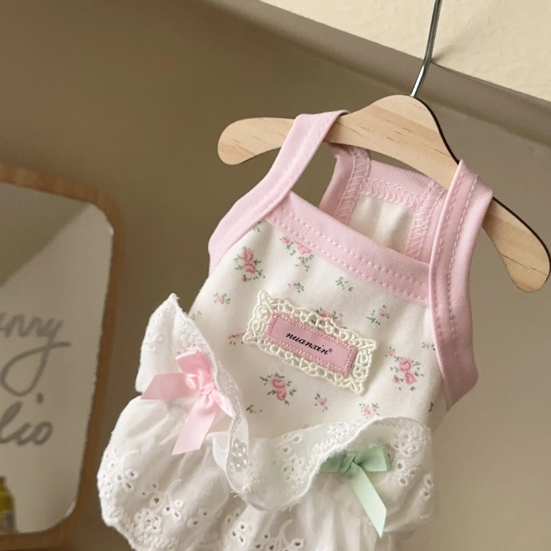 Este top es encantador. . Encantador algodón. . Es un poco más pequeño de lo que pensé en comparación con la guía de tallas de busto y largo, por lo que recomendaría pedir una talla más grande que la que usas normalmente, ya que tiene un ajuste pequeño. . Y el encaje no tiene un aspecto tan lujoso como en la foto, pero sigue siendo muy bonito (voy a pedir otro, pero en la siguiente talla para mi talla 2). (Poodle de juguete miniatura de 7 kg)
