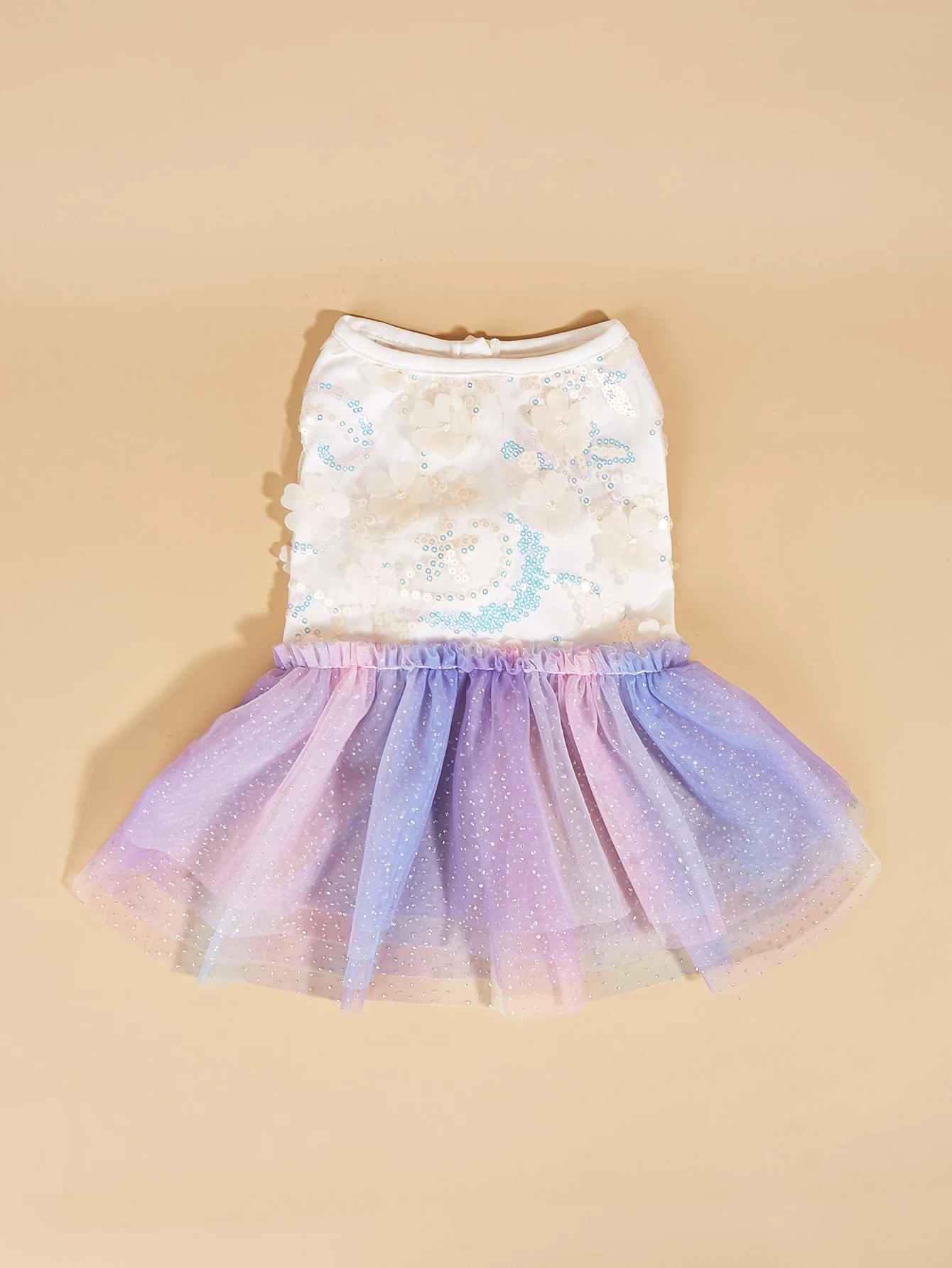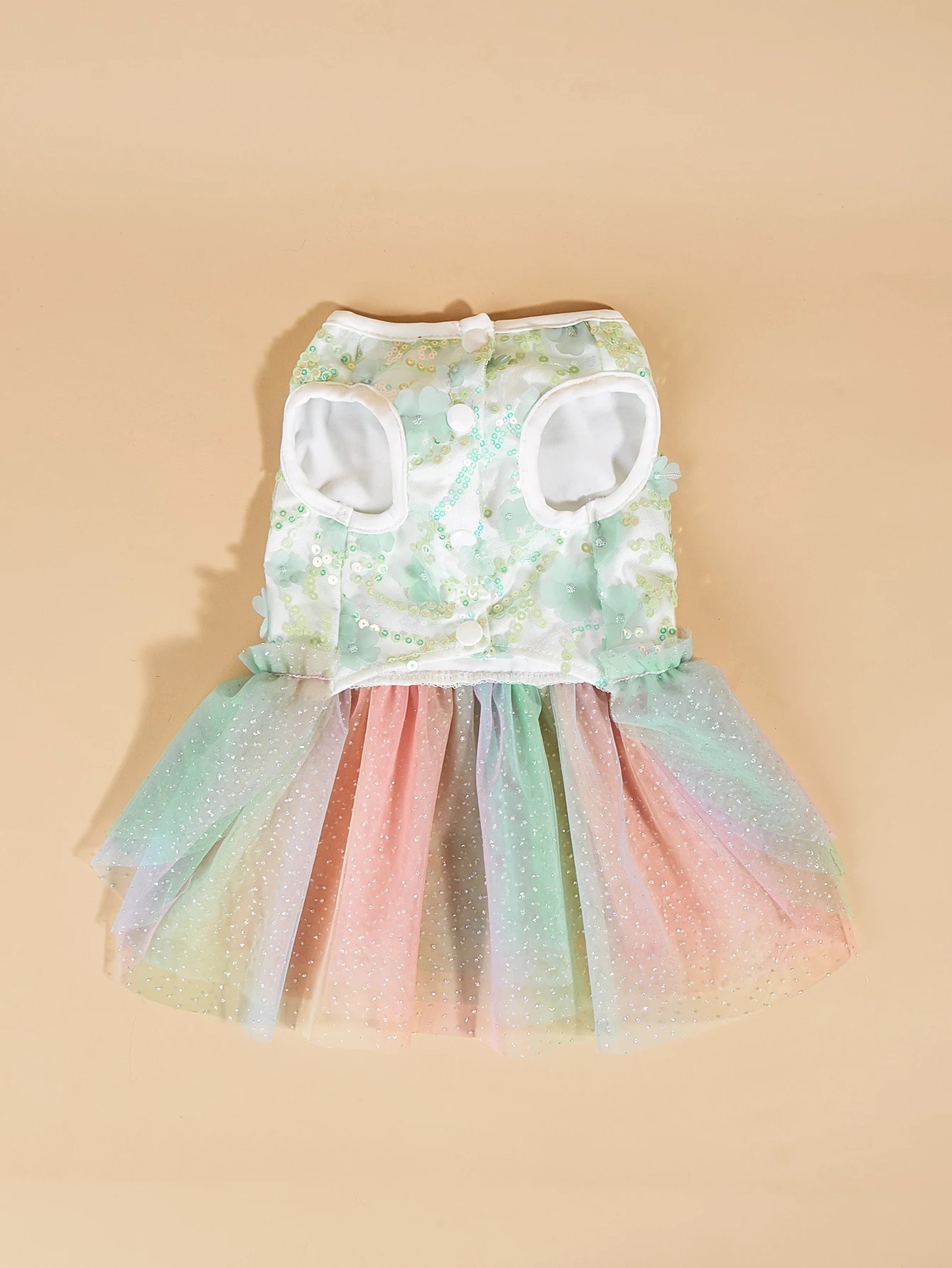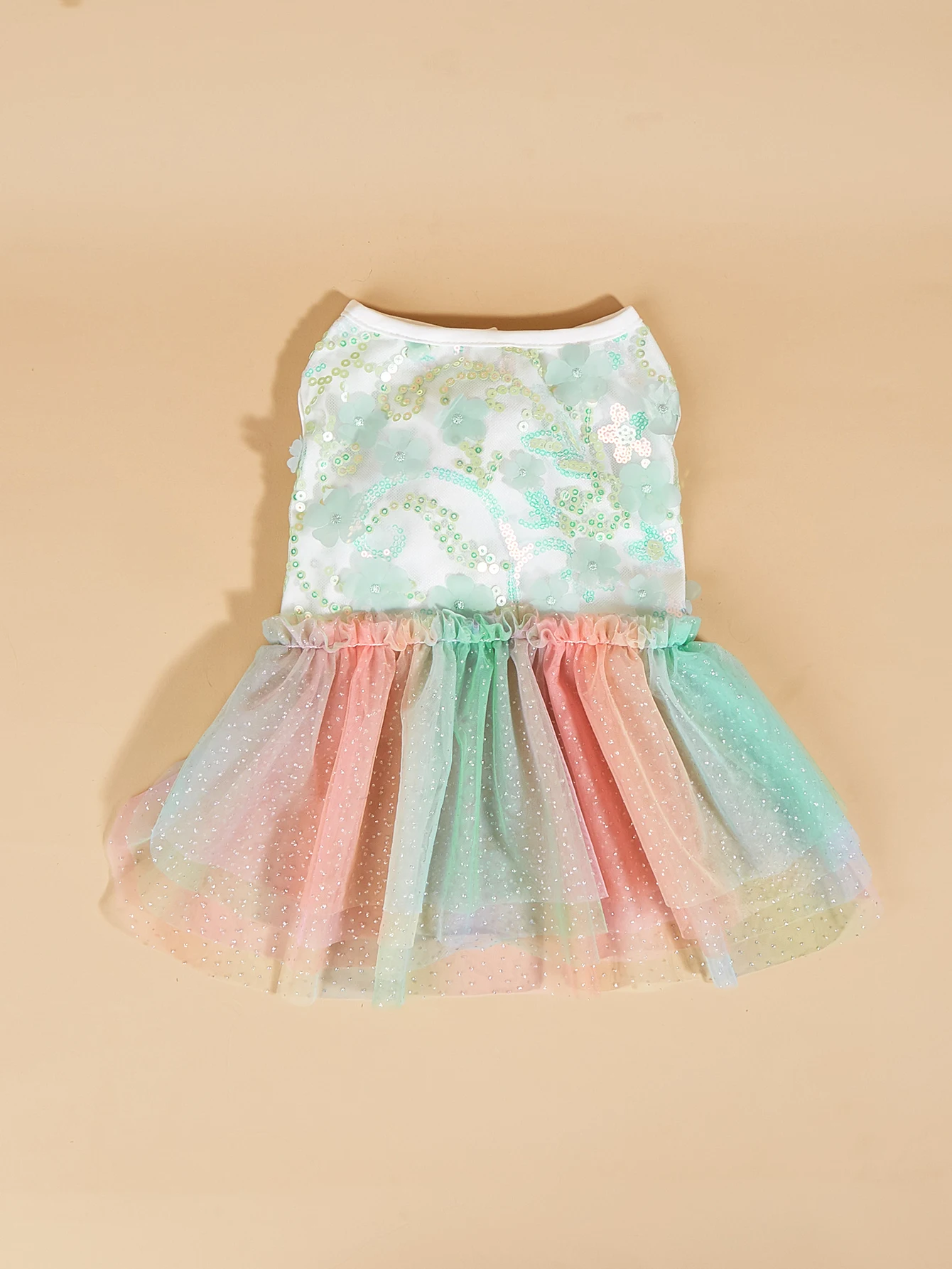 Vestido colorido degradado para mascotas, top floral de lentejuelas con falda de tul arcoíris, ropa de princesa de verano ligera y encantadora