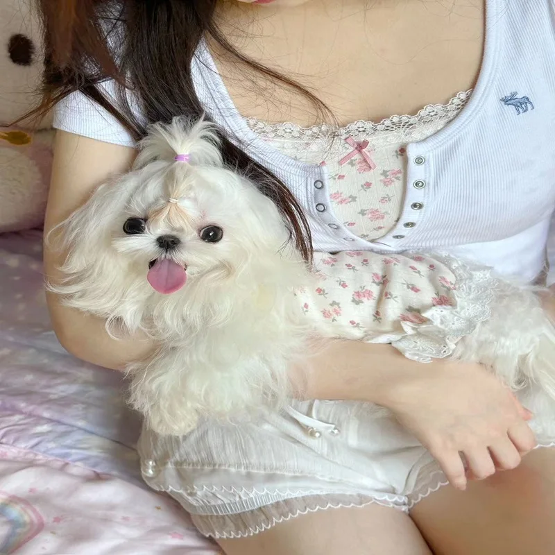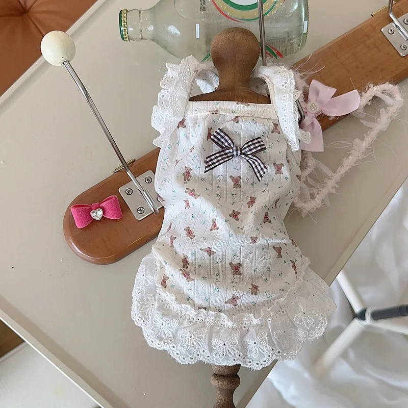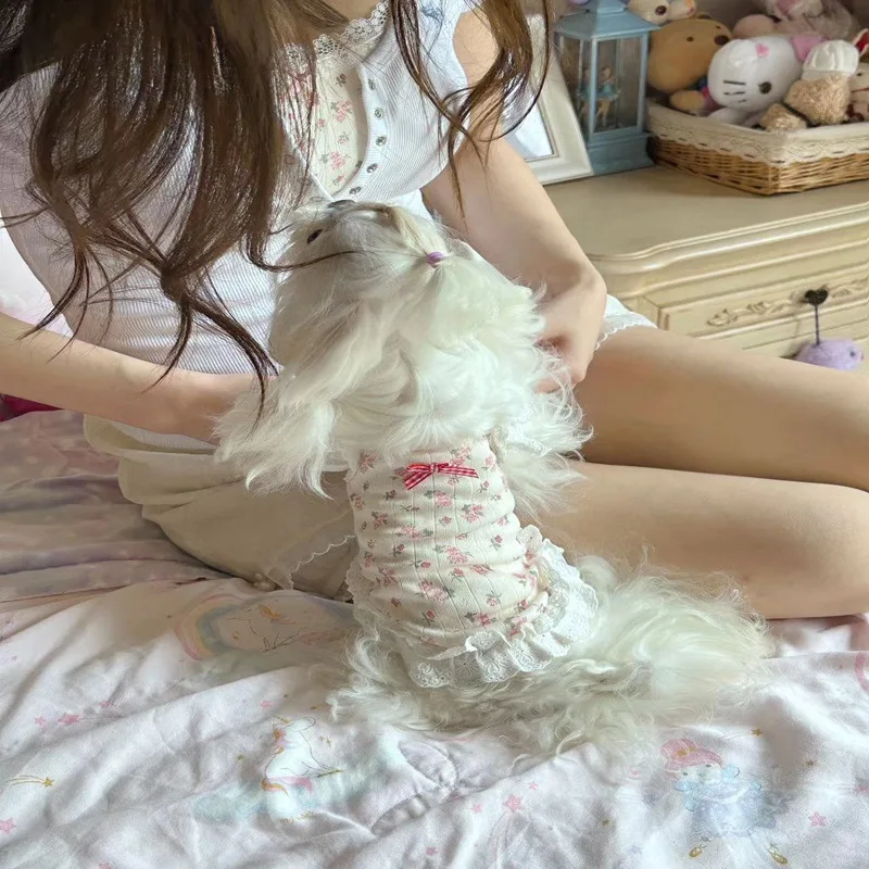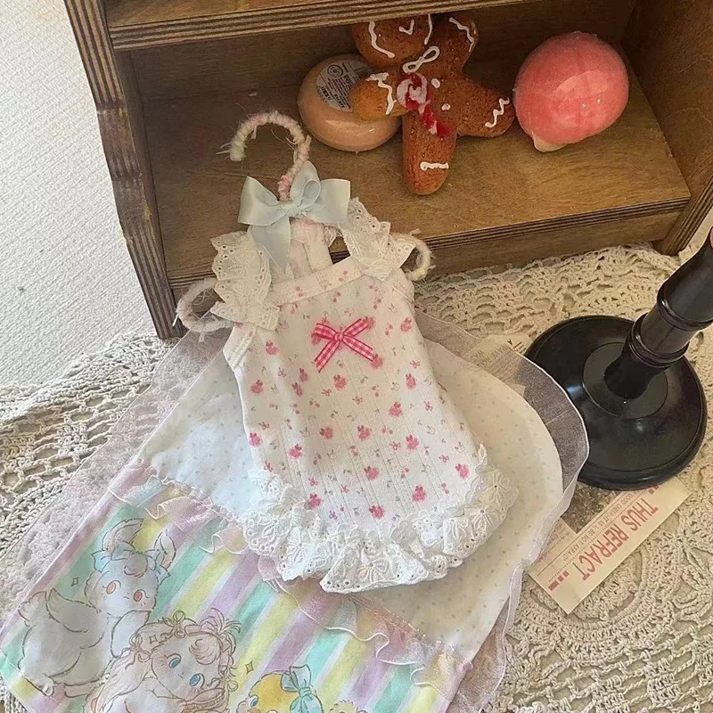 Vestido corto de princesa con tirantes de encaje Floral para mascotas, ropa para el hogar para perros y gatos, ropa para perros pequeños y cachorros
