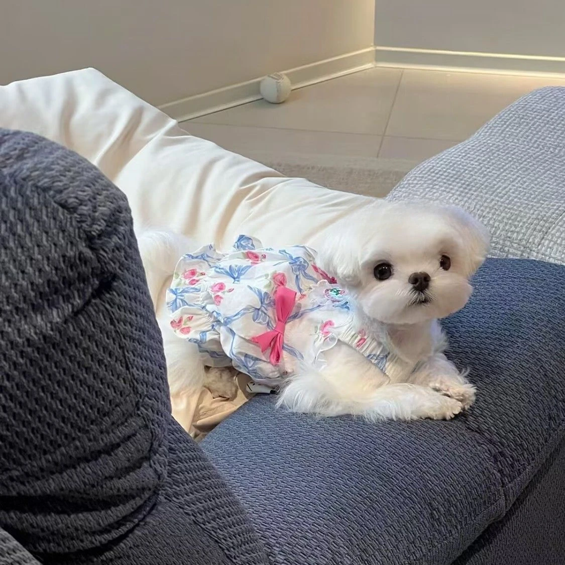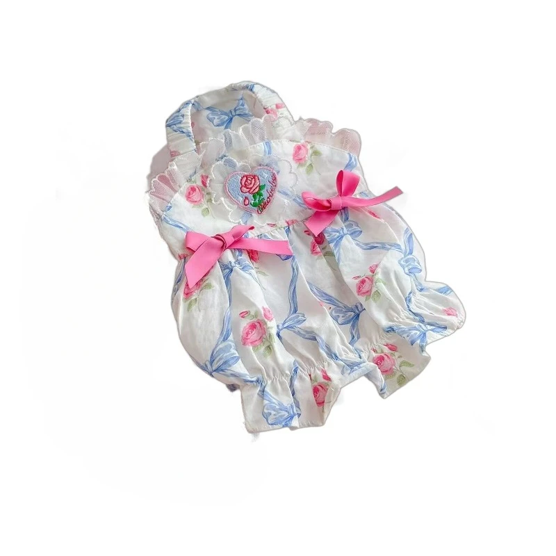 Vestido corto de princesa con tirantes de flores para mascotas, ropa para el hogar, oso de peluche, perro, gato, vestidos para perros pequeños, primavera, rosa y azul
