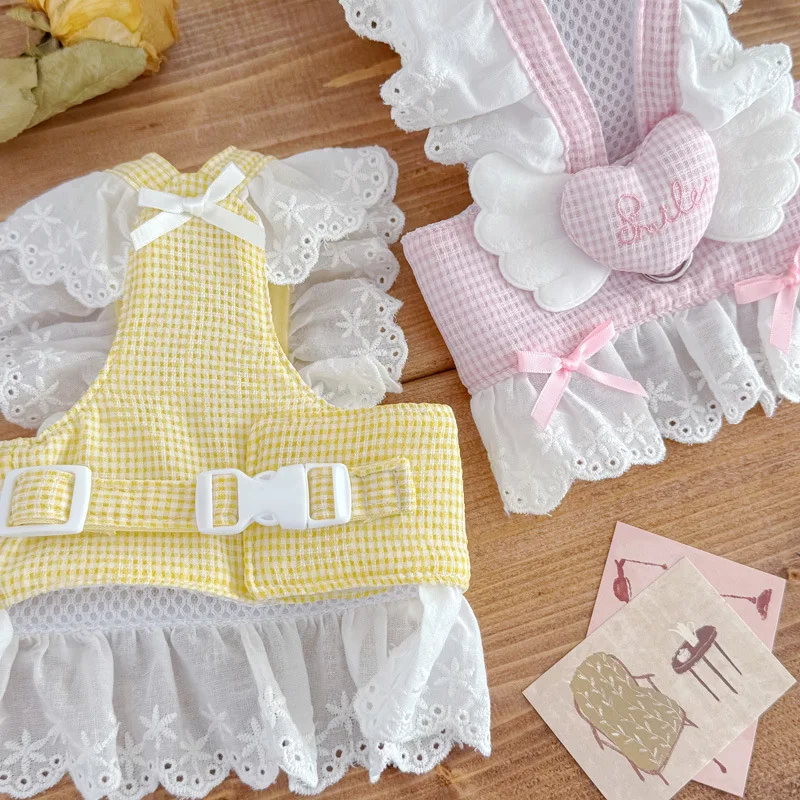 Vestido a cuadros de helado de primavera para mascotas con alas, vestido de princesa para perros y gatos, se puede tirar, ropa para cachorros pequeños