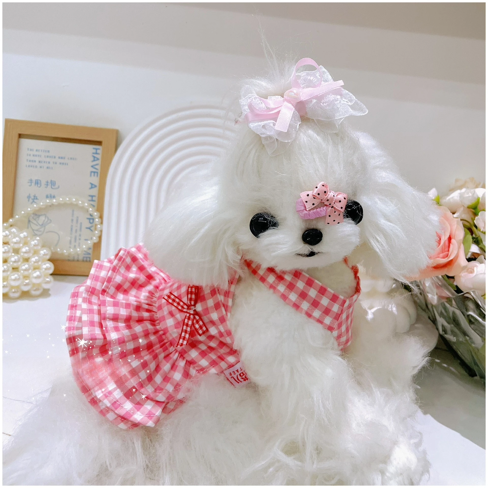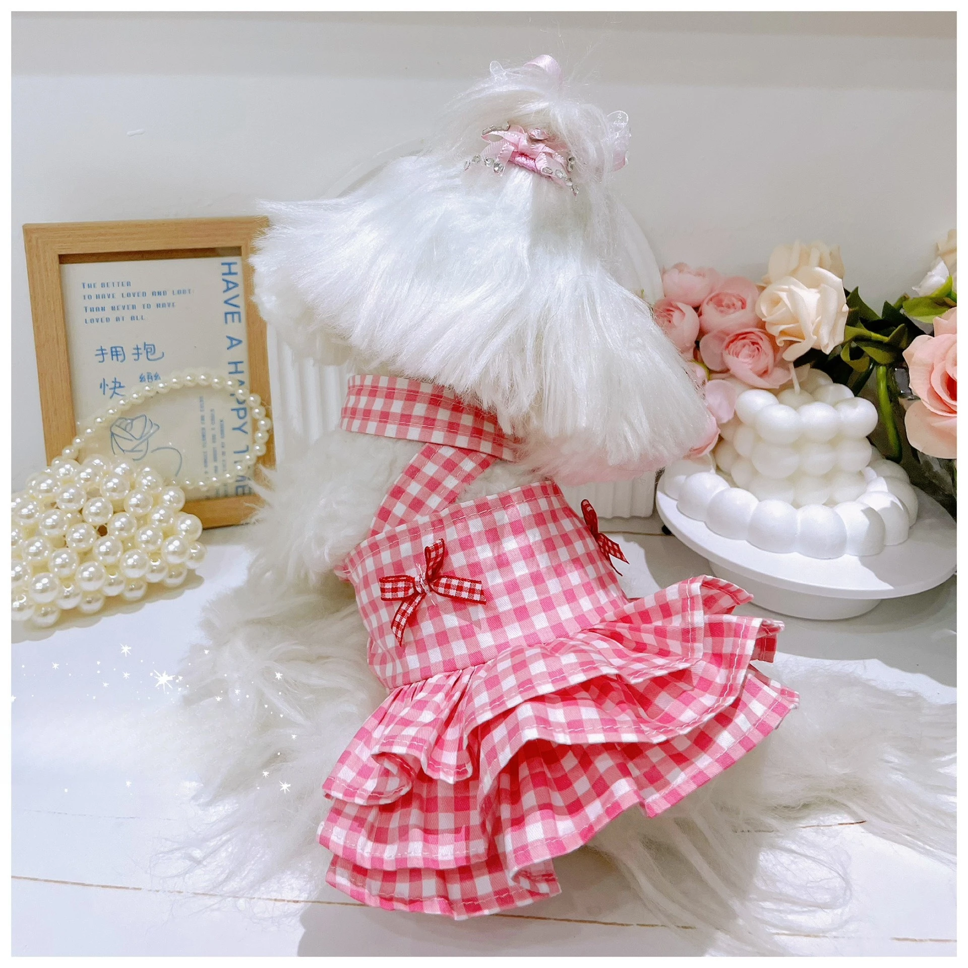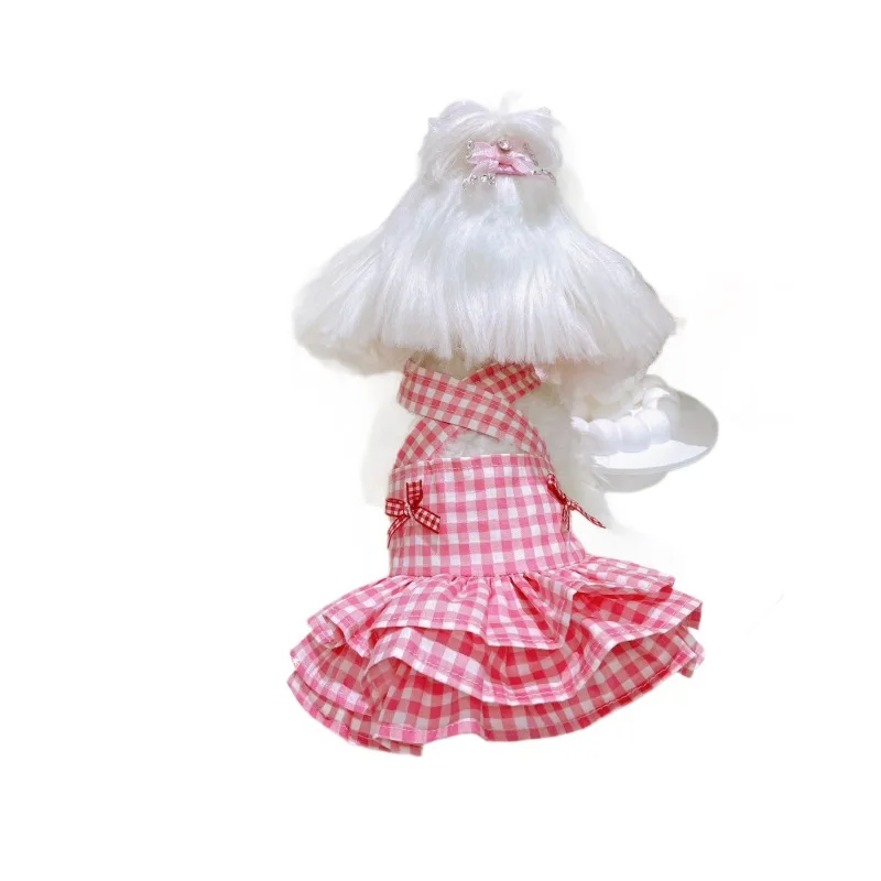 Vestido a cuadros para mascotas, bonito chaleco con lazo, falda con tirantes, falda esponjosa, bonito vestido para cachorro, vestidos para perros pequeños