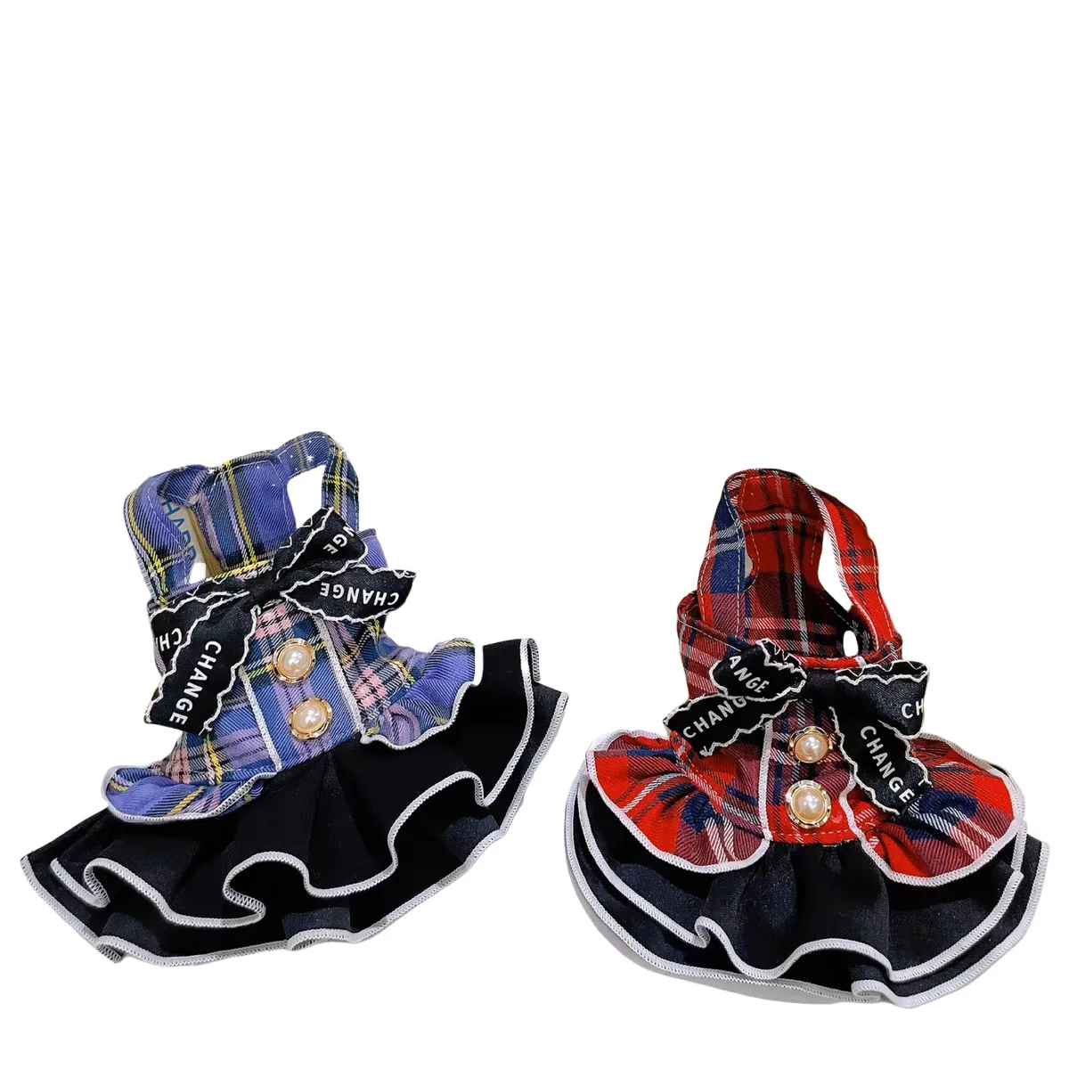 Vestido a cuadros de Navidad para mascotas, ropa para perros, falda con tirantes, abrigo para perros Schnauzer, ropa para cachorros pequeños, Otoño/Invierno