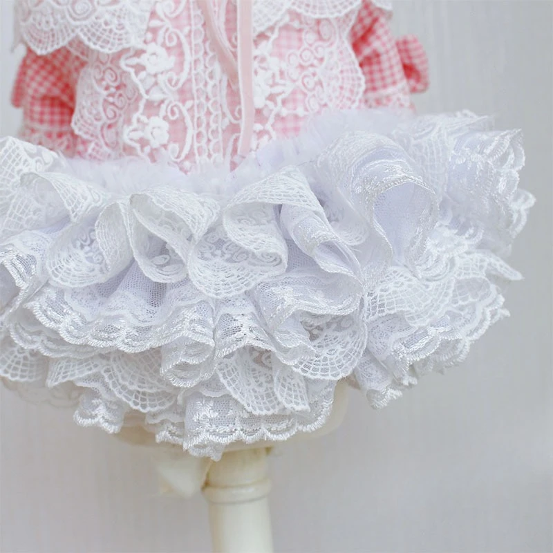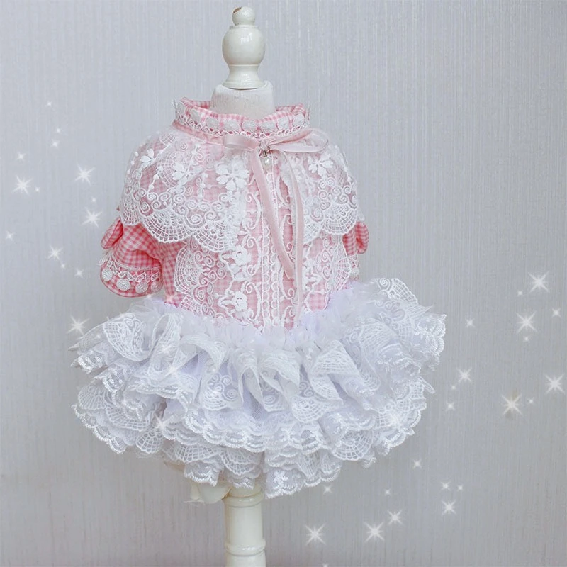 Vestido a cuadros de otoño/invierno para mascotas, vestido de princesa de encaje de gato de felpa, falda abombada de malla, vestidos para perros pequeños, ropa para cachorros
