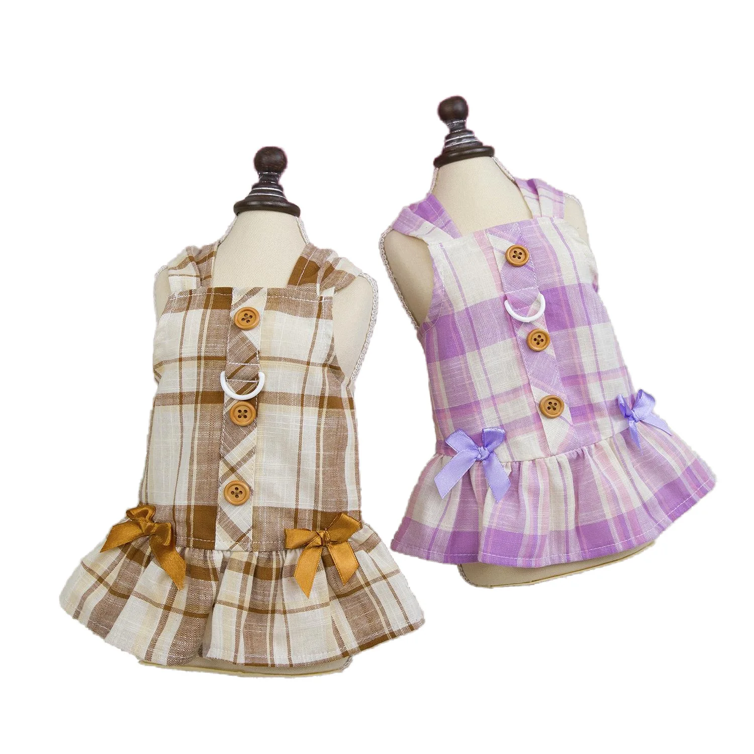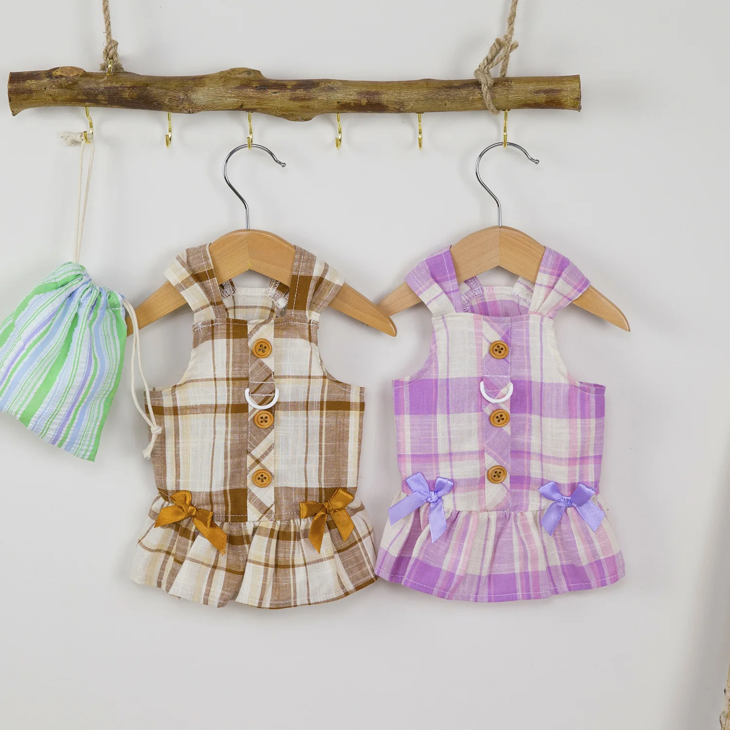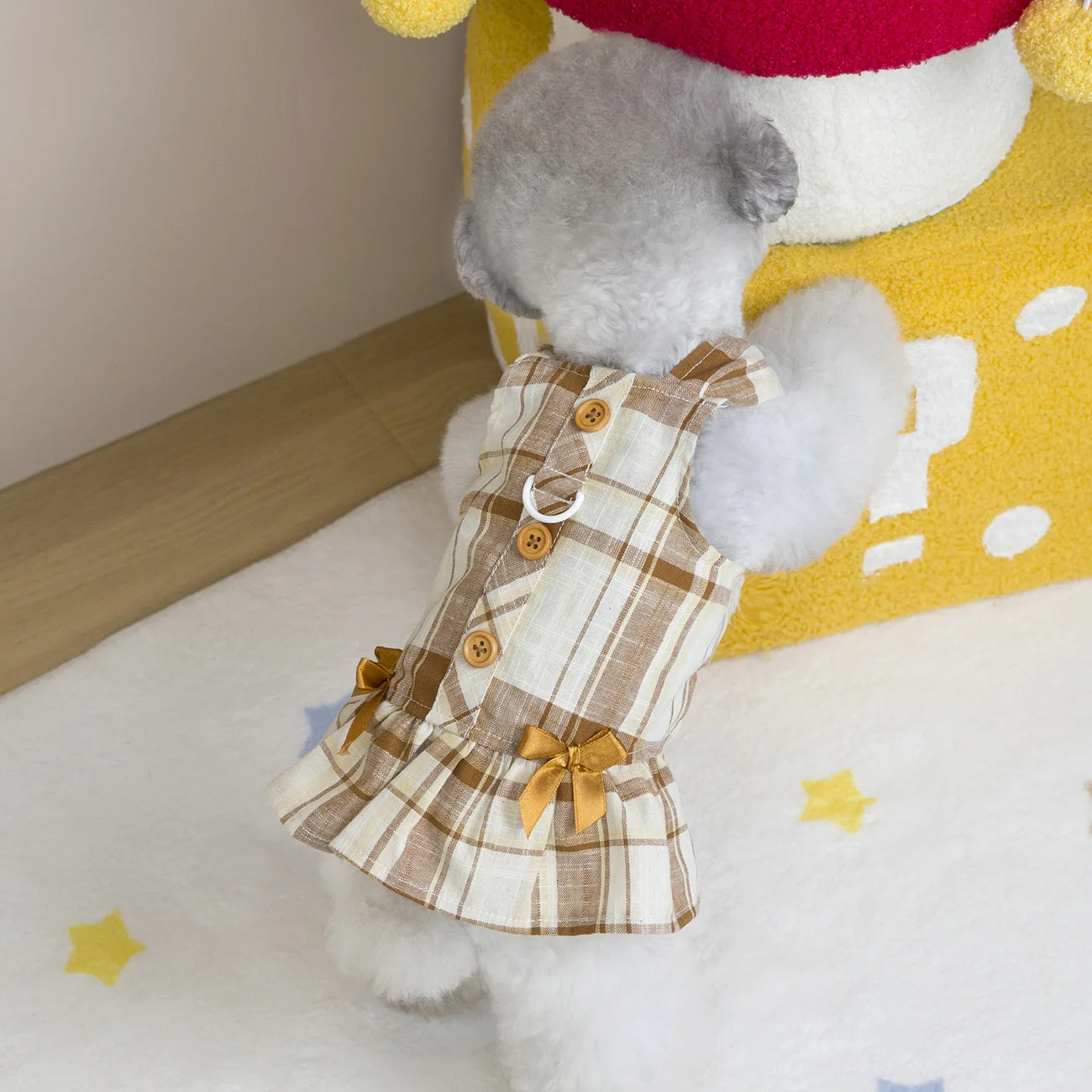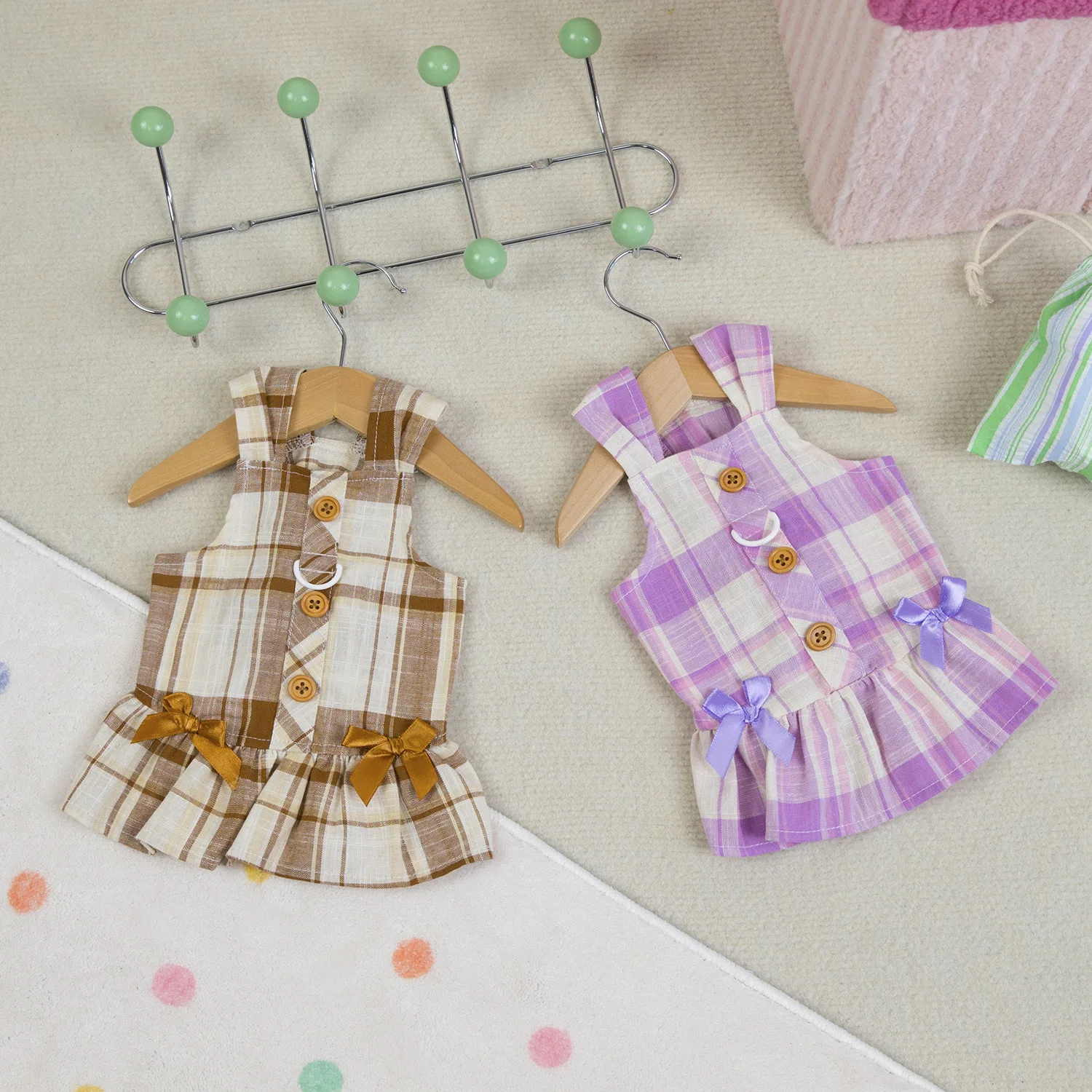 Vestido a cuadros de primavera para mascotas, camiseta sin mangas fina de princesa para perros pequeños, ropa para cachorros, ropa para perros pequeños