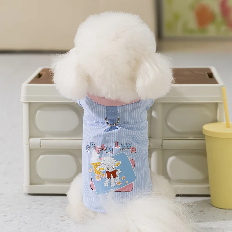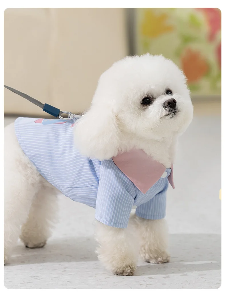 Vestido con cuello a rayas para mascotas, Schnauzer para perros pequeños, camiseta sin mangas fina de dos piernas, ropa para gatos, ropa para cachorros, chalecos refrescantes
