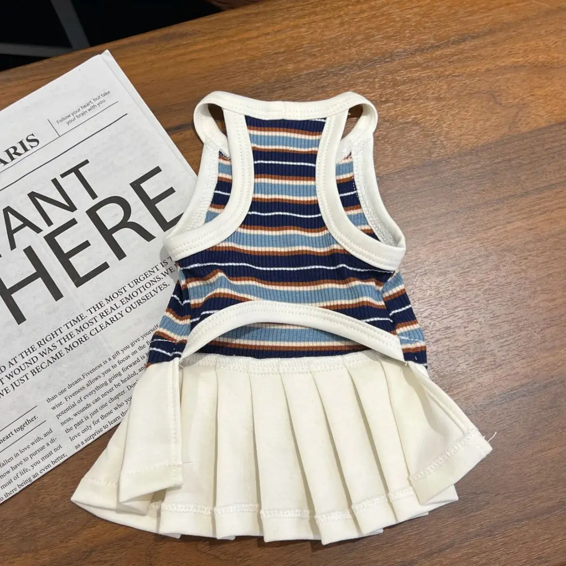 Vestido deportivo a rayas de primavera para mascotas, correa elástica, camiseta sin mangas fina para perros y gatos, vestidos para perros pequeños, ropa para cachorros