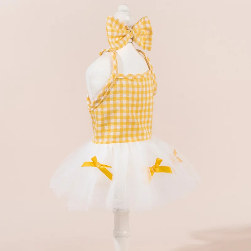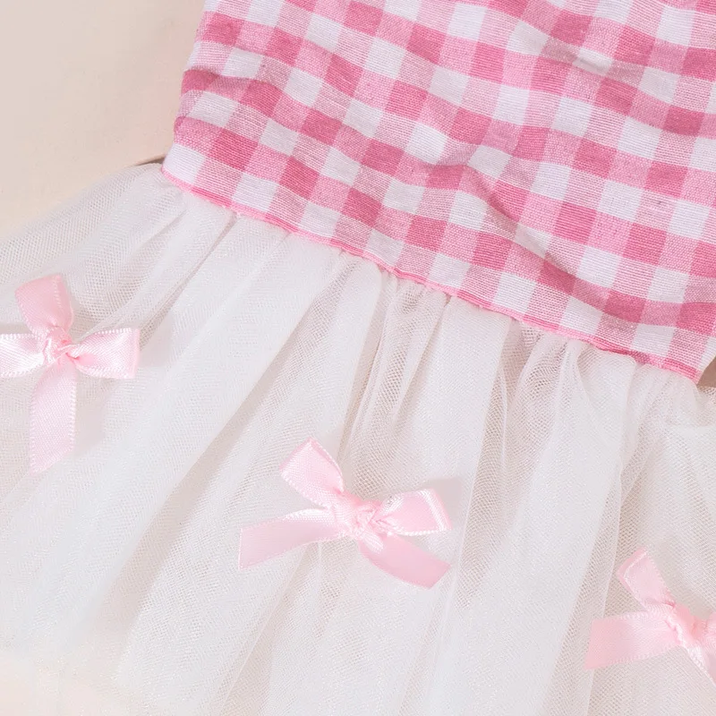 Vestido elegante de princesa con entramado para perro, chaleco con pajarita de encaje, falda, ropa para gatos, monos para cachorros femeninos con perlas, ropa encantadora para perros