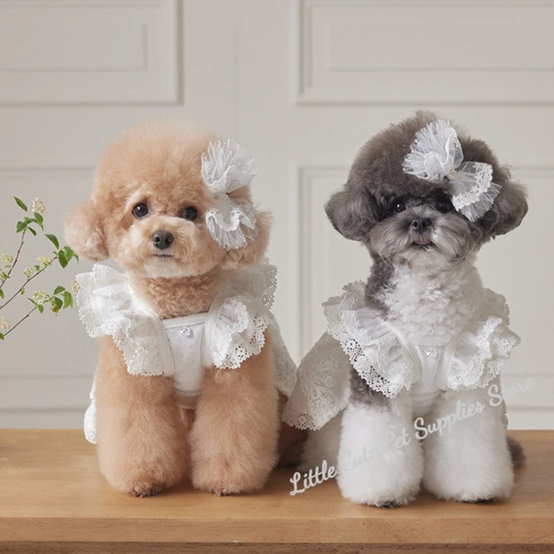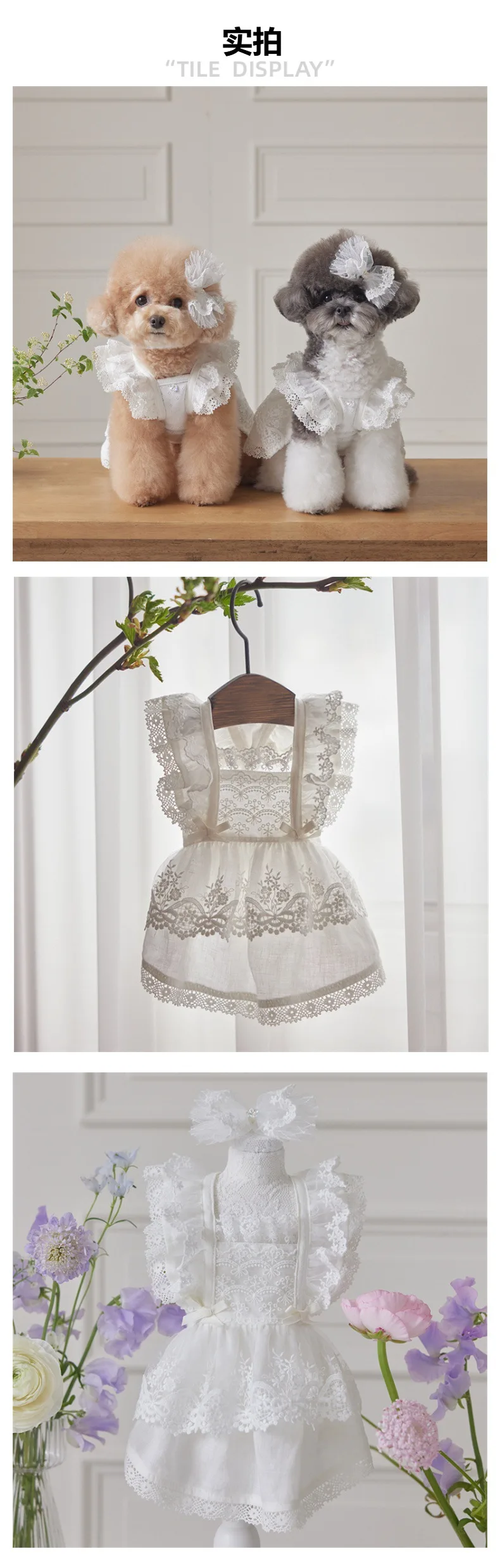 Vestido de encaje con mangas voladoras para mascotas, Top para gatos, vestido de princesa de encaje para primavera y verano, vestidos para perros pequeños, ropa para cachorros