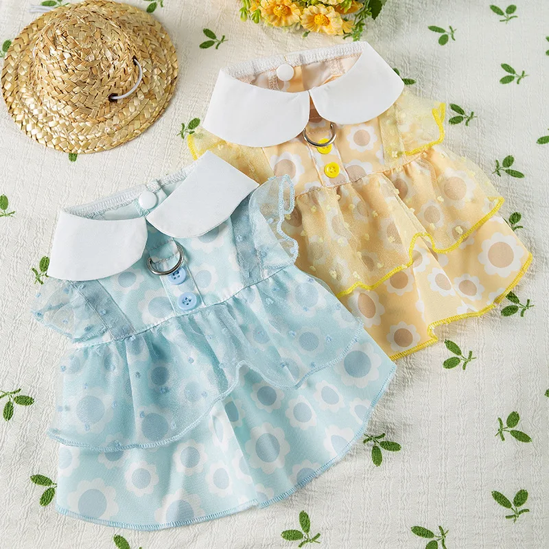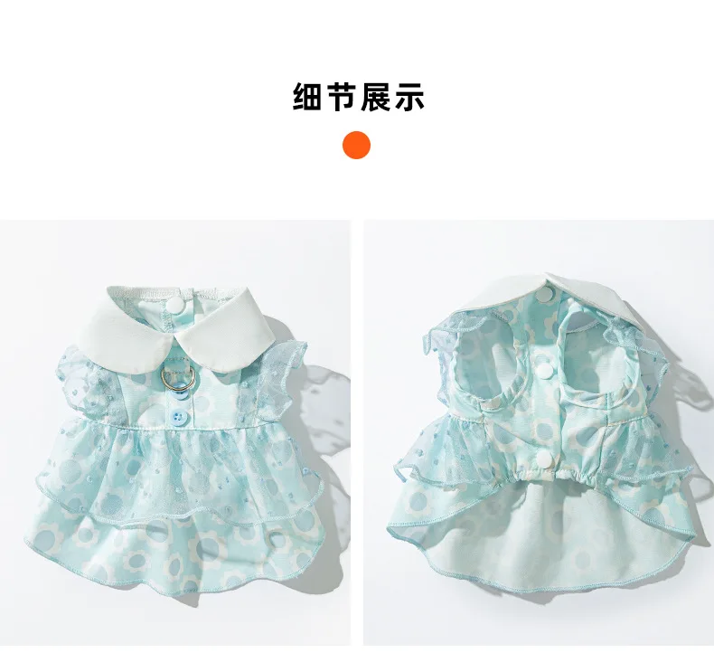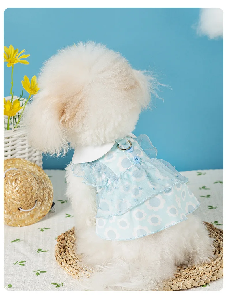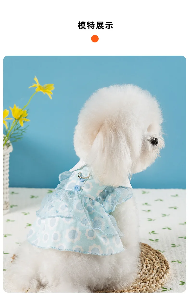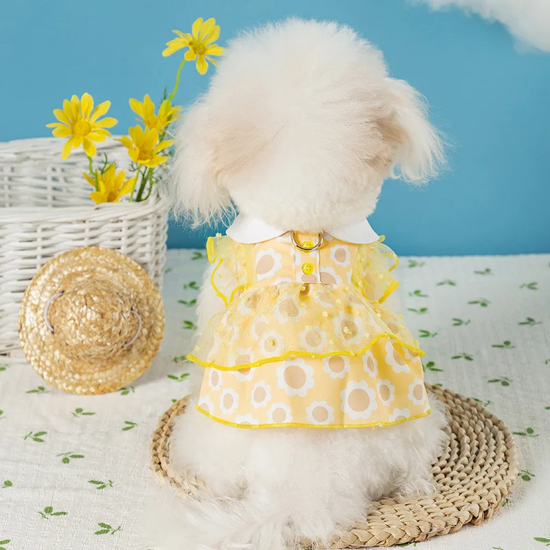 Vestido de encaje con mangas voladoras para mascotas, vestido de malla para mascotas de peluche, ropa transpirable para perros pequeños y medianos, Top para perros y gatos