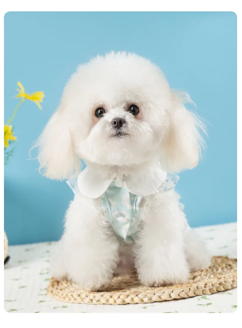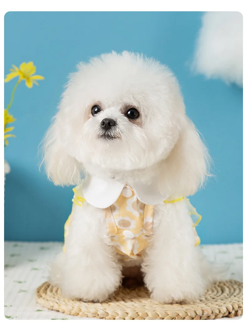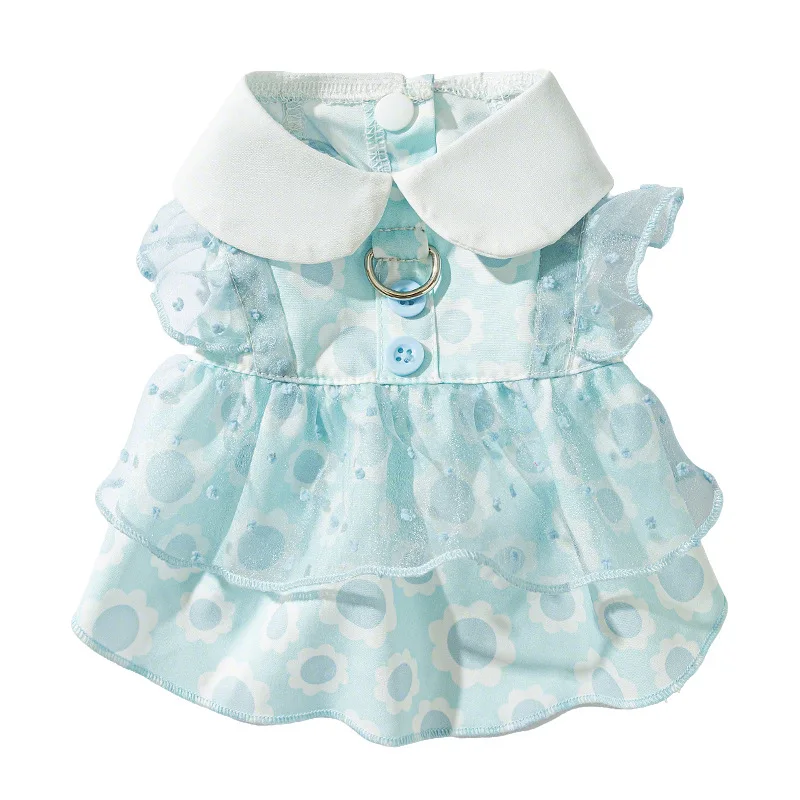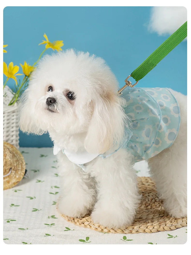 Vestido de encaje con mangas voladoras para mascotas, vestido de malla para mascotas de peluche, ropa transpirable para perros pequeños y medianos, Top para perros y gatos