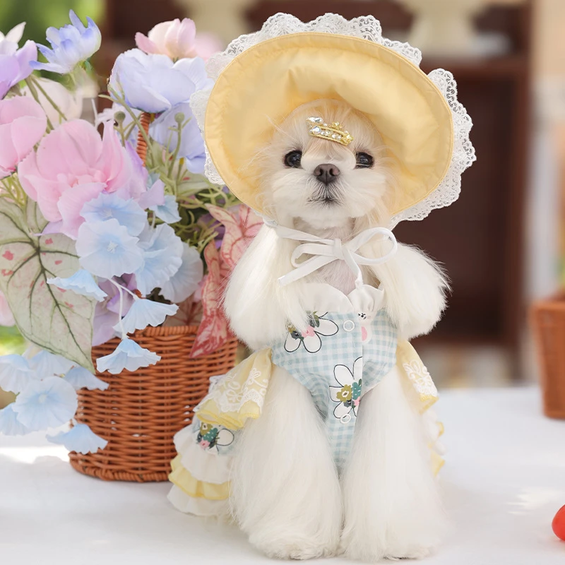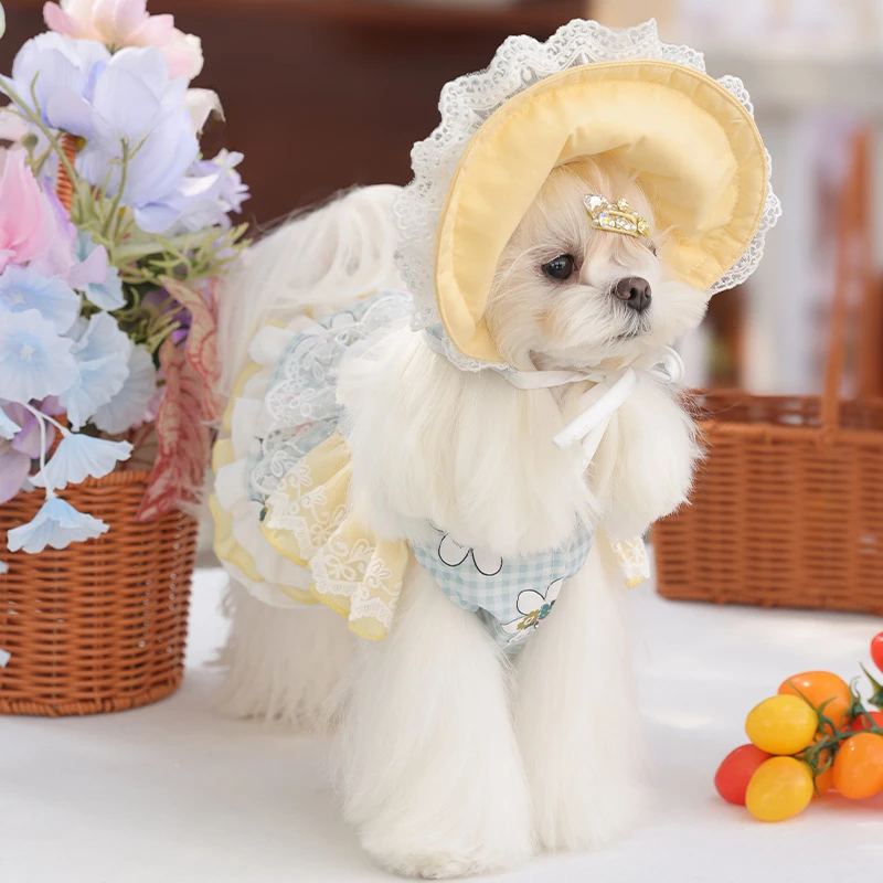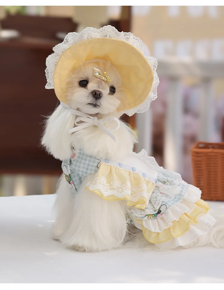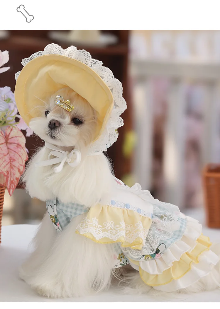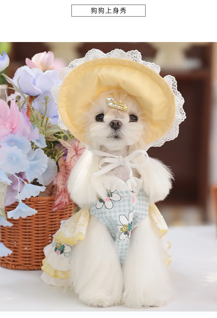 Vestido de encaje para mascotas, edición de primavera y otoño, abrigo para perros, cárdigan bordado para perros pequeños, ropa para cachorros, ropa para mascotas