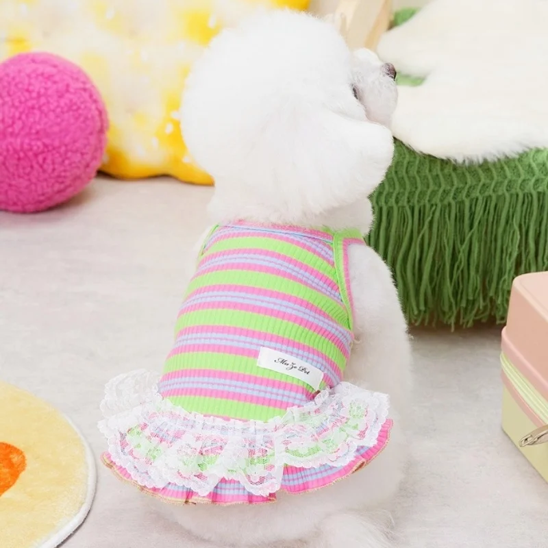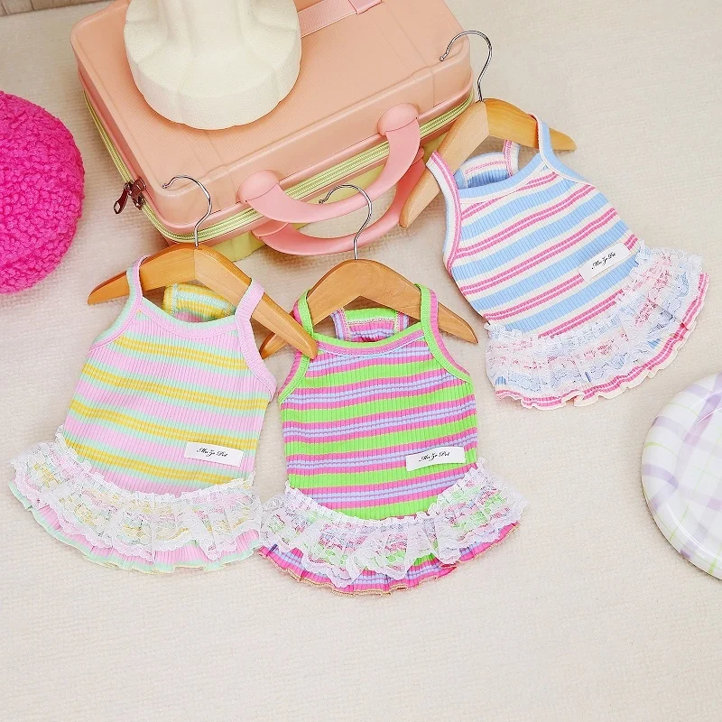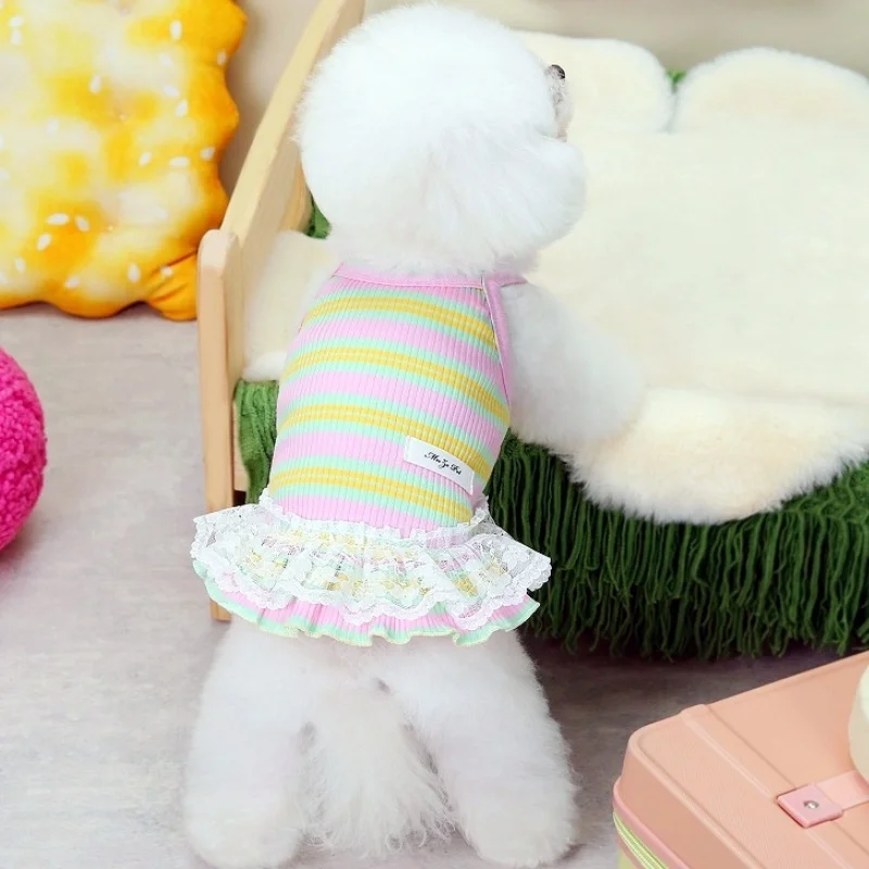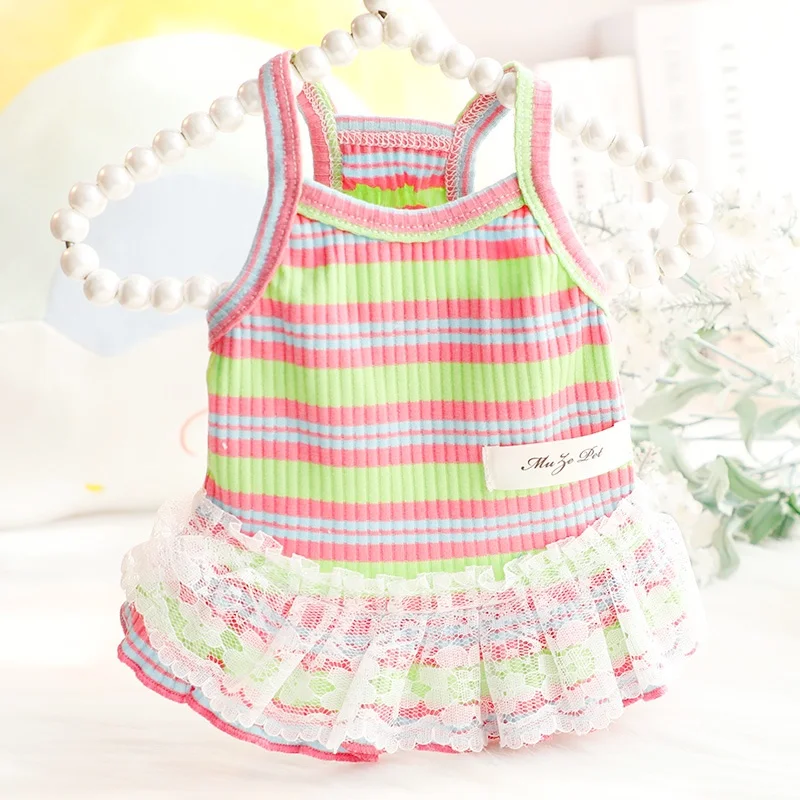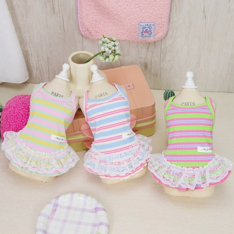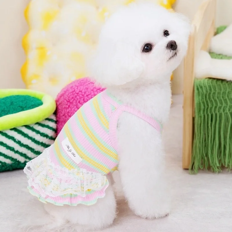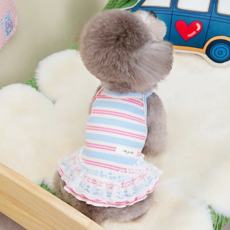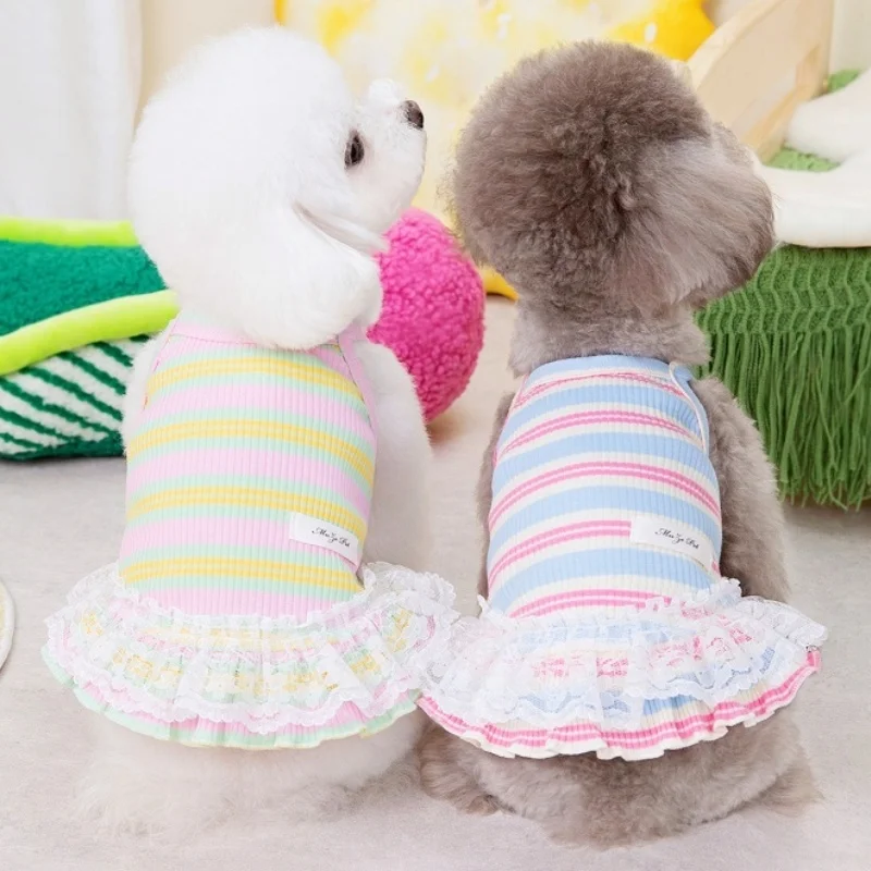 Vestido de encaje a la moda para perros, ropa para perros pequeños, falda de princesa para cachorros de verano, vestido a rayas de gato bonito, ropa para perros Chihuahua