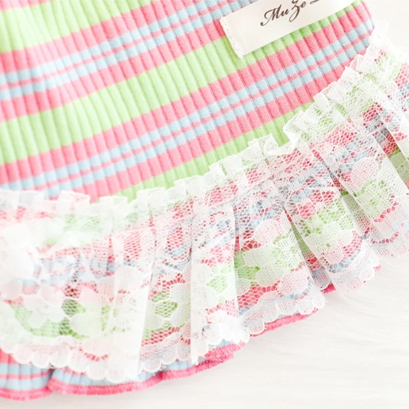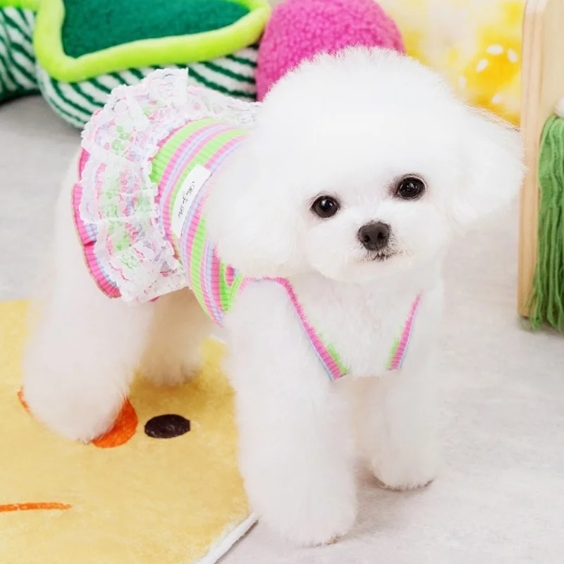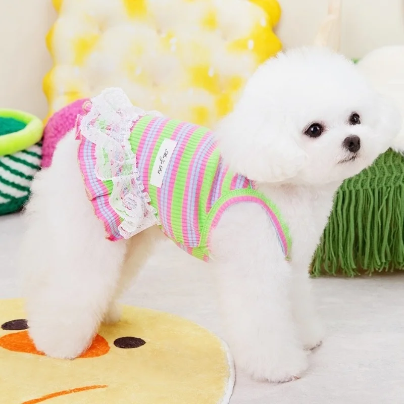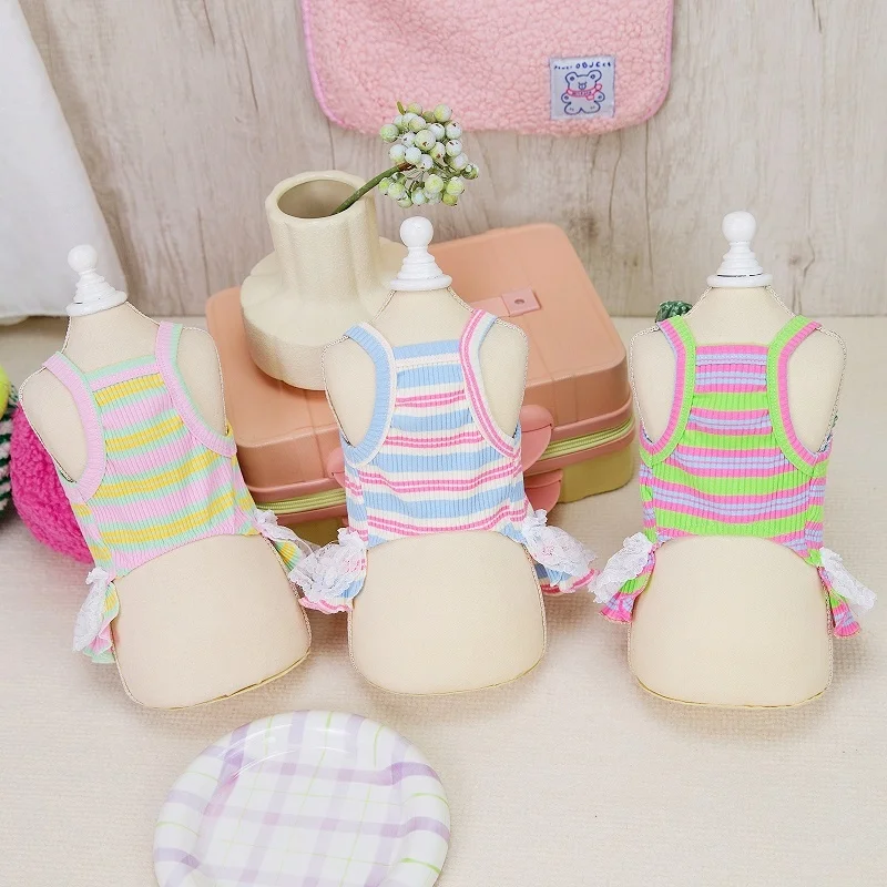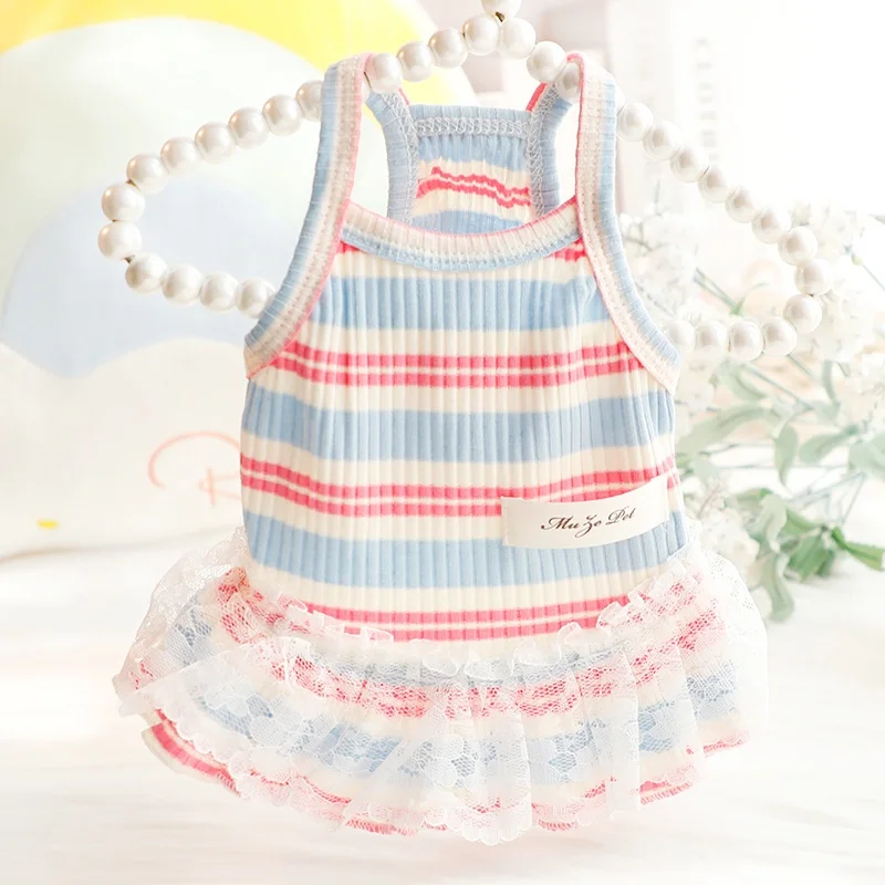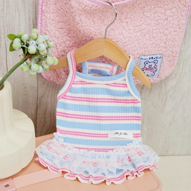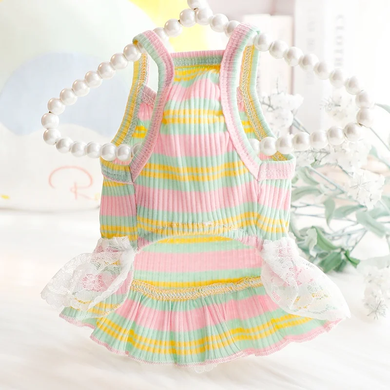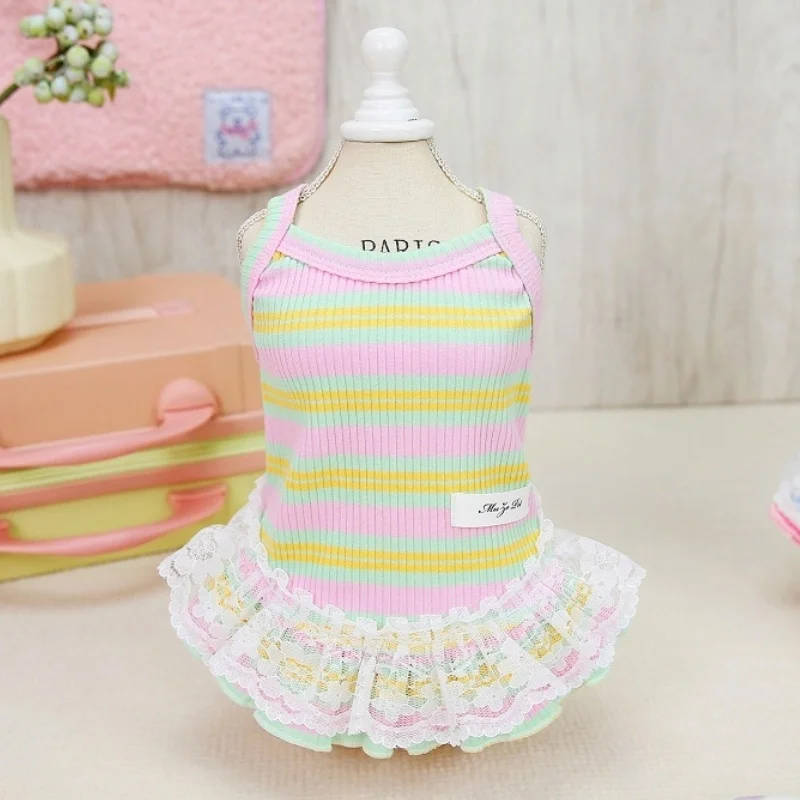 Vestido de encaje a la moda para perros, ropa para perros pequeños, falda de princesa para cachorros de verano, vestido a rayas de gato bonito, ropa para perros Chihuahua