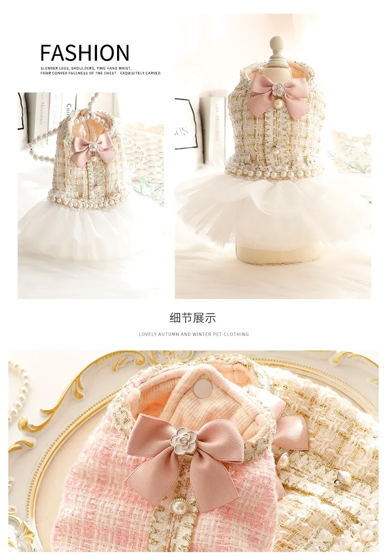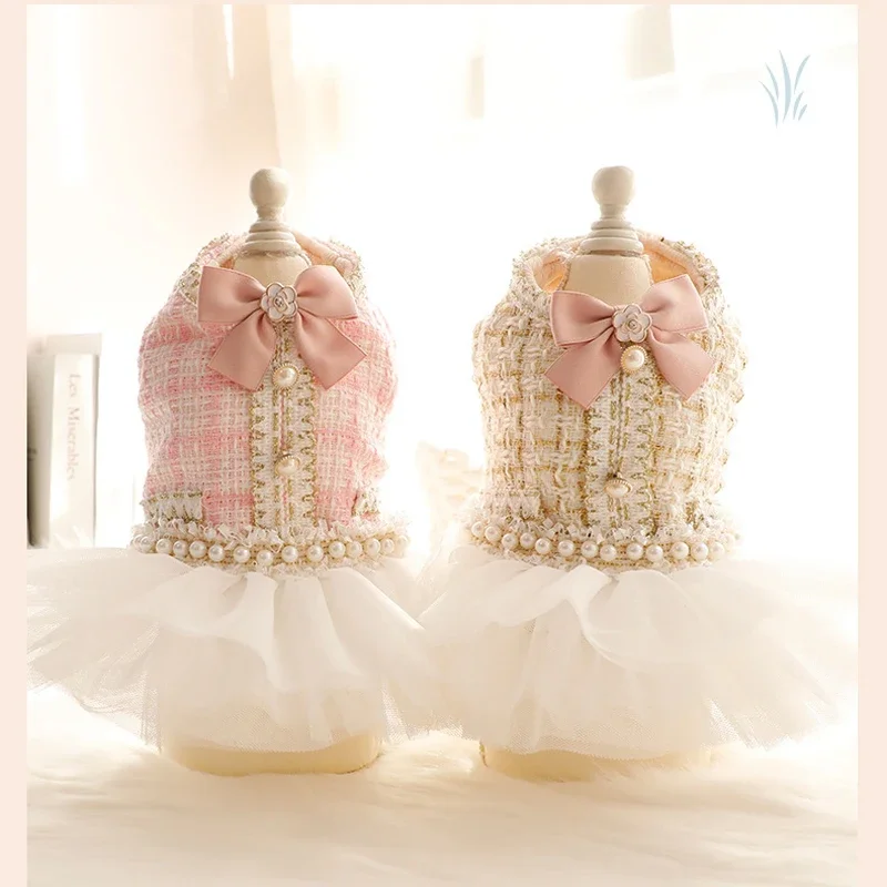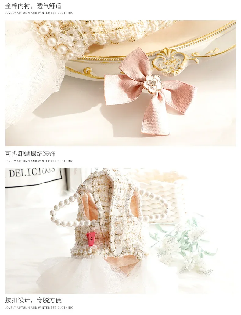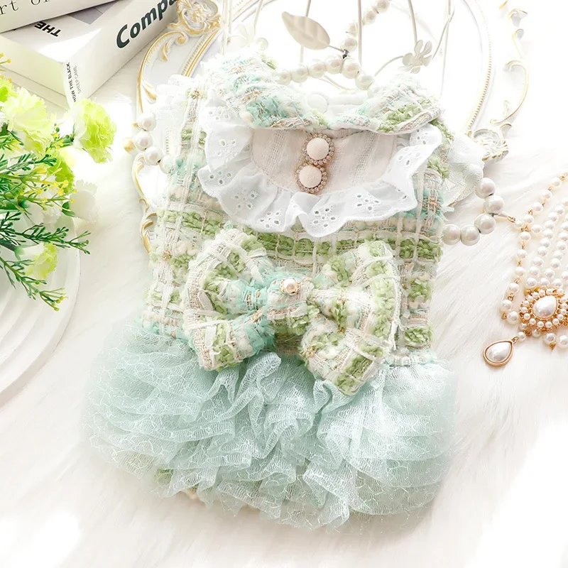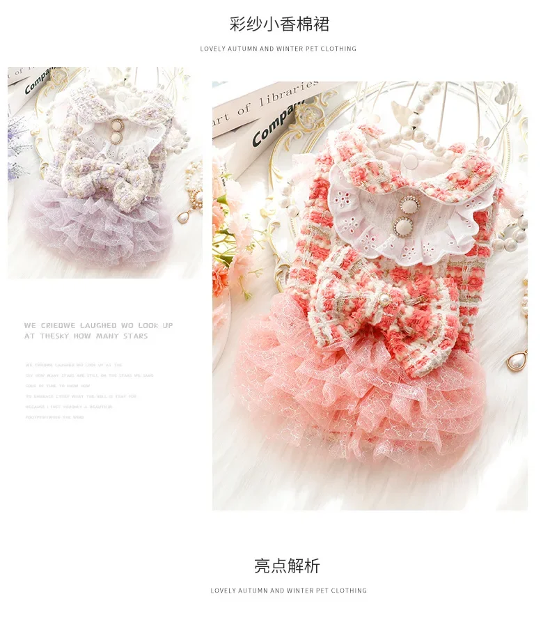 Vestido de encaje para perros pequeños, ropa de lujo para perros, falda tutú, falda esponjosa de princesa, ropa de algodón para mascotas