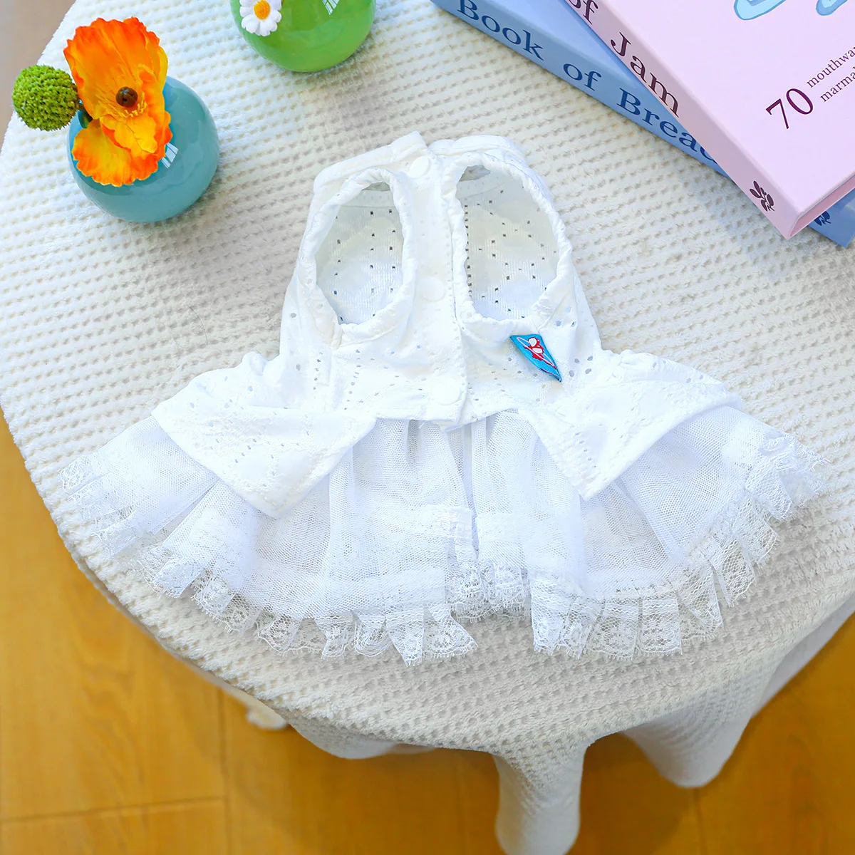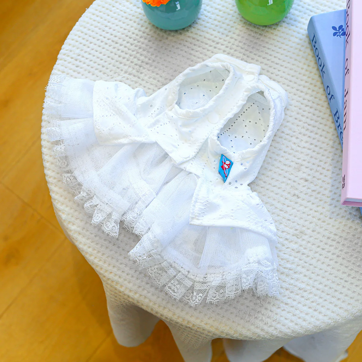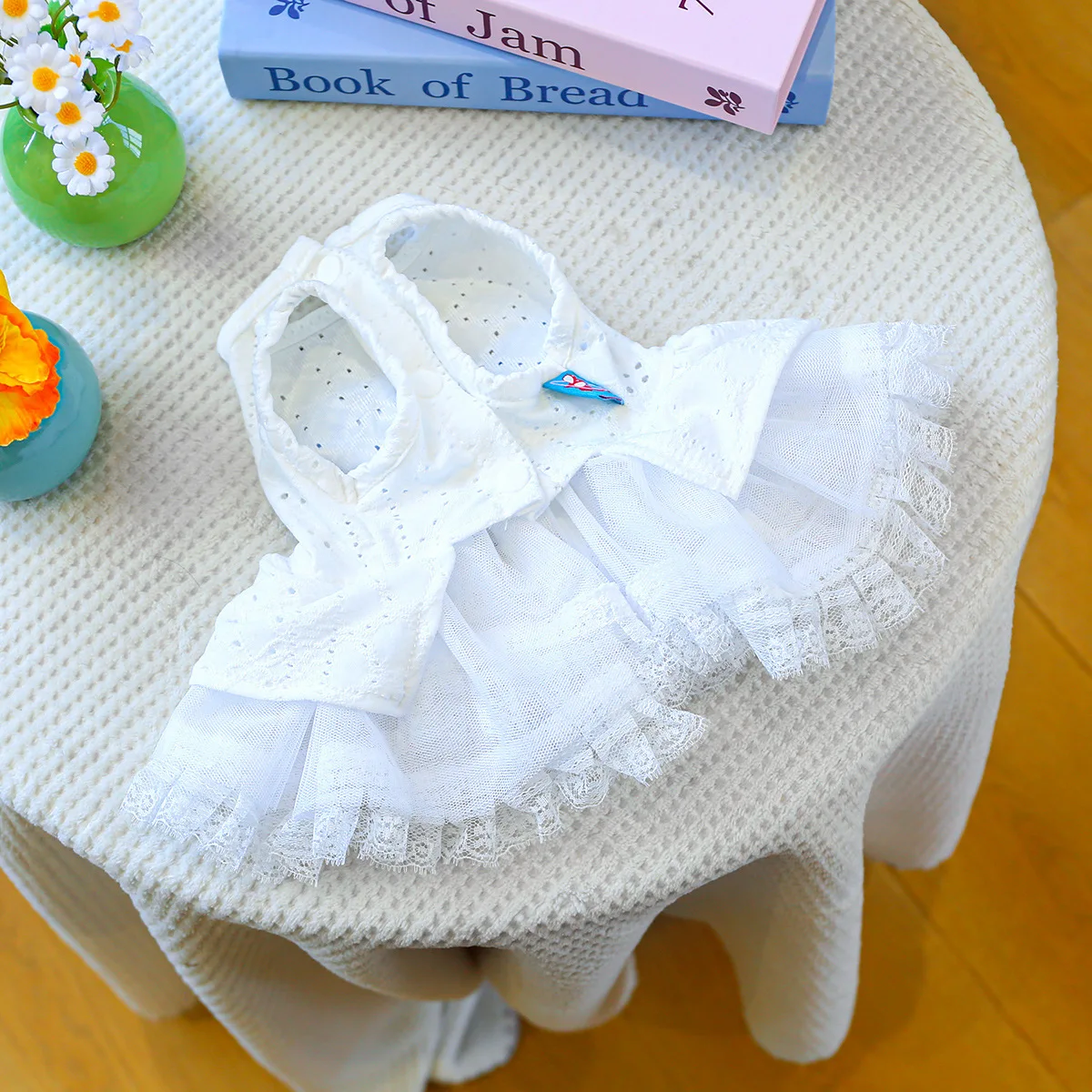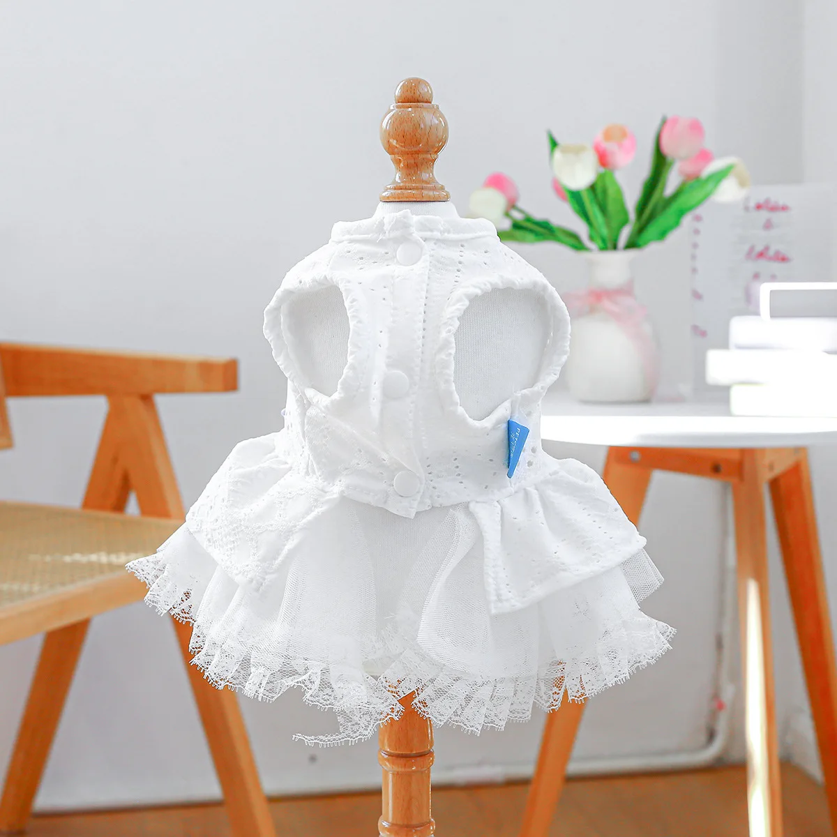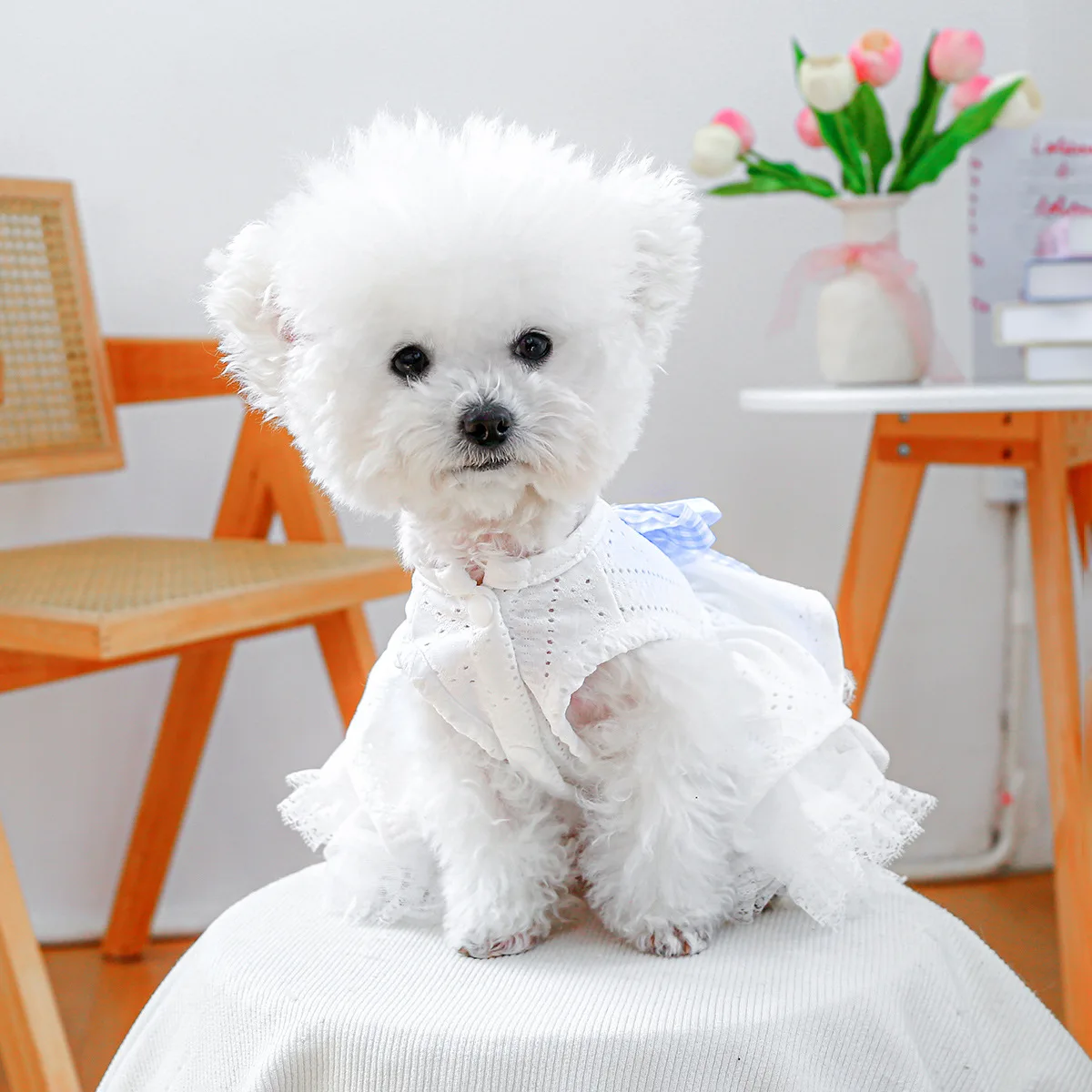 Vestido de encaje de primavera para mascotas, ropa calada para perros, bonito lazo a cuadros, falda esponjosa, vestidos para perros pequeños, ropa para cachorros