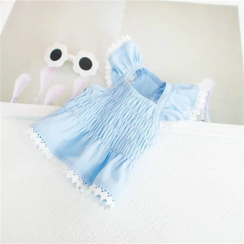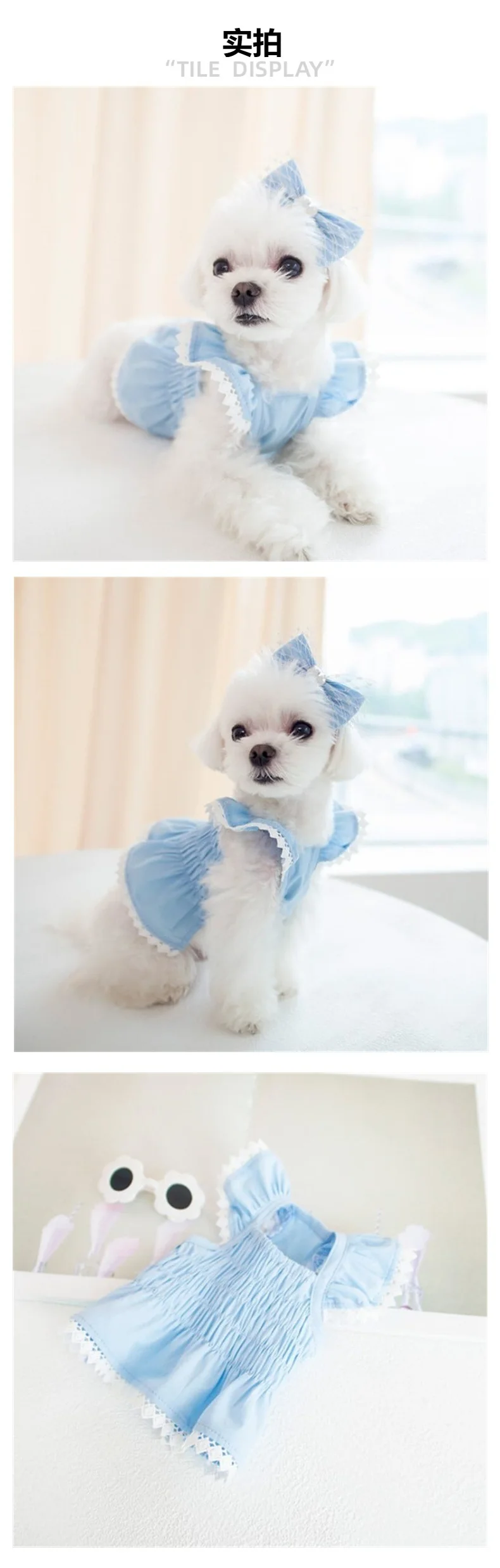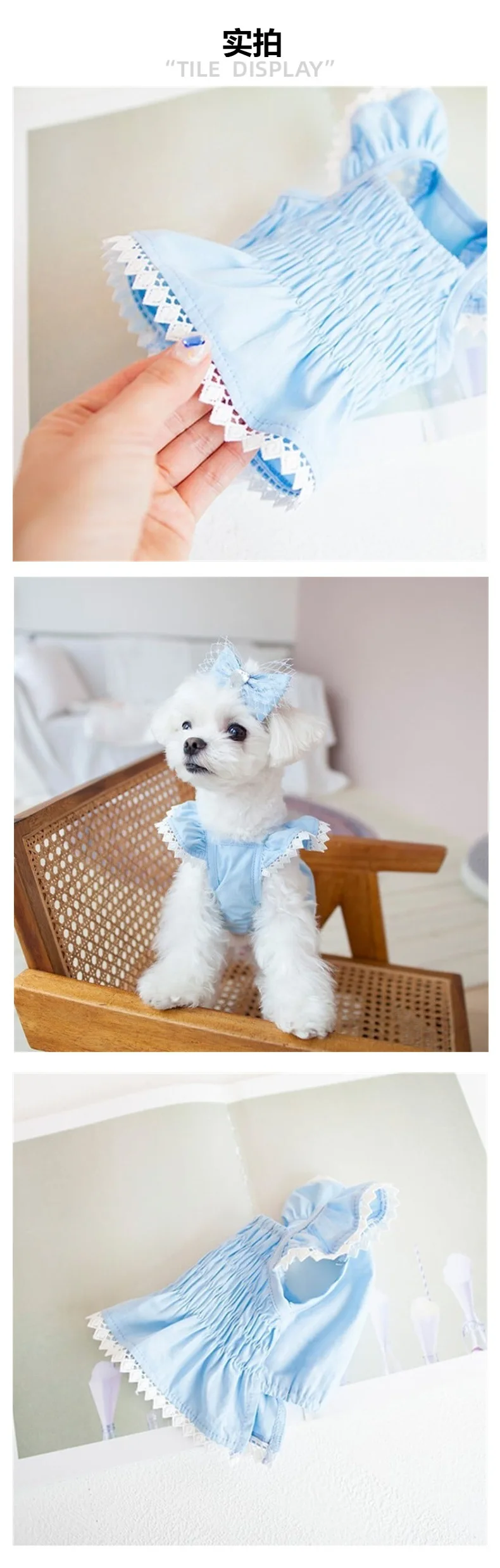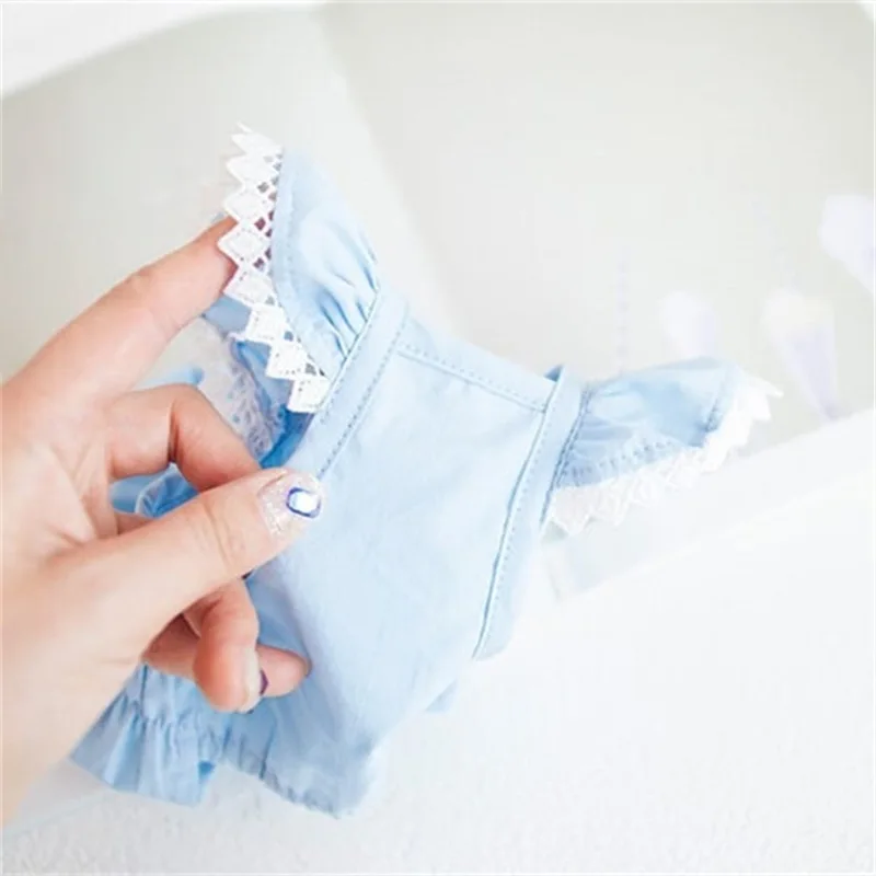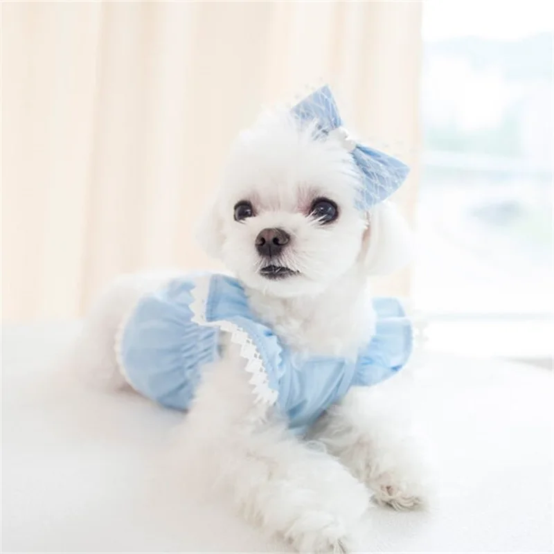 Vestido de encaje de primavera para mascotas, vestido azul elástico arrugado para perros, oso de peluche, suministros para mascotas, vestidos para perros pequeños, ropa para cachorros