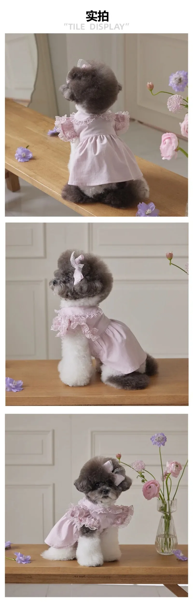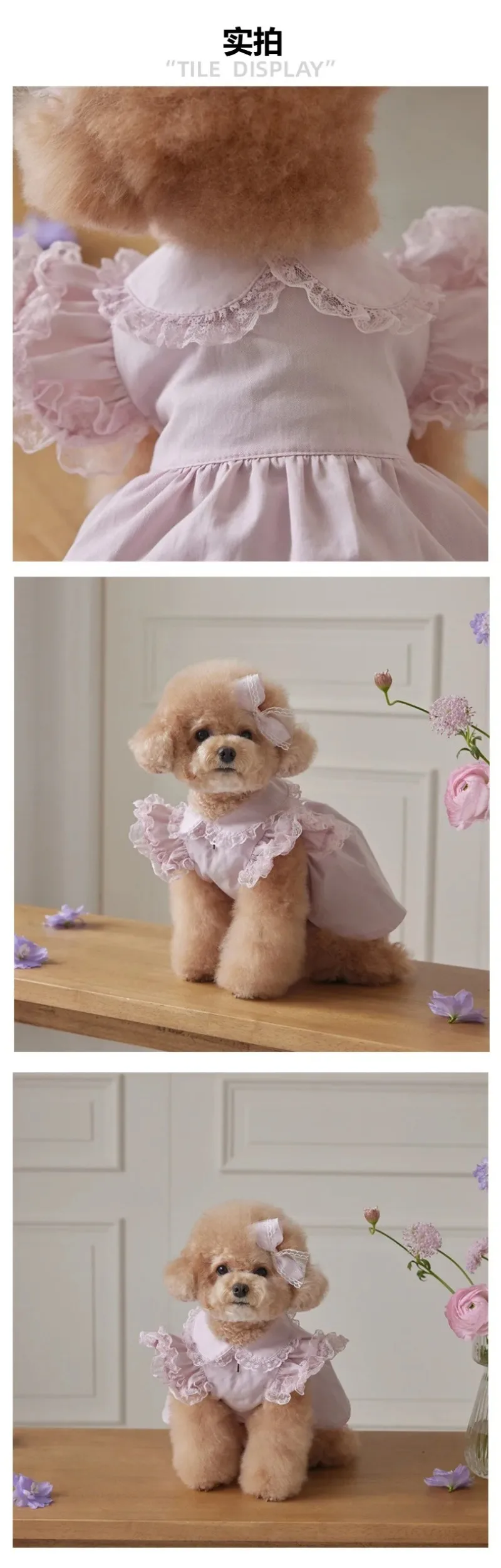 Vestido de encaje de princesa para mascotas, ropa de moda para perros y gatos, camisa con mangas voladoras, oso de peluche, ropa para perros pequeños, ropa para cachorros