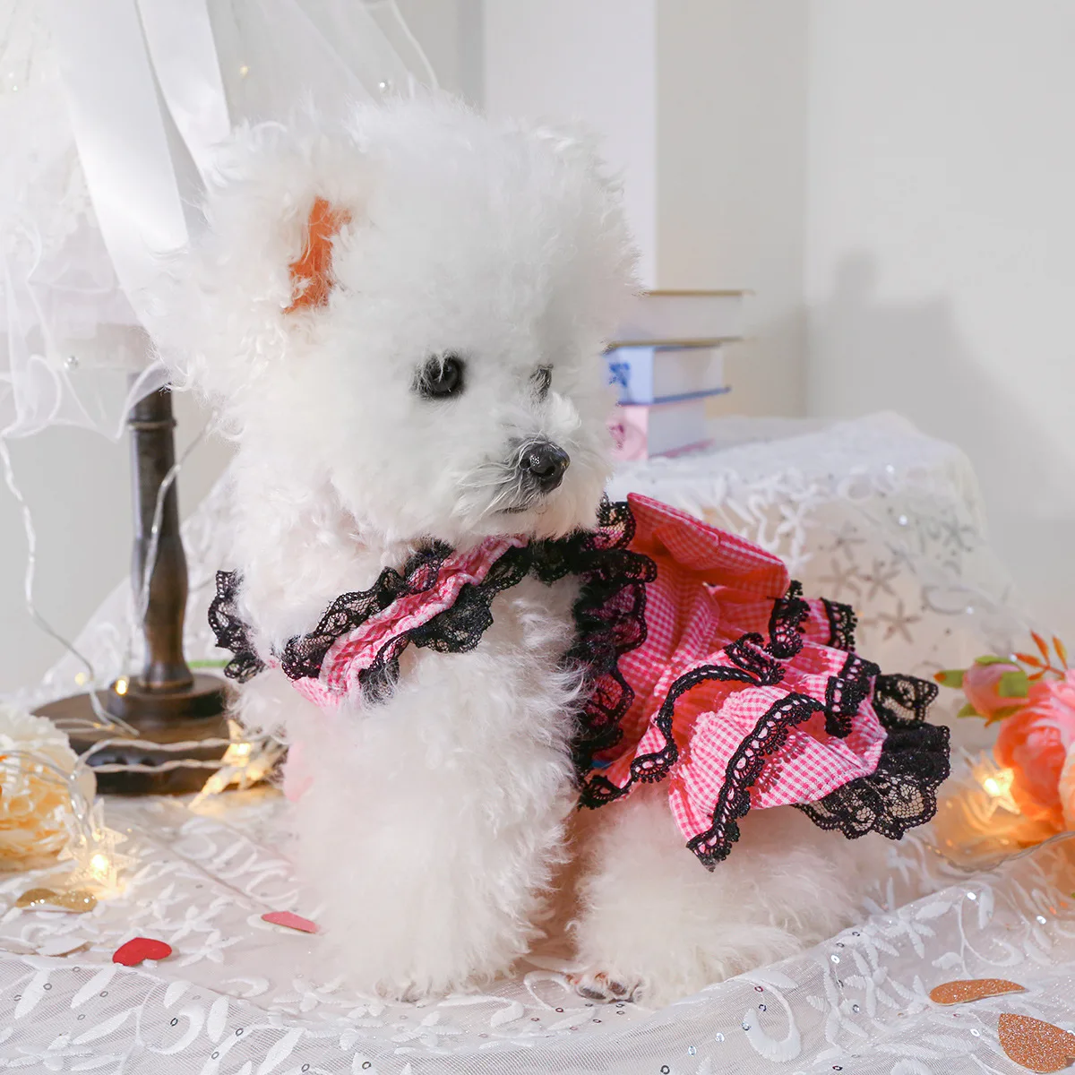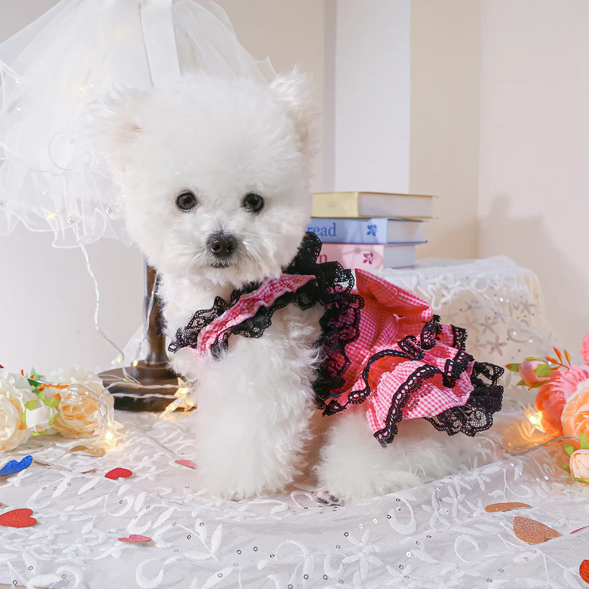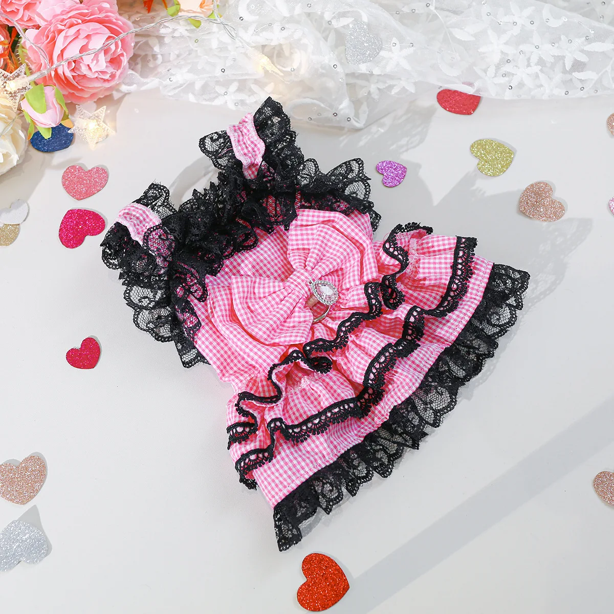 Vestido especial para mascotas del Día de San Valentín, traje rosa de chicle recortado con encaje para perros pequeños y gatos para ocasiones festivas