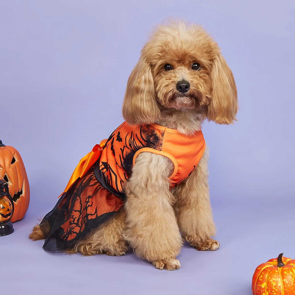 Vestido con estampado de bosque oscuro y Castillo para perros pequeños, ropa para cachorros con lazo, ropa cómoda para mascotas, Appare