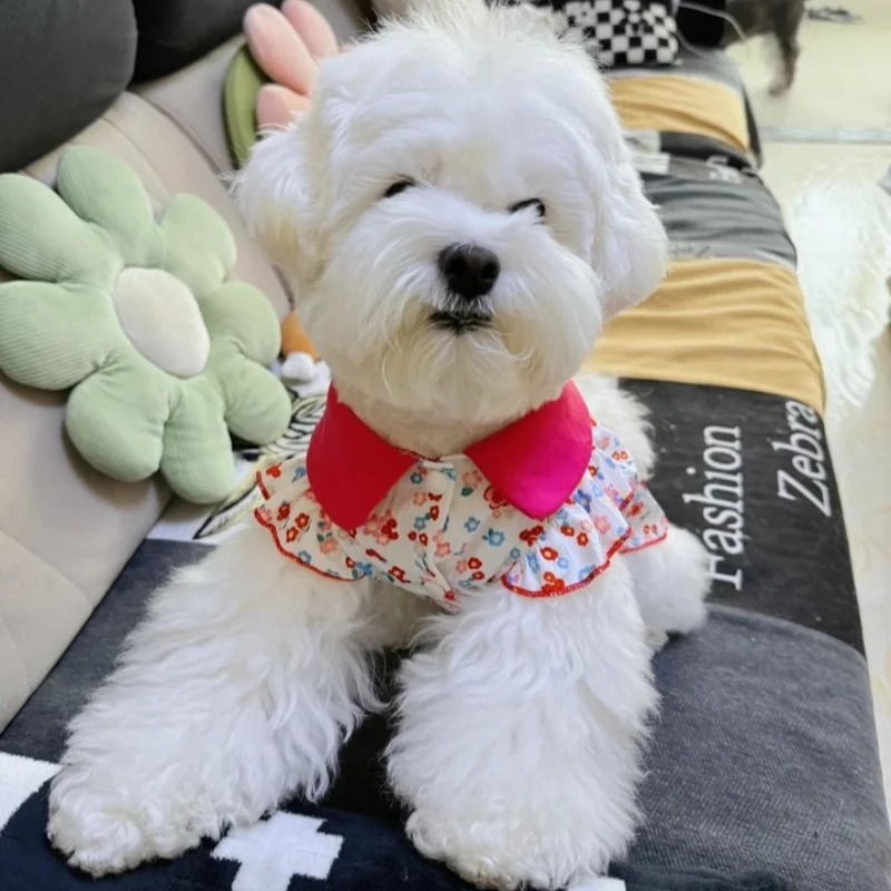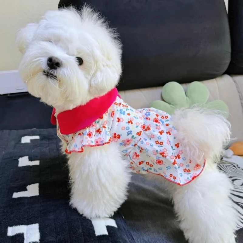 Vestido con estampado de flores para perro, chaleco con solapa a la moda para perro, ropa fina de verano para cachorros, falda de princesa de gato con manga voladora, disfraces para mascotas Chihuahua