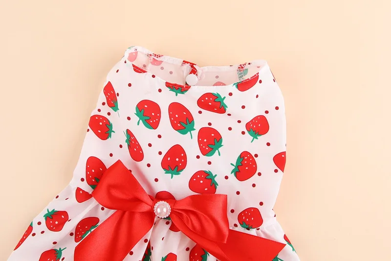 3. Estilo de diseño elegante y lindo.Este disfraz para mascotas está diseñado con un patrón de frutas y un patrón floral, lleno de ambiente veraniego; La cintura del vestido para mascotas también está diseñada con un bonito lazo, hermoso y a la moda.