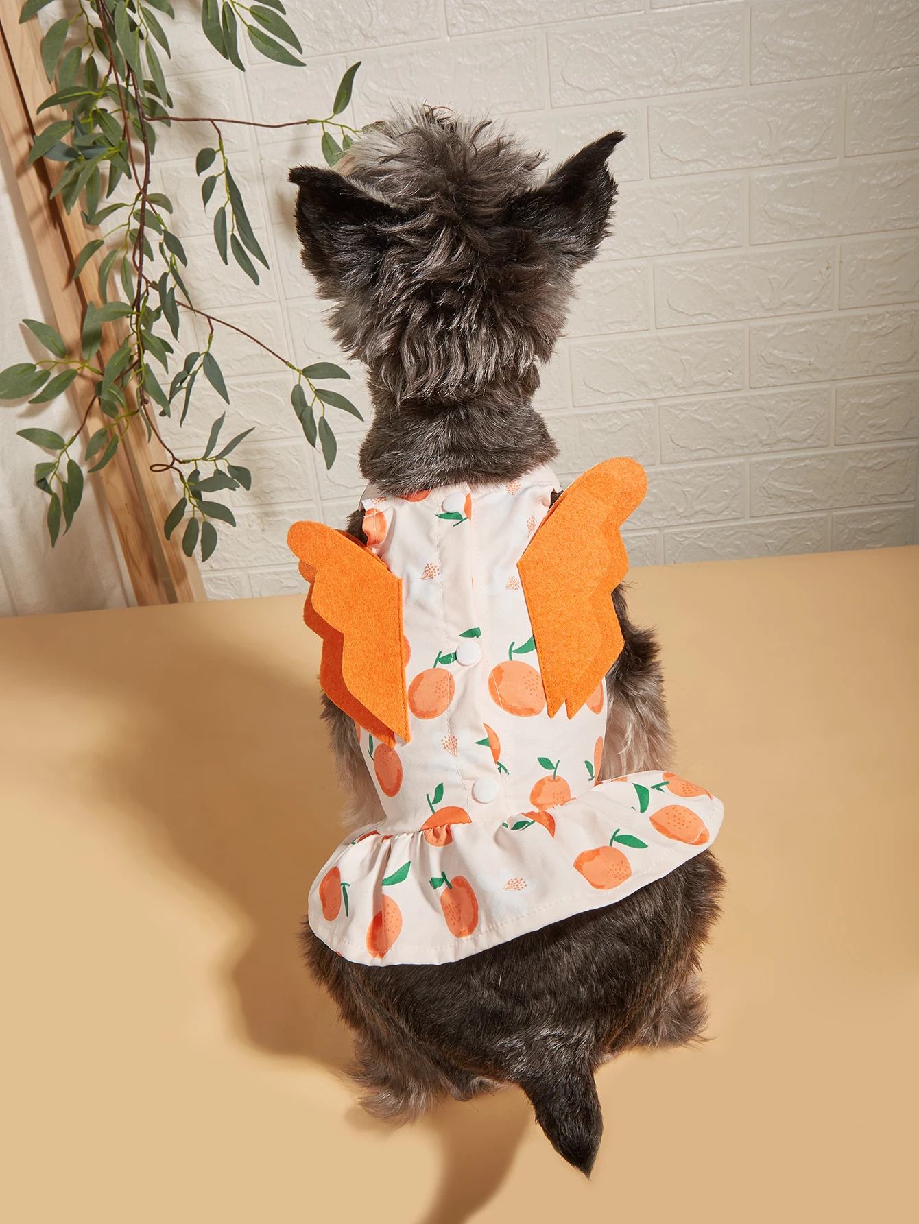 Vestido estampado para mascotas con alas, patrones de naranja y fresa, dulce traje de princesa para perros pequeños y gatos, adorable ropa para mascotas con alas