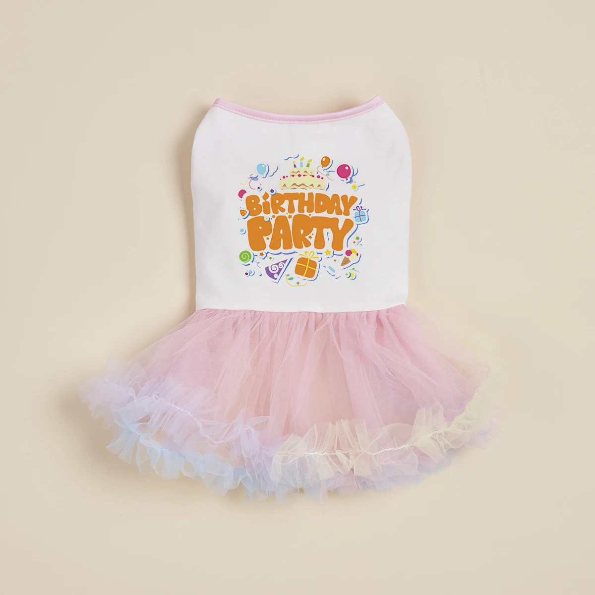 Vestido estampado de tul para perros pequeños, traje bonito para cachorros, ropa de verano para mascotas, ropa para perros y gatos para cumpleaños