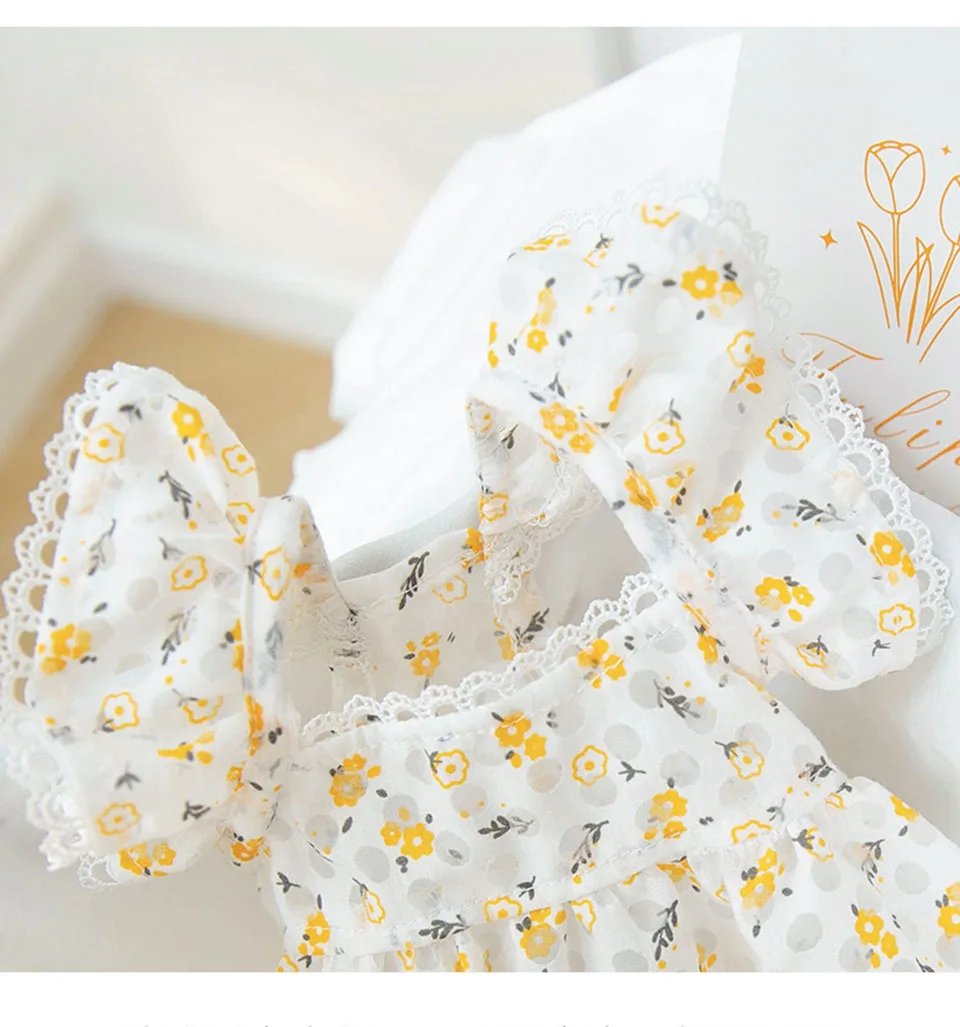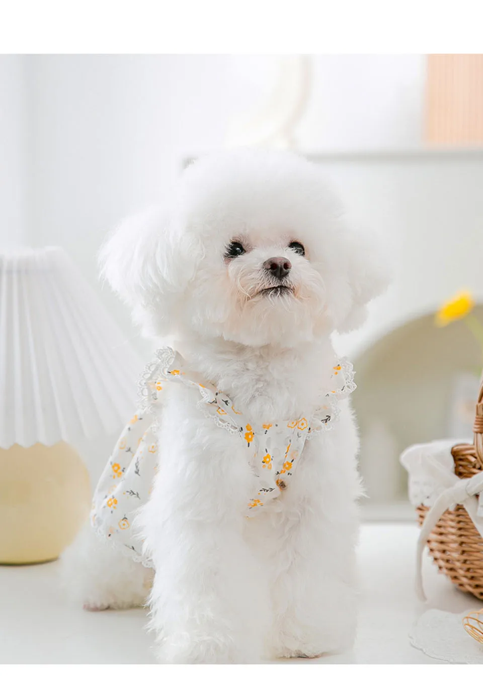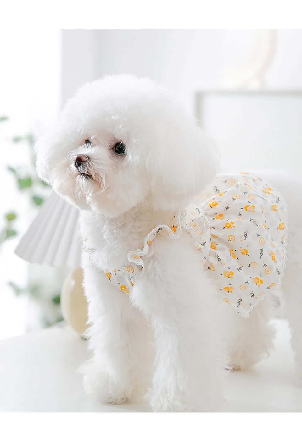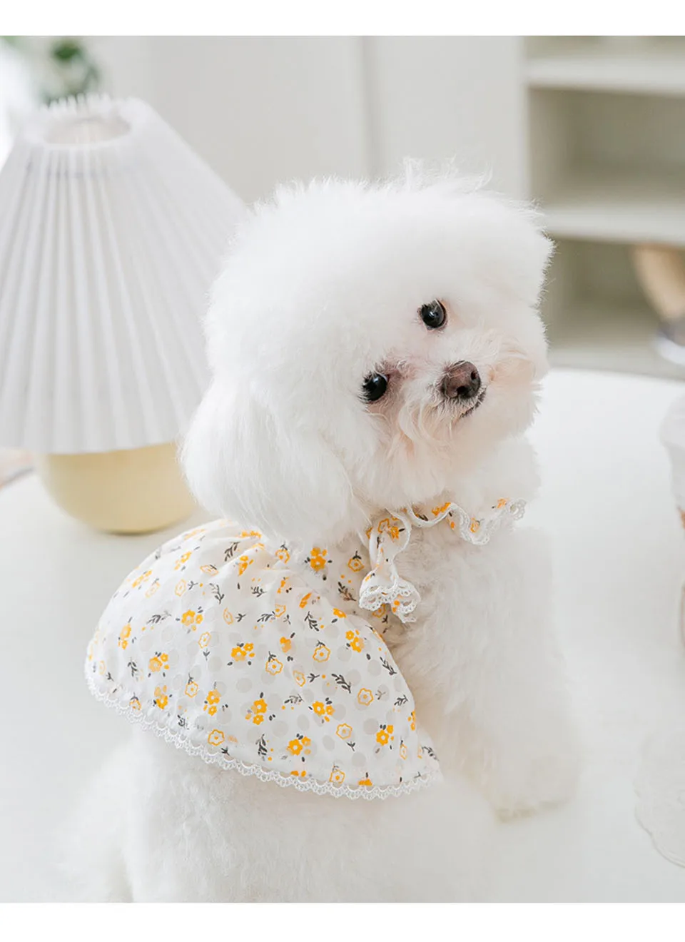 Primavera y verano cachorro perro falda hueca fresca gato vestido floral pequeño y mediano perro chaleco falda ropa para mascotas
