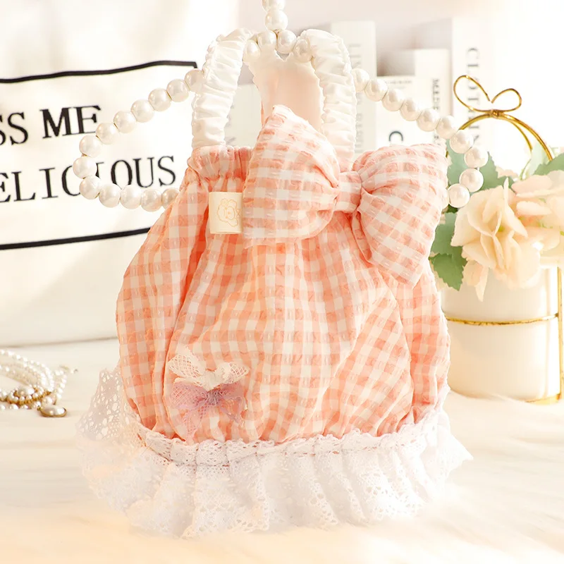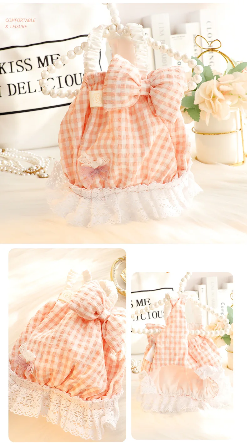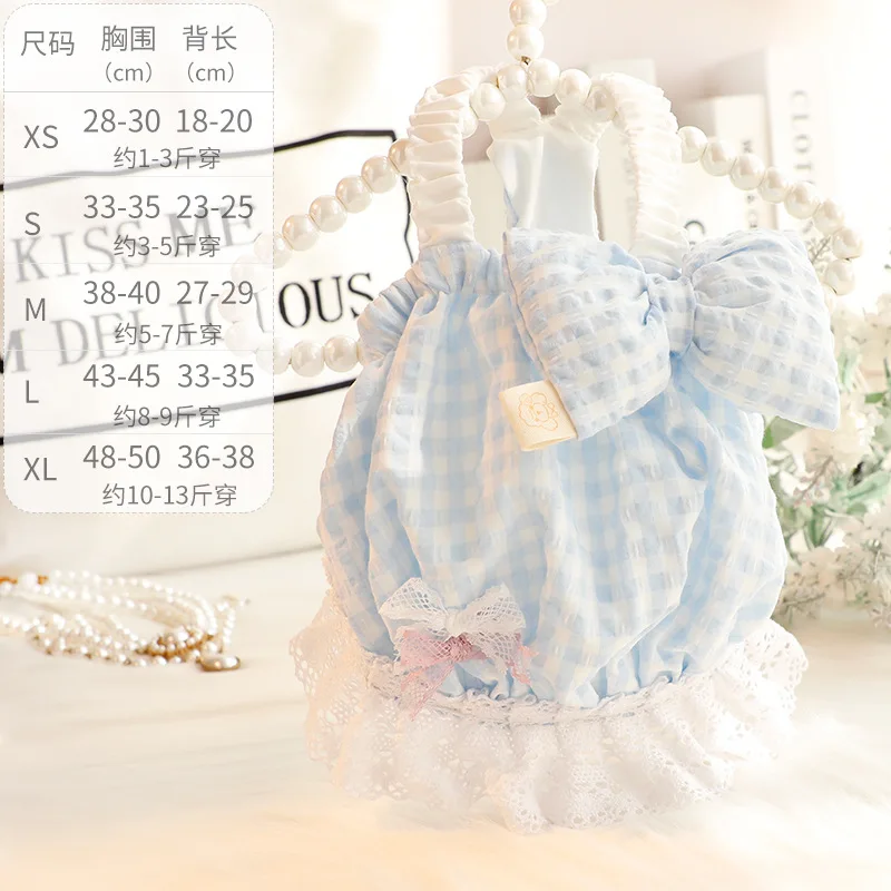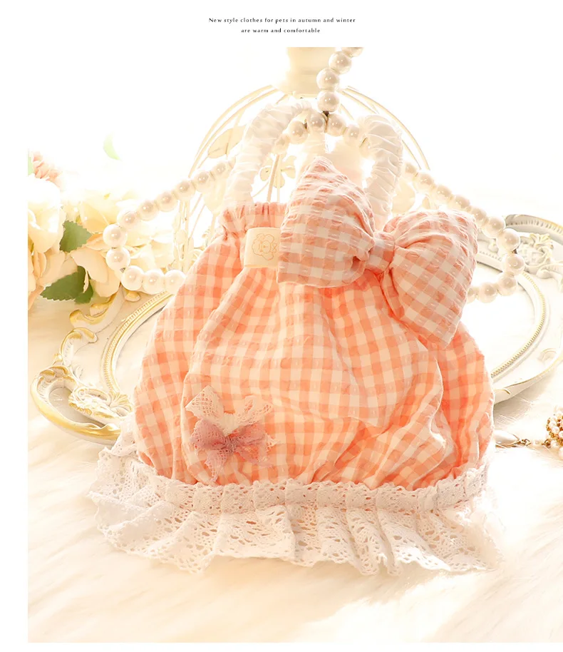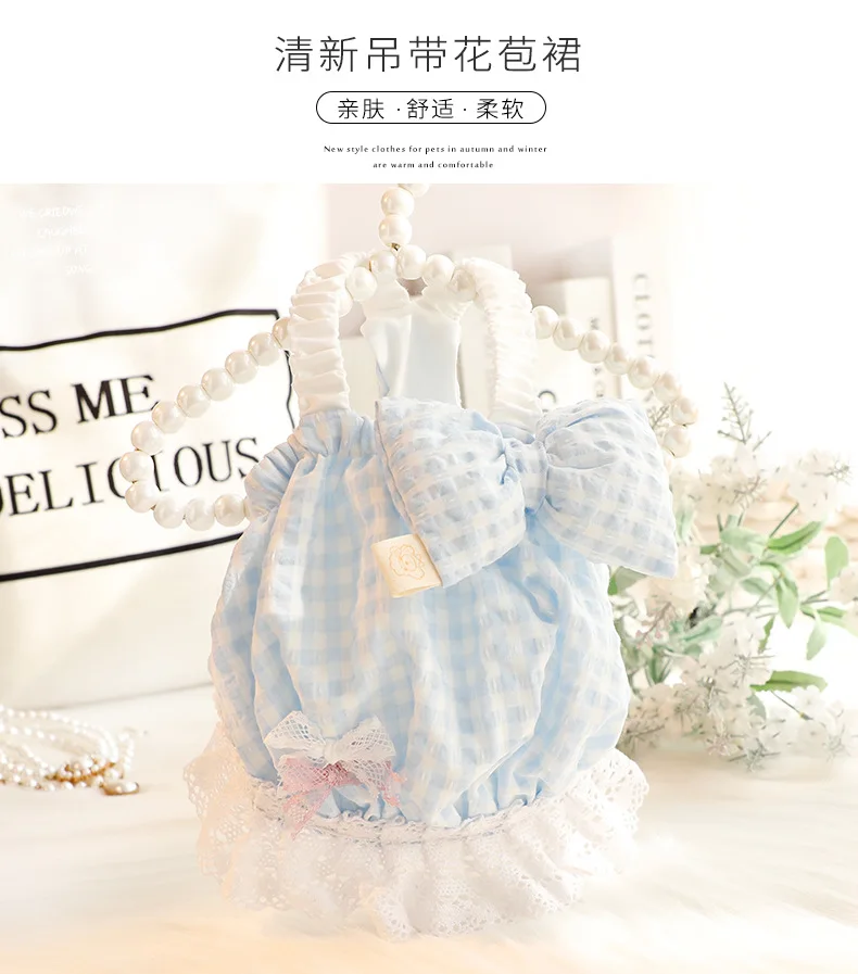 Vestido fino a cuadros con lazo para mascotas, falda con tirantes de princesa para gatos, camiseta sin mangas de peluche para perros pequeños y mariposas grandes