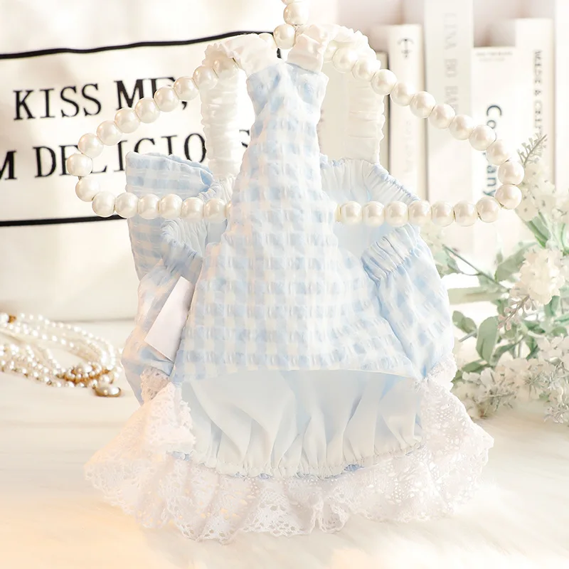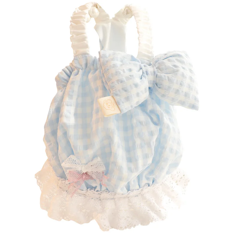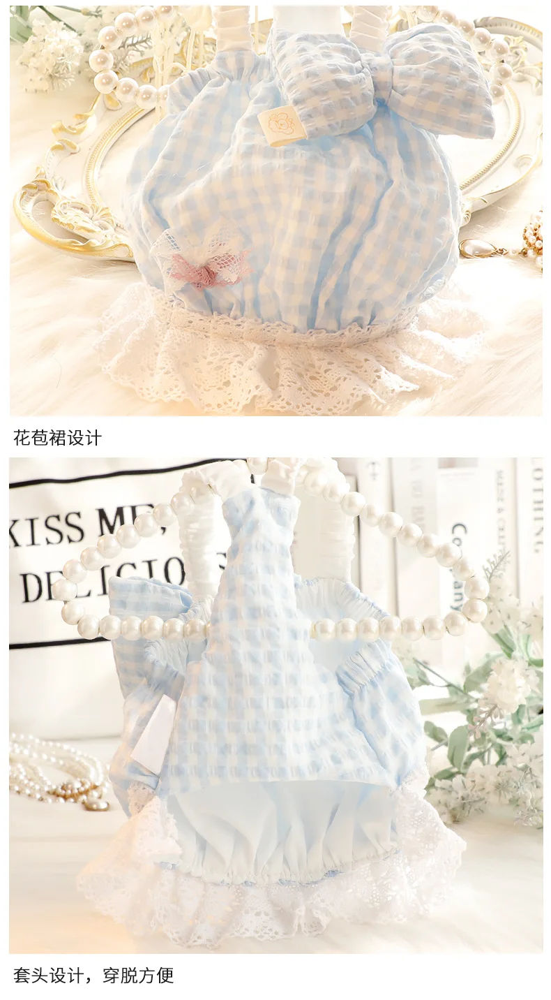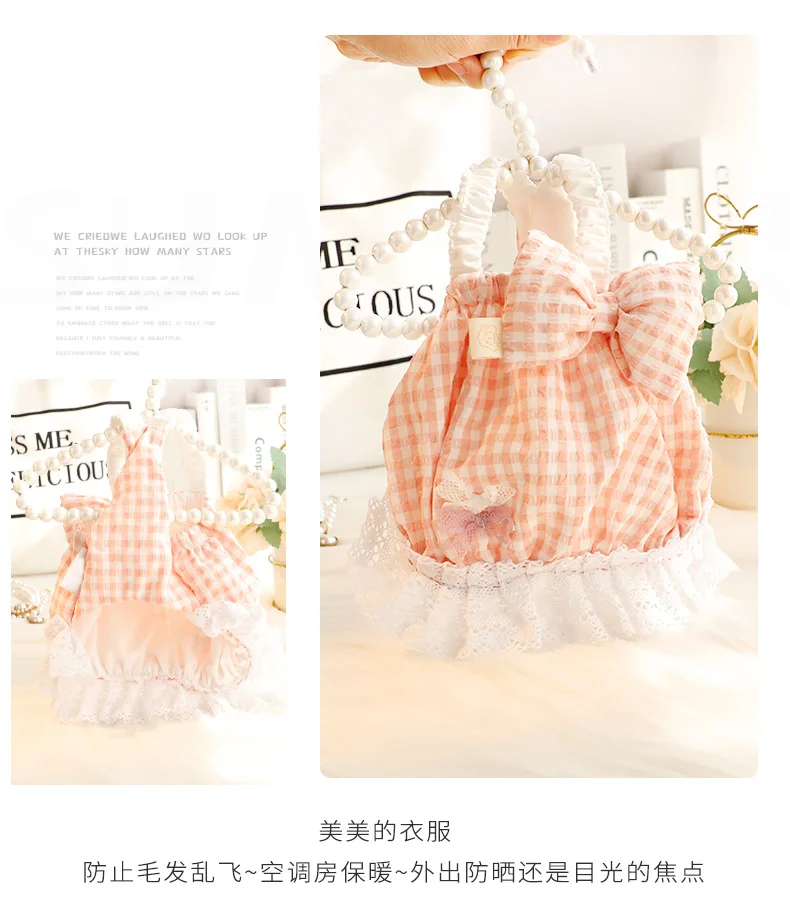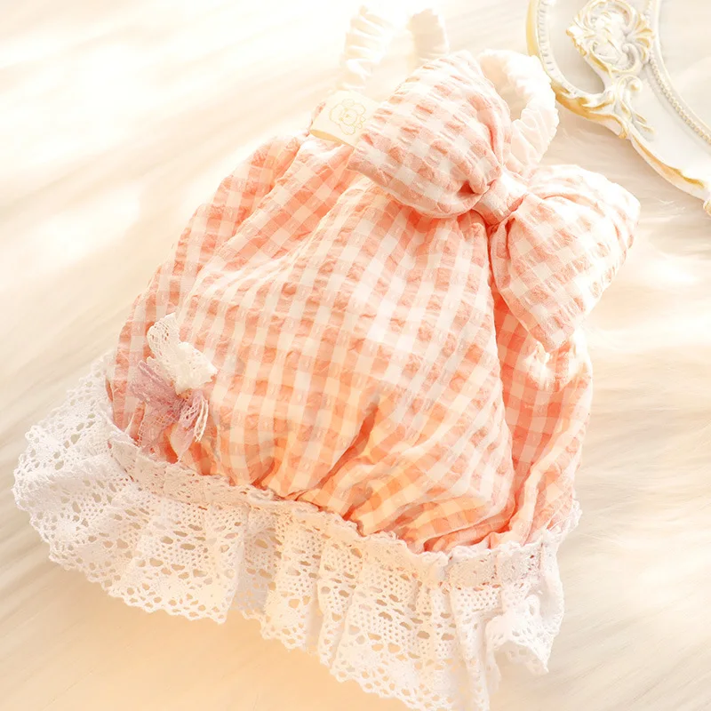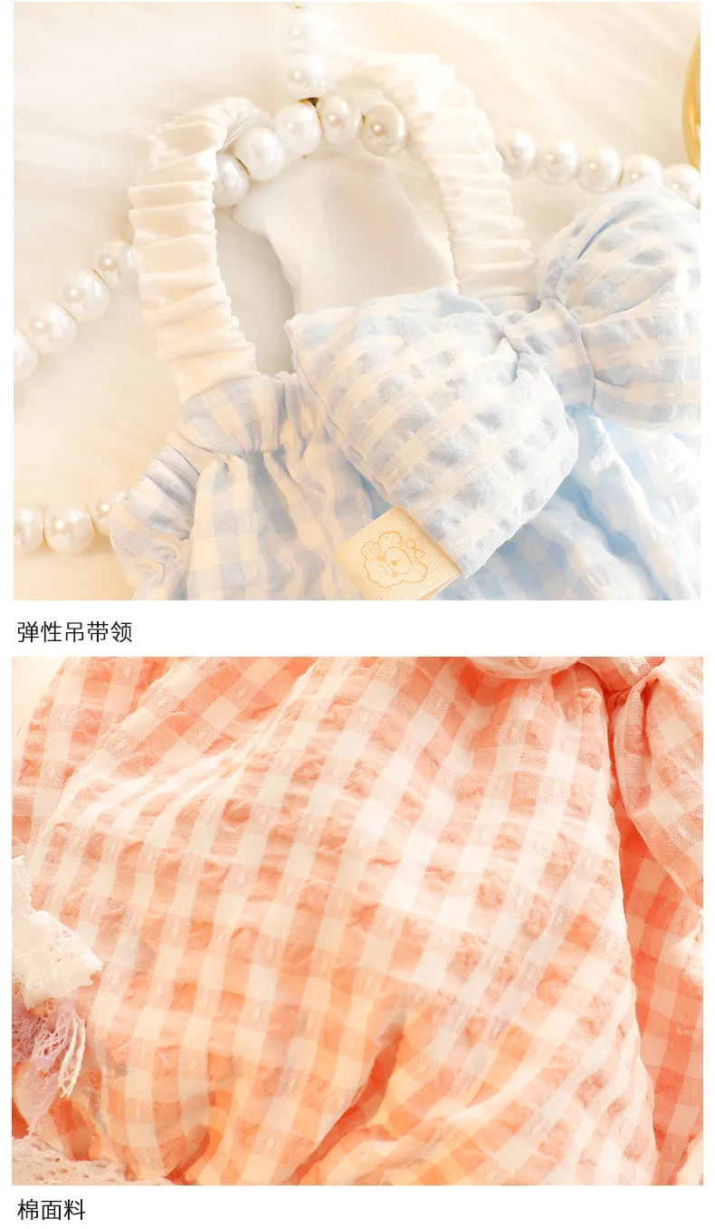 Vestido fino a cuadros con lazo para mascotas, falda con tirantes de princesa para gatos, camiseta sin mangas de peluche para perros pequeños y mariposas grandes