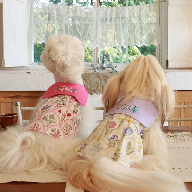 Vestido Floral bordado de primavera para mascotas, chaleco para perros pequeños Schnauzer, ropa para perros al aire libre para perros pequeños, ropa para cachorros