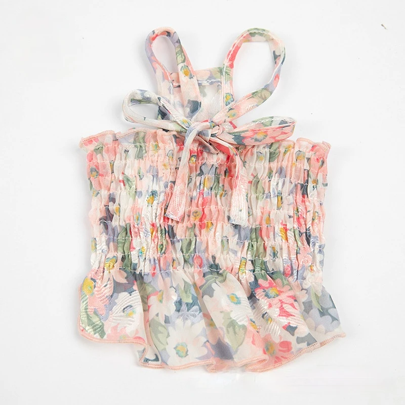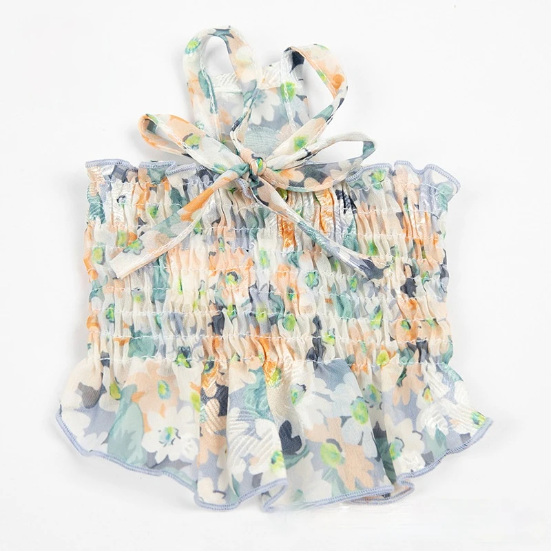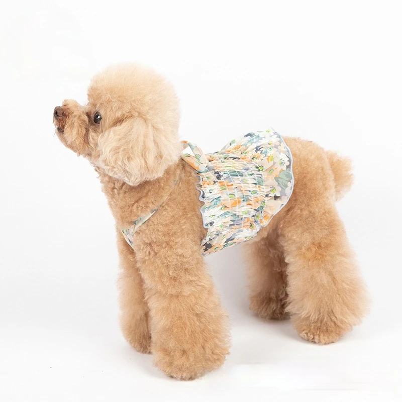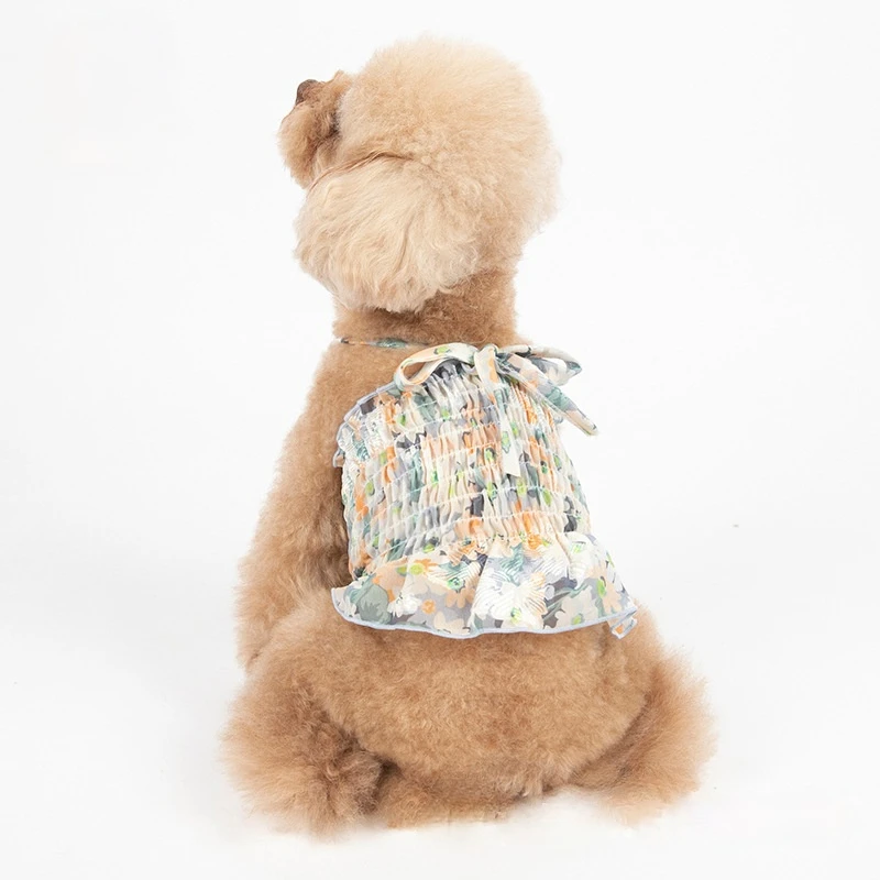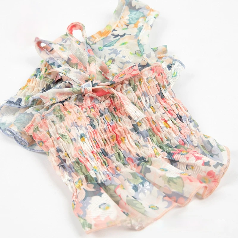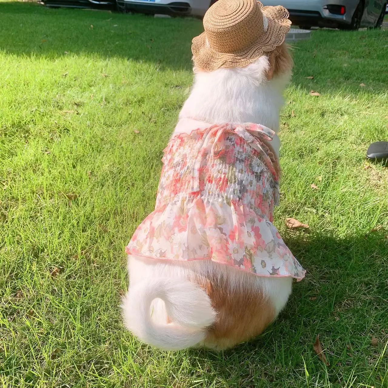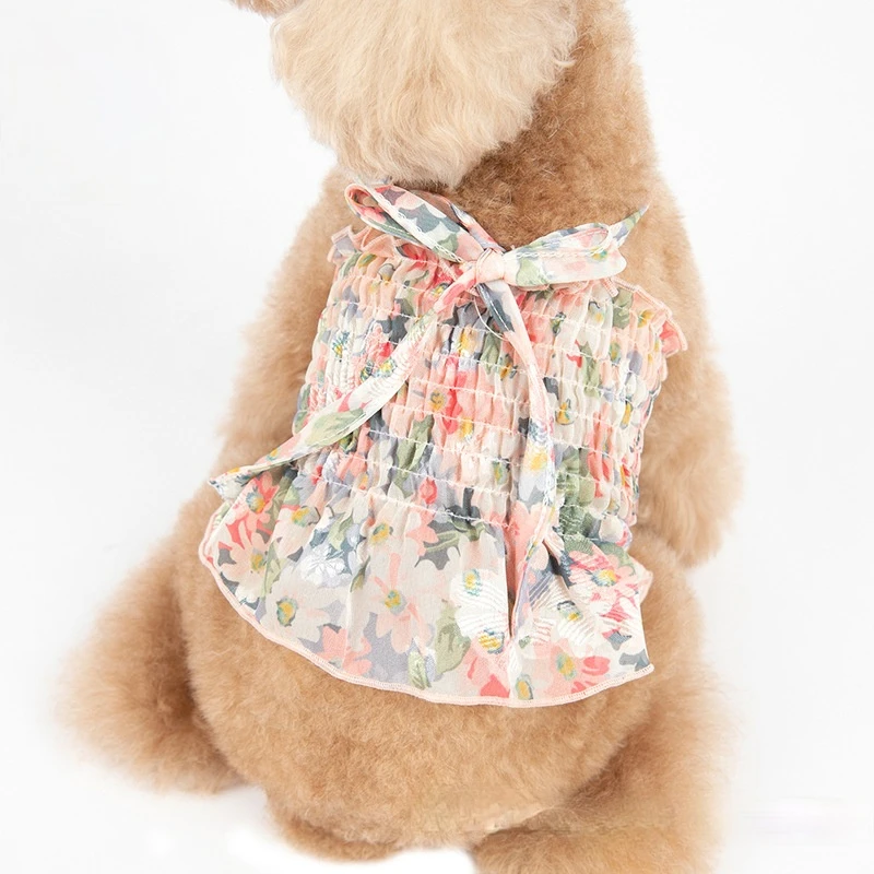 Vestido floral de gasa con tirantes desnudos, vestido superior de peluche Bichon, ropa para perros y gatos para perros pequeños y niñas