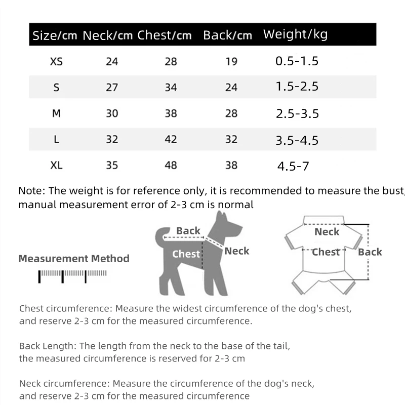 XS (cuello 24CM, pecho 28CM, espalda 19CM),