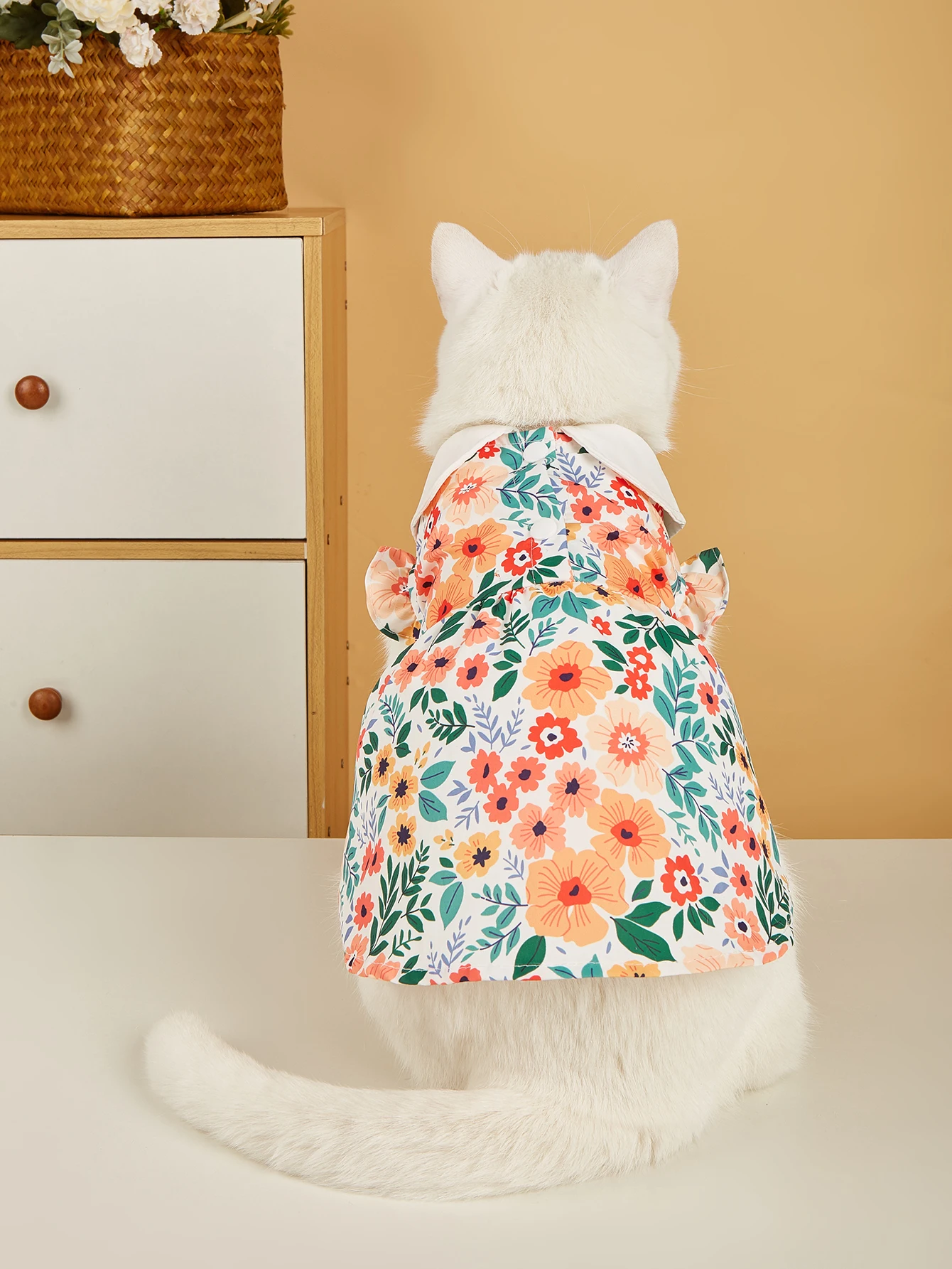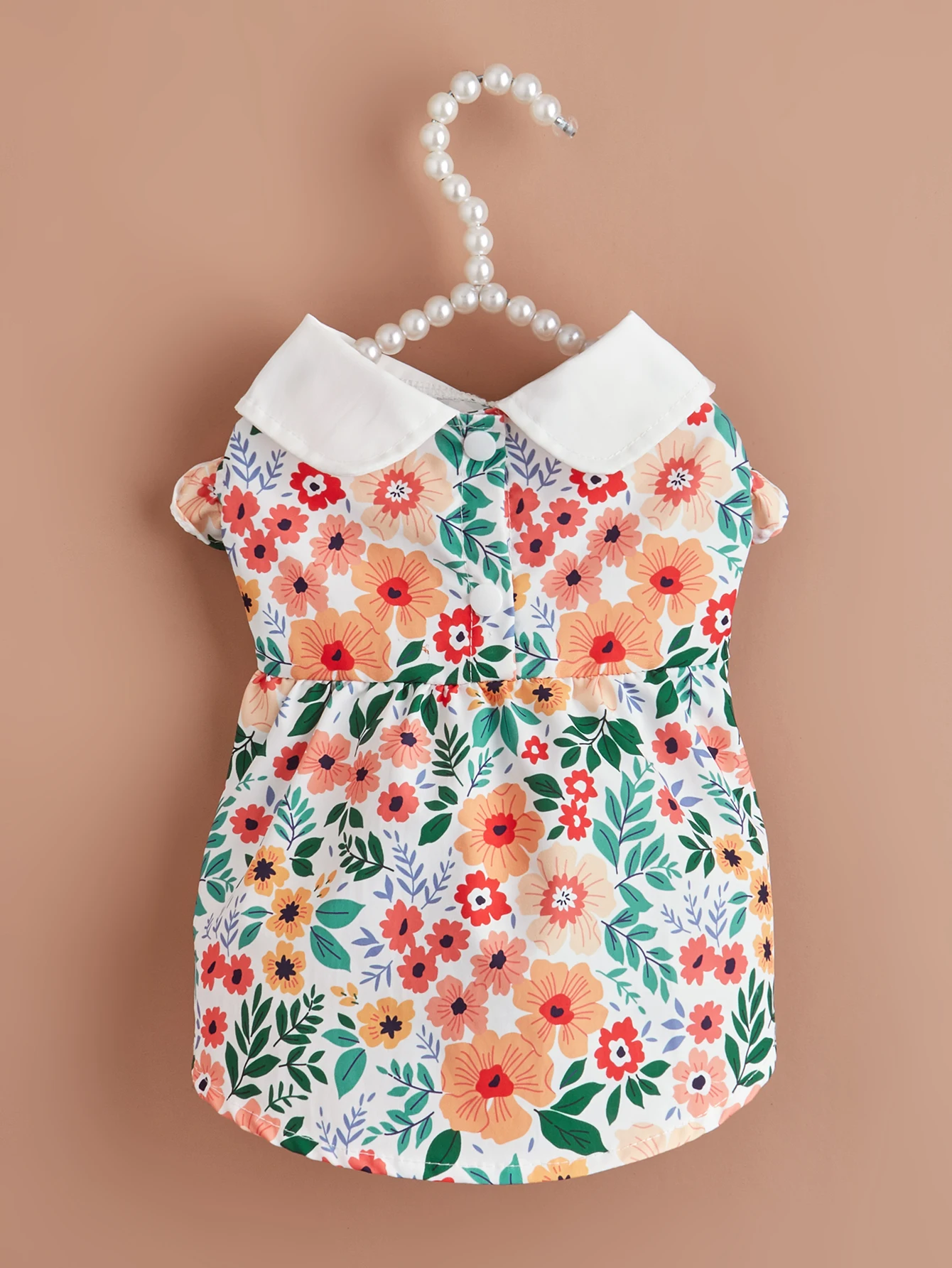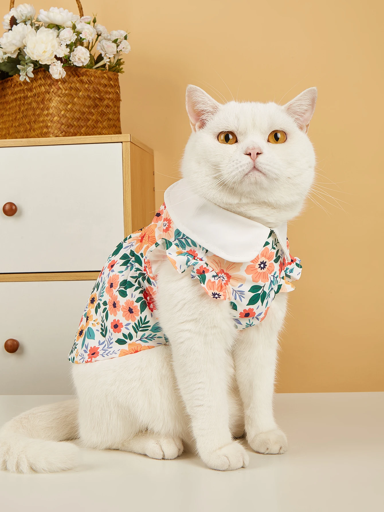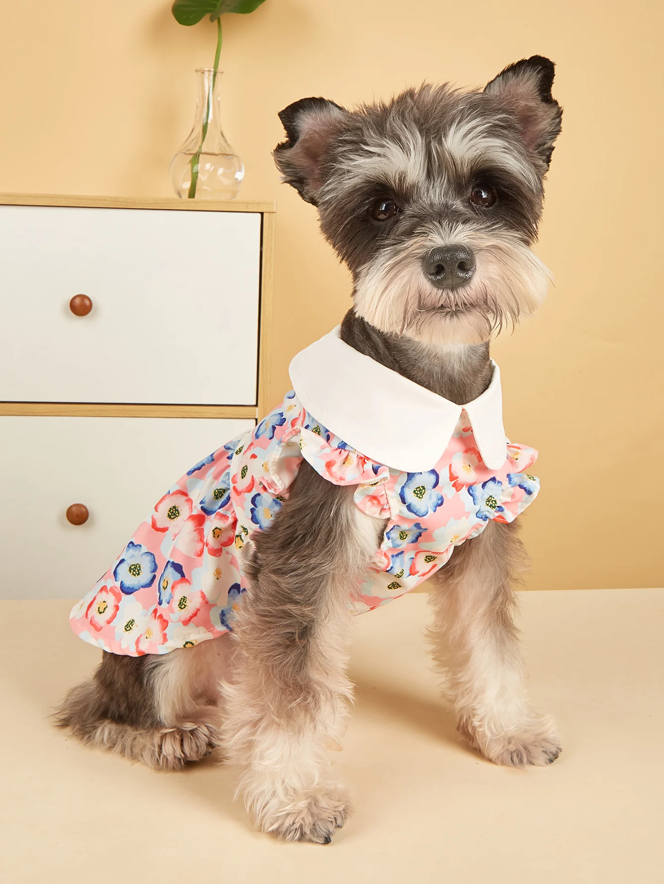 Vestido floral para mascotas con cuello blanco, lindo traje para cachorros, ropa para perros con volantes, ropa de moda para perros pequeños, ropa dulce para mascotas