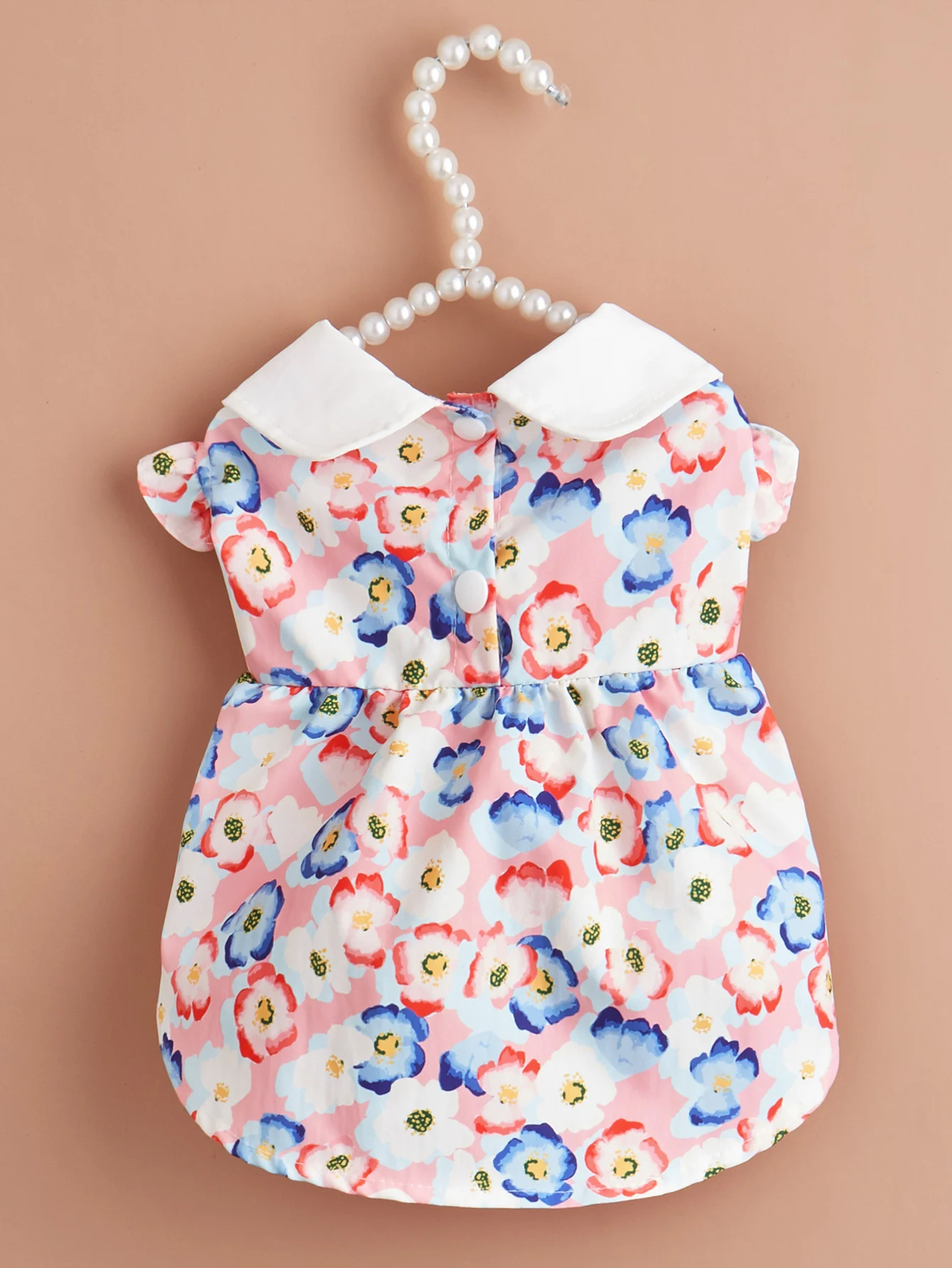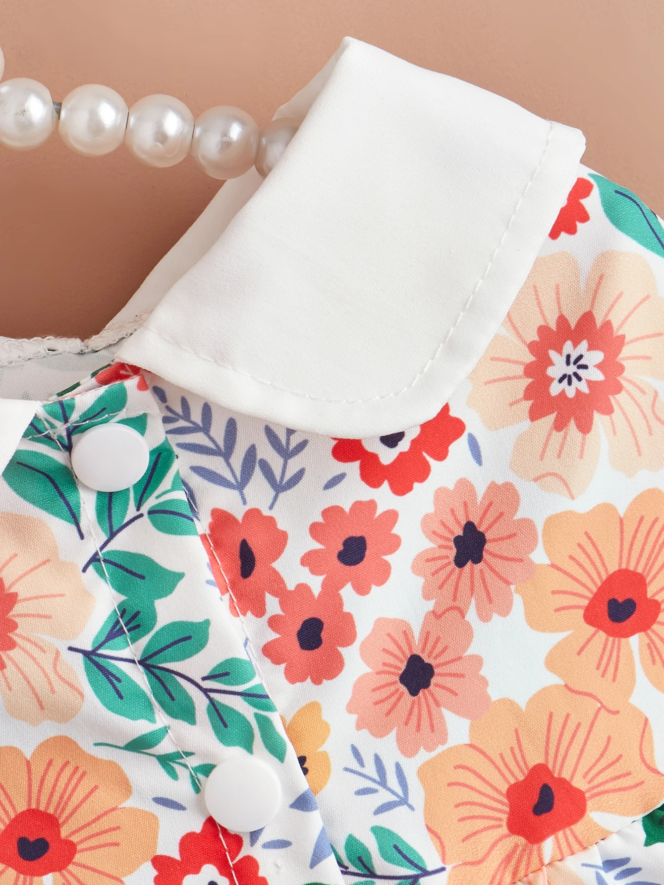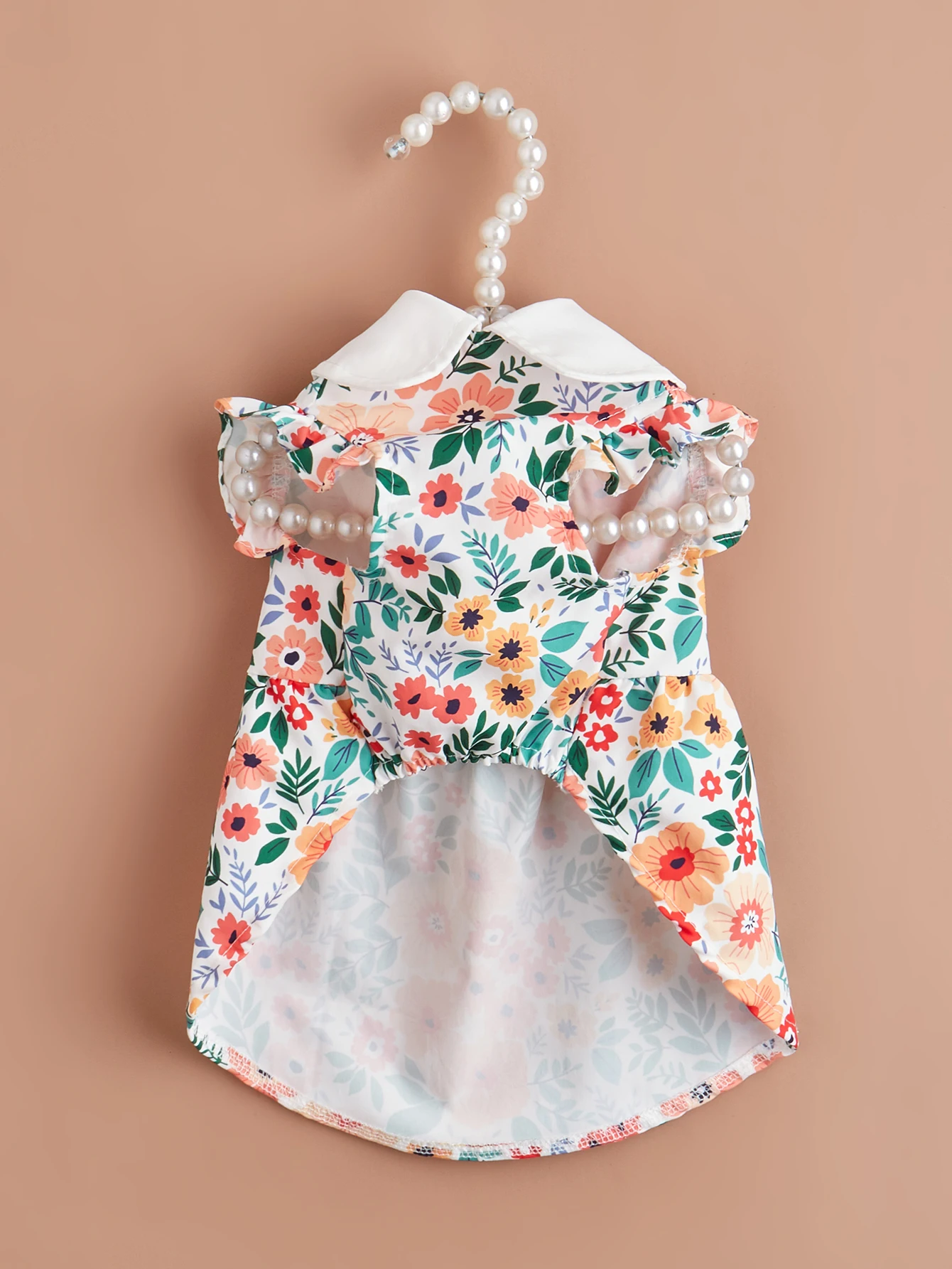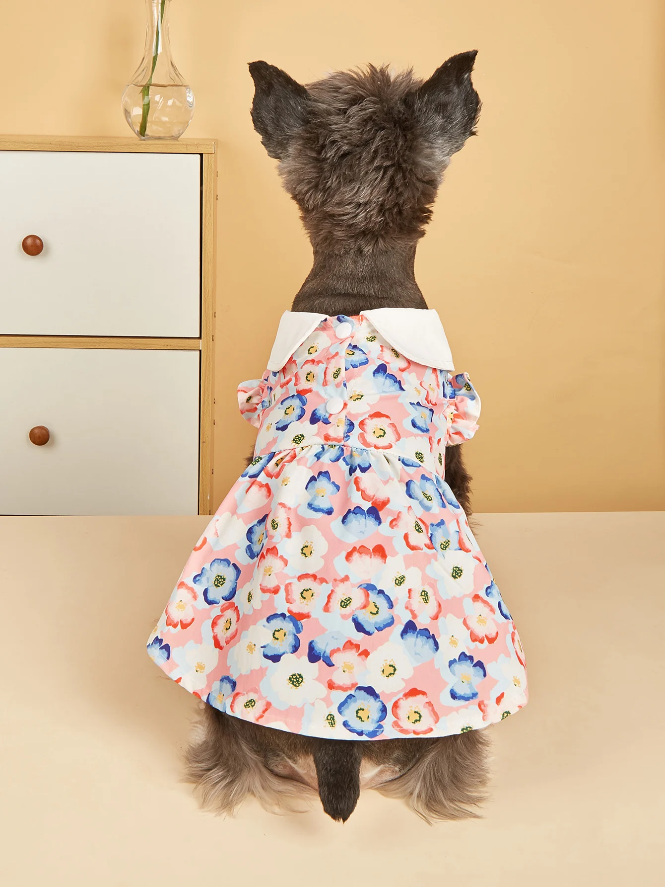 Vestido floral para mascotas con cuello blanco, lindo traje para cachorros, ropa para perros con volantes, ropa de moda para perros pequeños, ropa dulce para mascotas