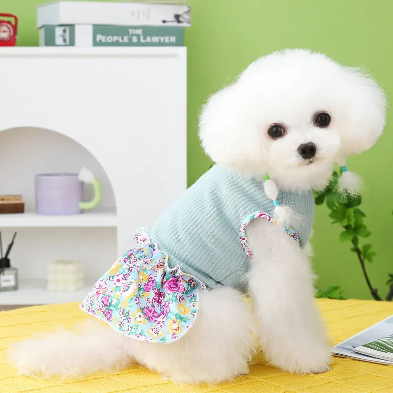 Vestido Floral para perros pequeños, falda de diseño para Yorkshire, ropa de moda para perros, moda de Corea del Sur, primavera 2023