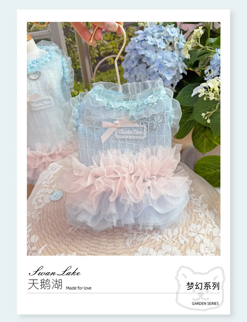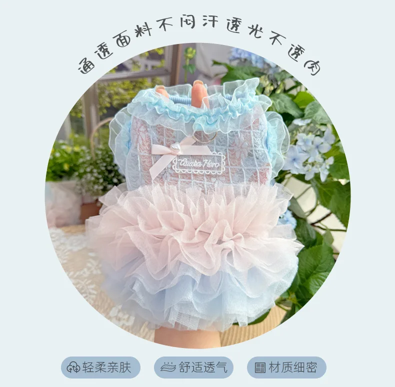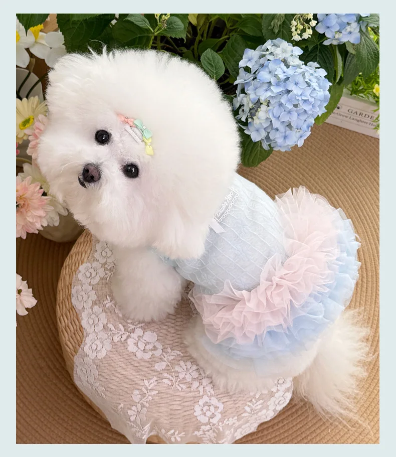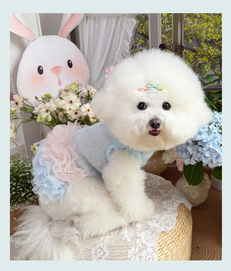 Vestido Floral de primavera para mascotas, falda de hilo brillante multicapa, ropa transpirable para perros y gatos, vestidos para perros pequeños - imagen 5