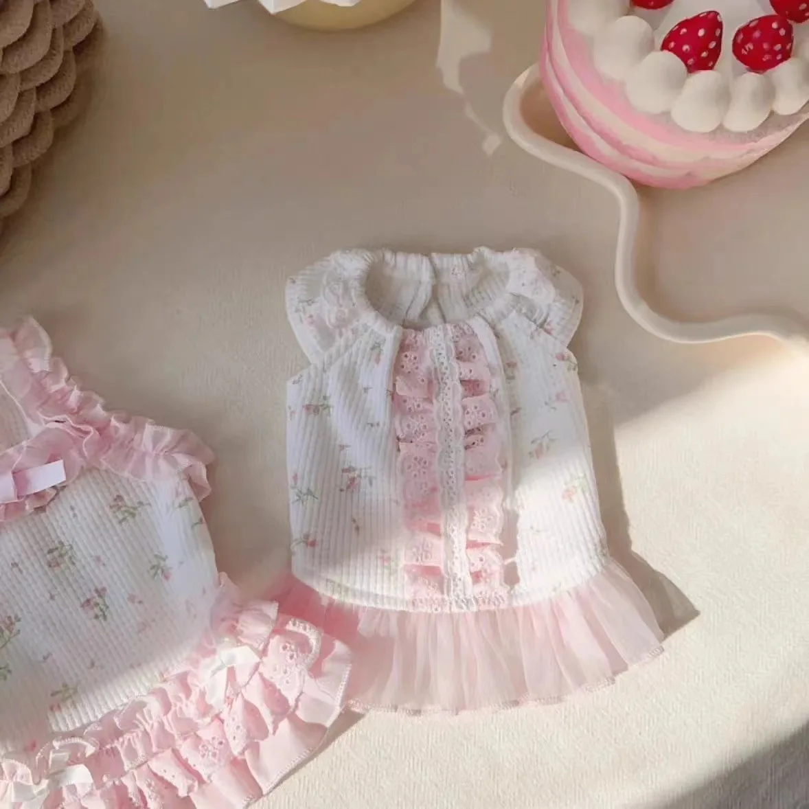 Vestido Floral de primavera para mascotas, oso de peluche, bonito chaleco de encaje, ropa para perros Yorkshire y gatos, ropa para cachorros, chaleco refrescante para perros