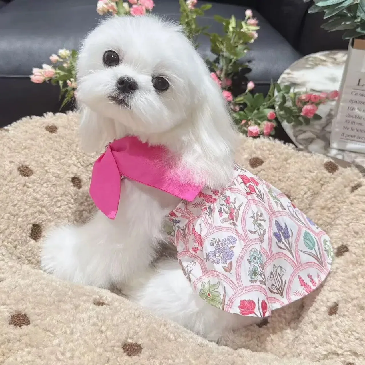 Vestido de flores de primavera para mascotas, chaleco de peluche para perros pequeños Schnauzer, salida de primavera al aire libre, ropa para perros pequeños, ropa para cachorros