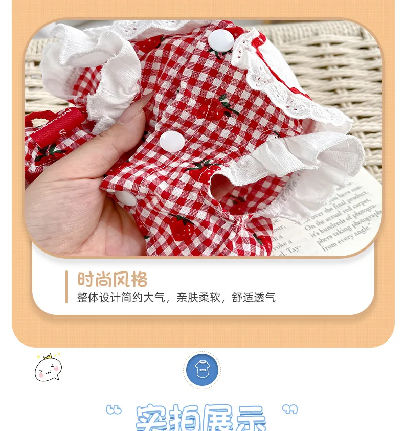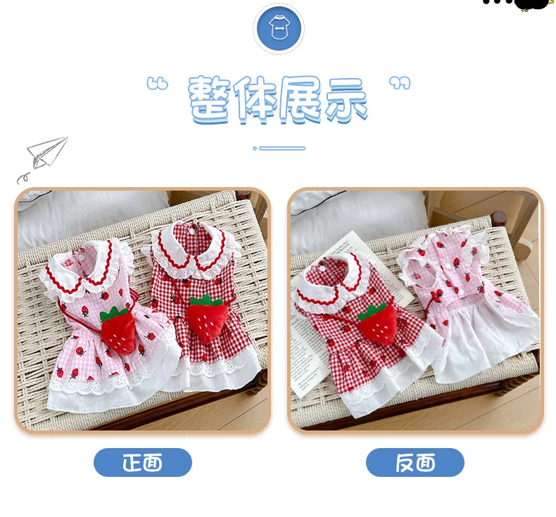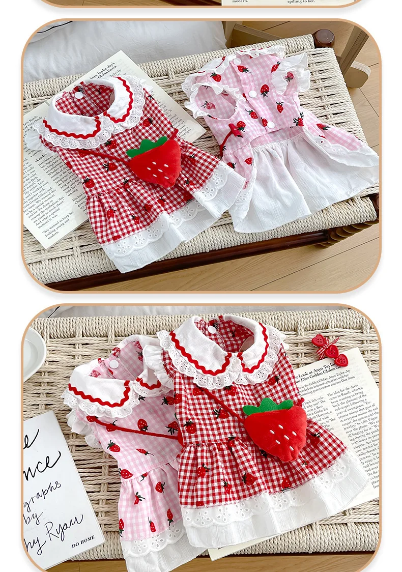 Vestido de fresa de primavera para mascotas, mochila con fresas, bonito perro de dibujos animados, ropa para perros pequeños y medianos, ropa para cachorros
