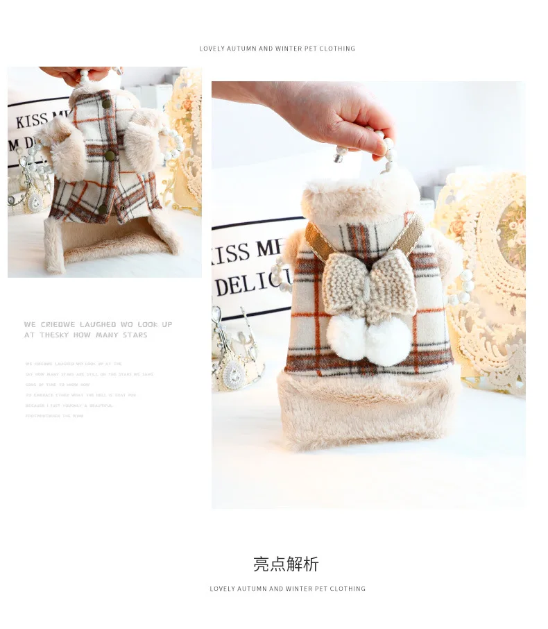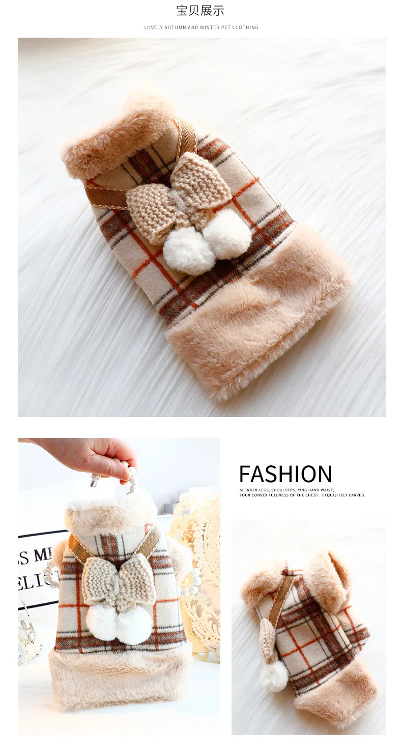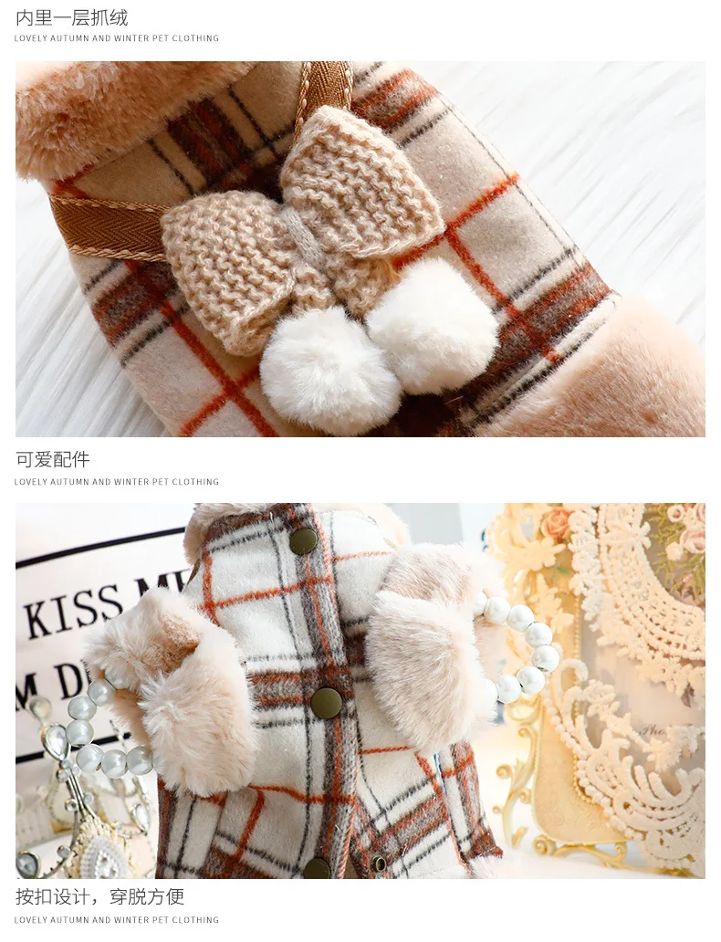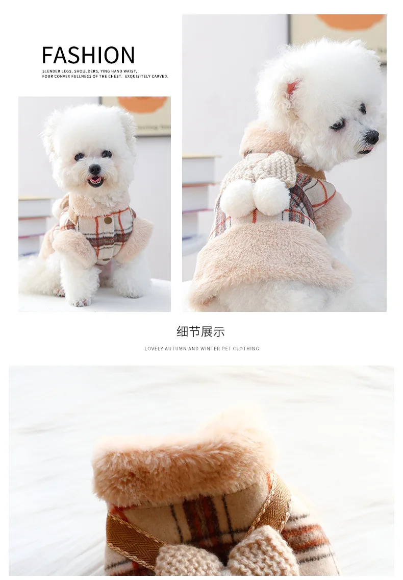 Vestido grueso de princesa para cachorros, ropa cálida de invierno para perros con lazos de pompón para perros pequeños, Chihuahua, Bichon Schnauzer, ropa para perros