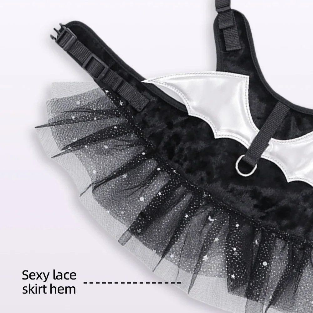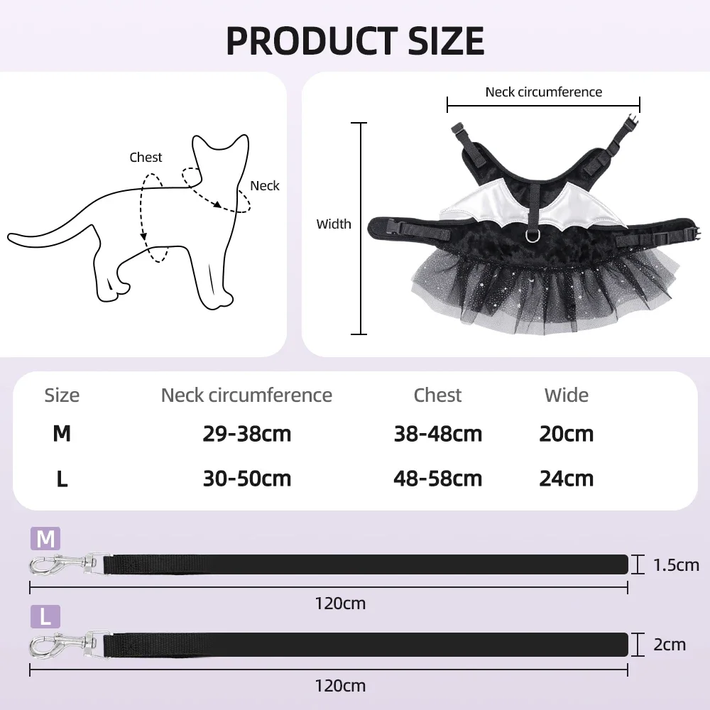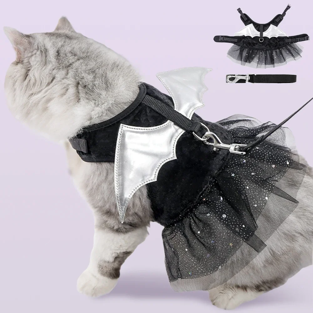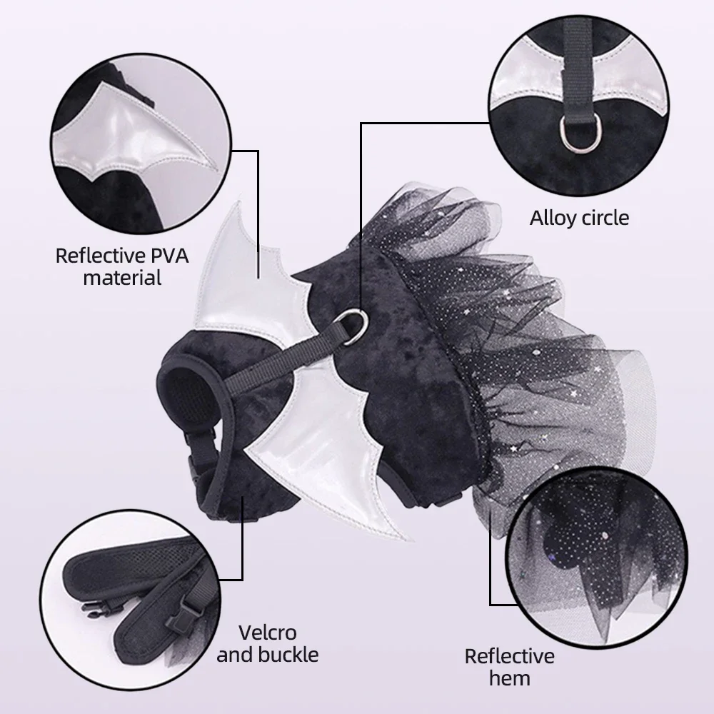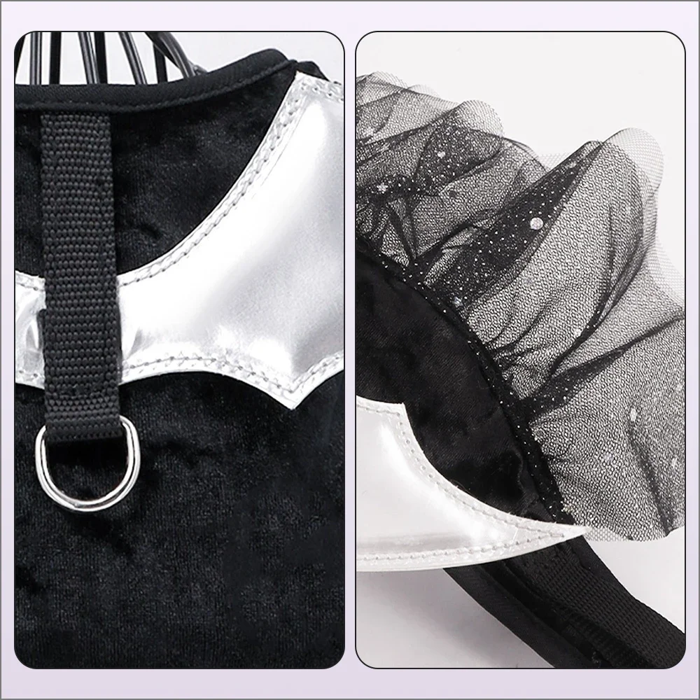 Vestido de Halloween con alas plateadas para perro y gato, arnés para cachorro, traje de Cosplay para perro pequeño, estilo gótico
