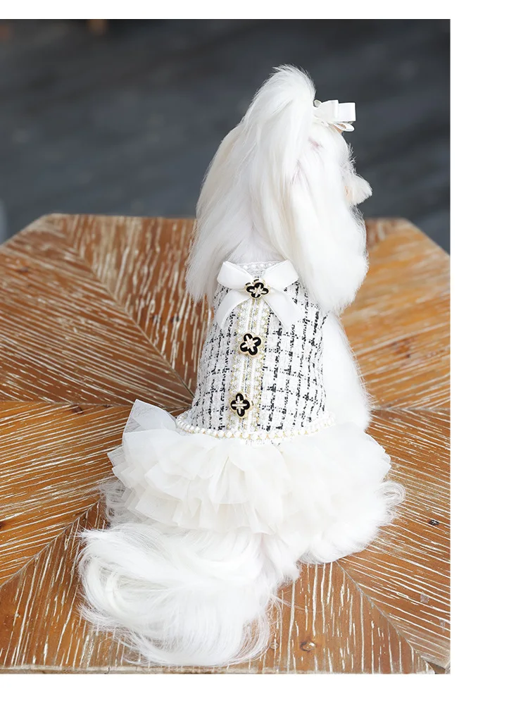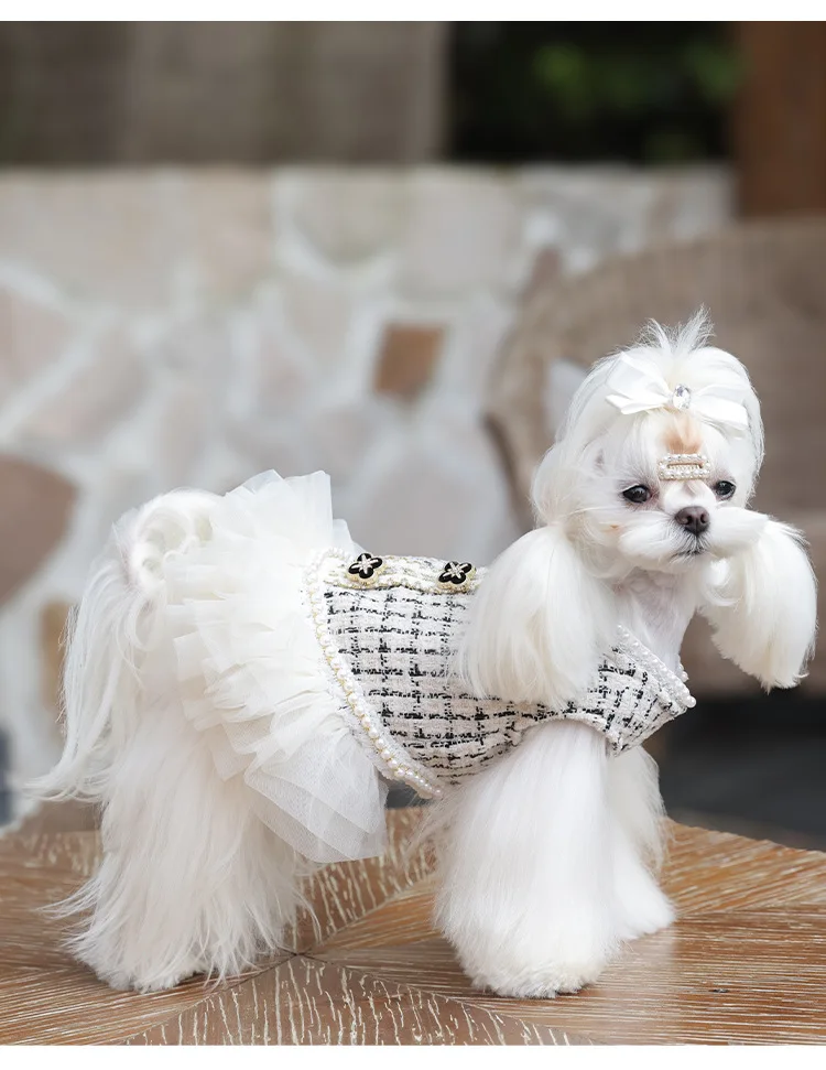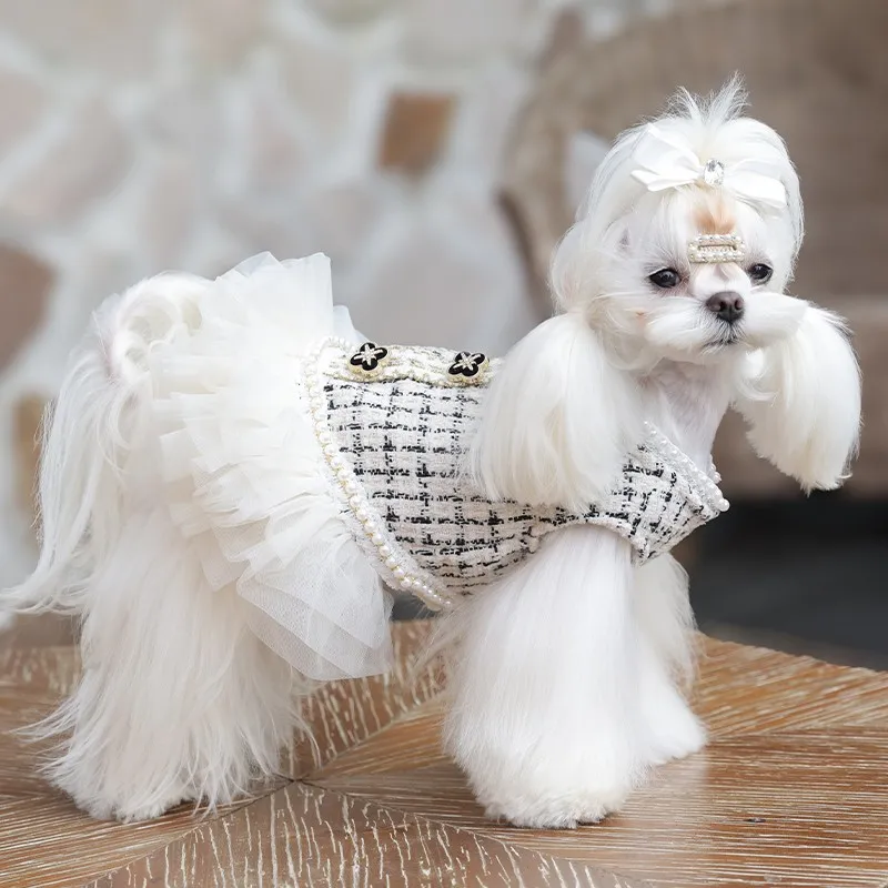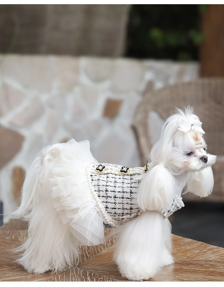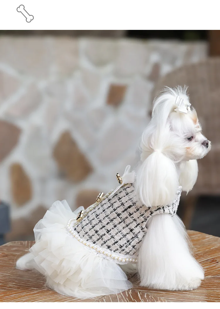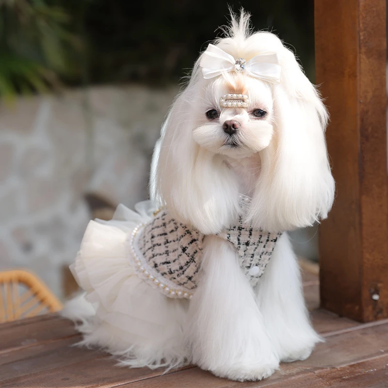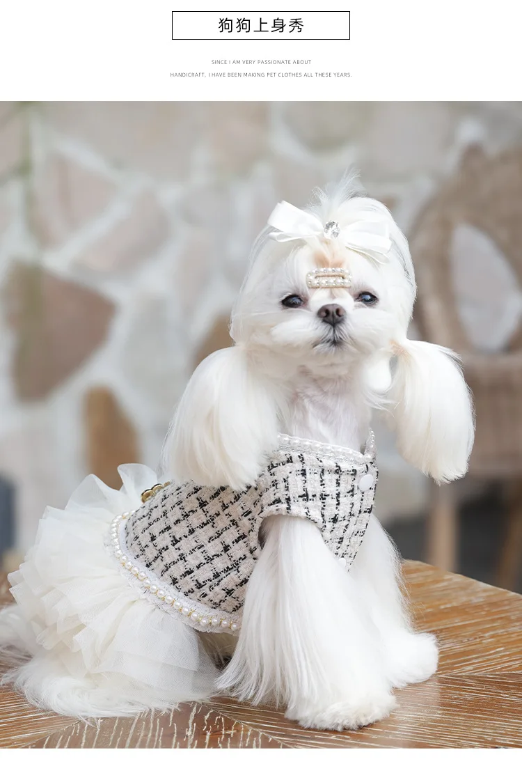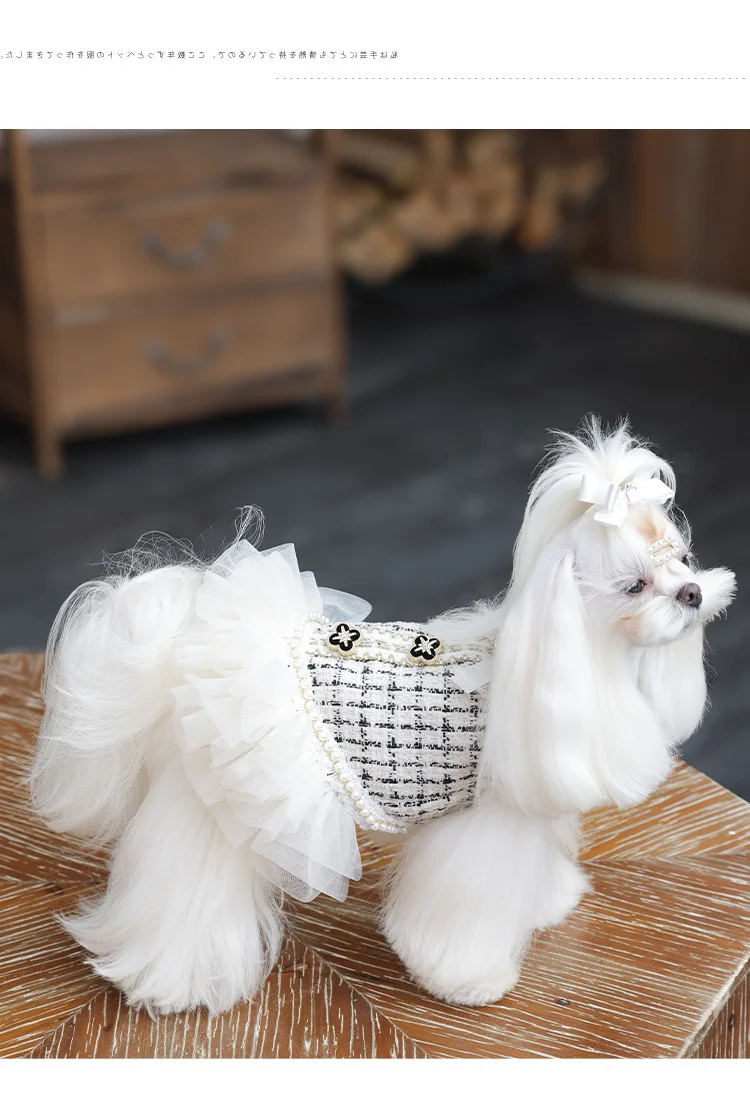 Vestido de lana a cuadros para mascotas, vestido de malla de princesa para otoño e invierno, ropa para perros, vestidos para perros pequeños de peluche de Pomerania